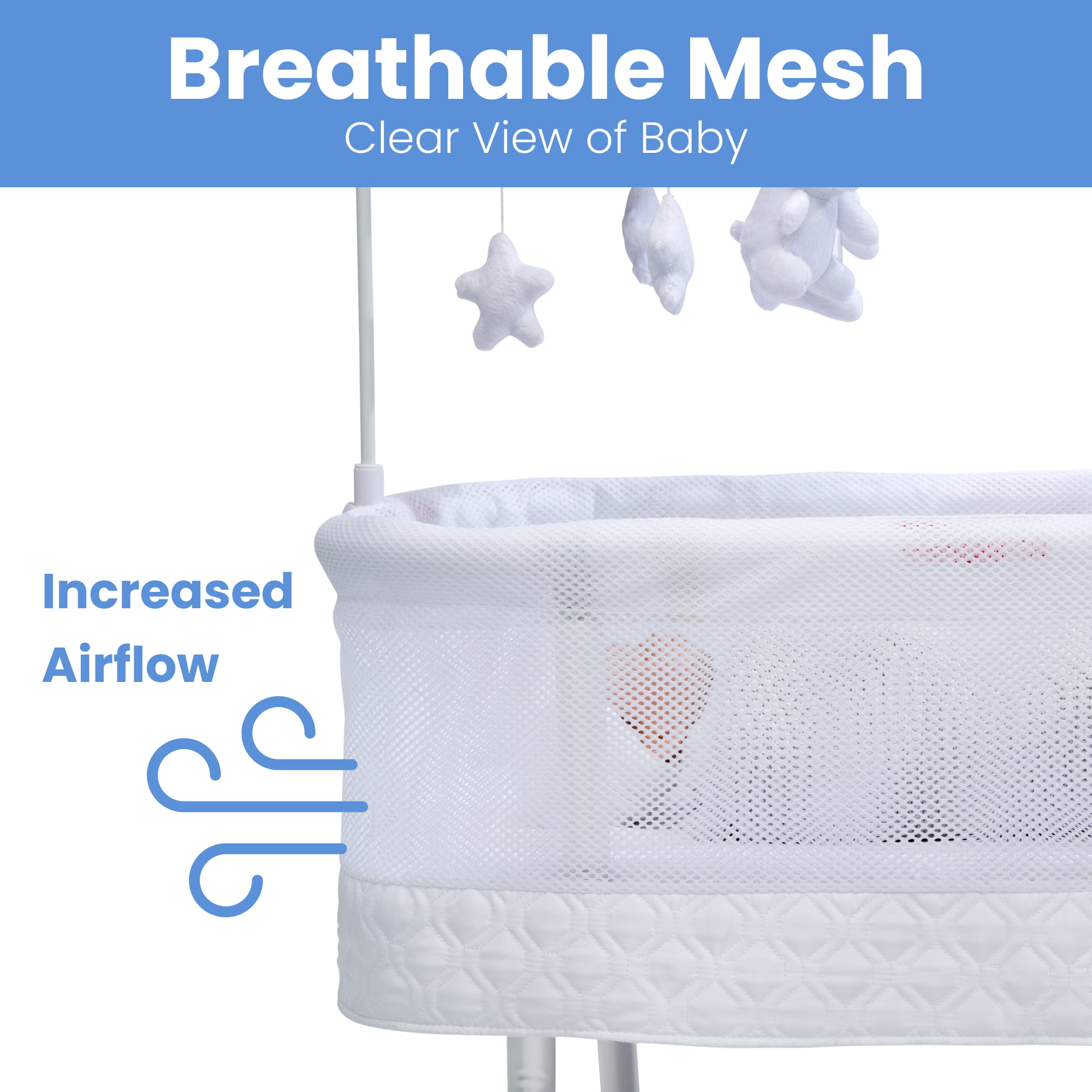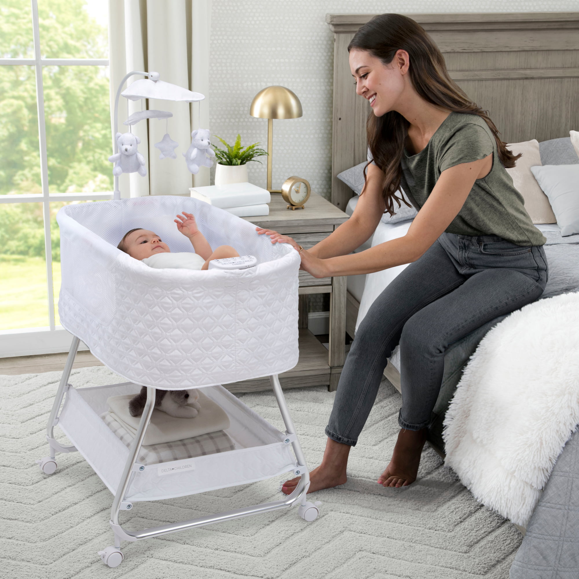 Delta Children Nod Bassinet - Smart Sleeper with Auto Glide Motion. Wi-Fi and Airflow Mesh - Compatible with Amazon Alexa. Goggle Assistant and Delta Children Connect App. White