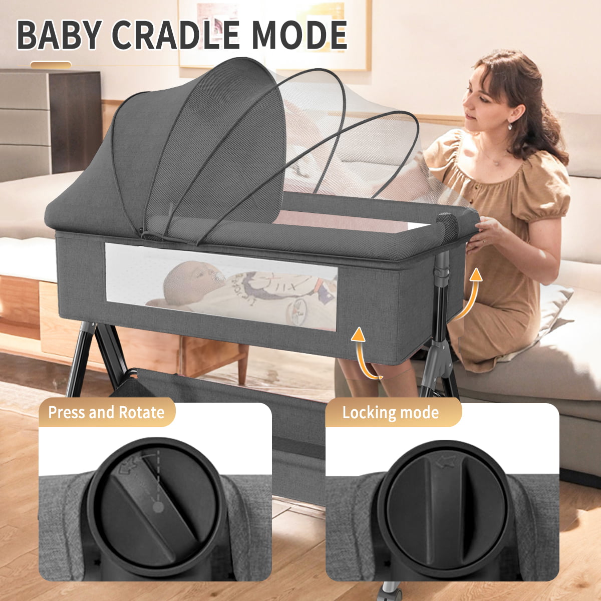 Ingenuity Lullanight Soothing Bassinet for Baby with Locking Wheels & Night Light. Newborn to 5 Months - Gem