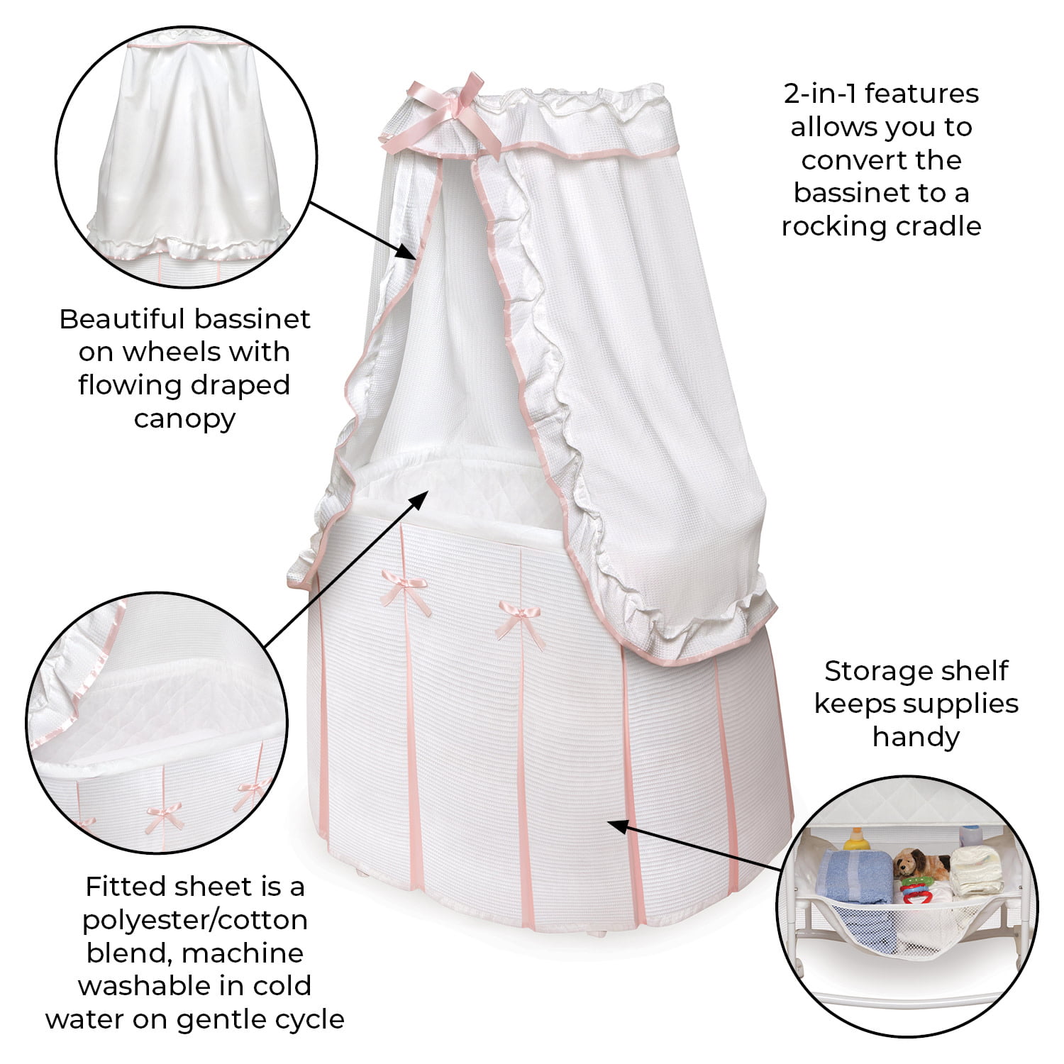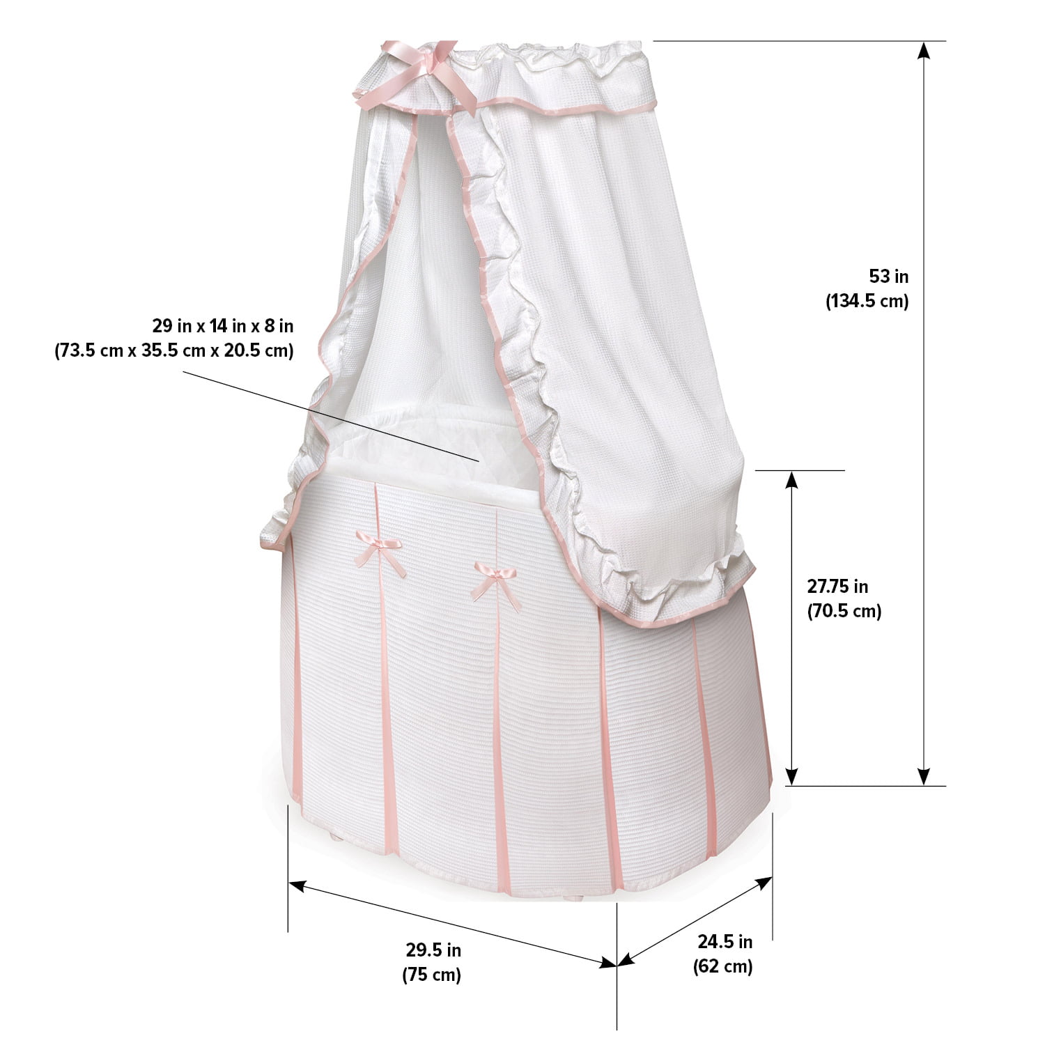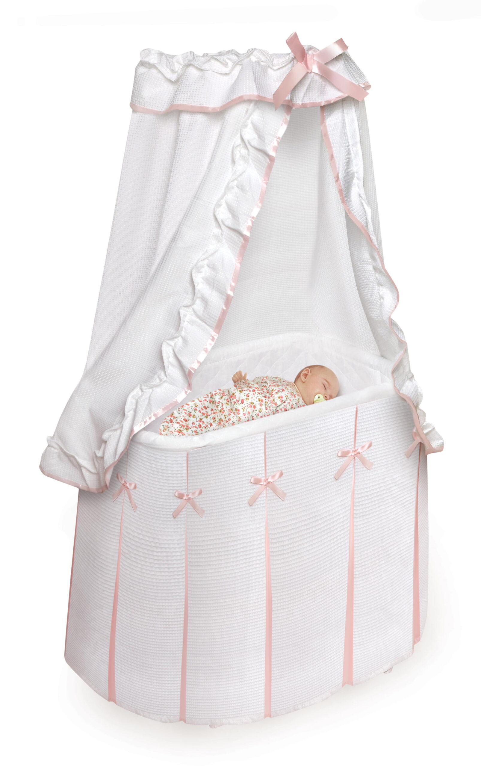 Badger Basket Majesty Baby Bassinet with Canopy - White/Pink Bedding