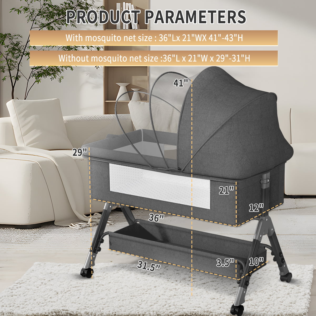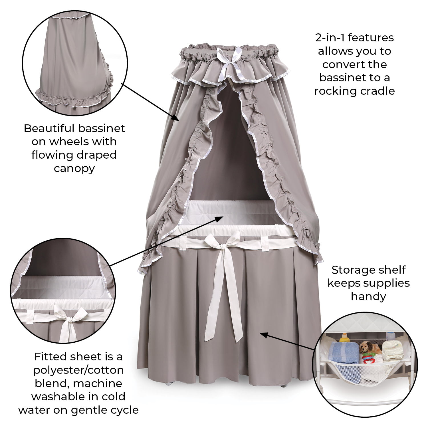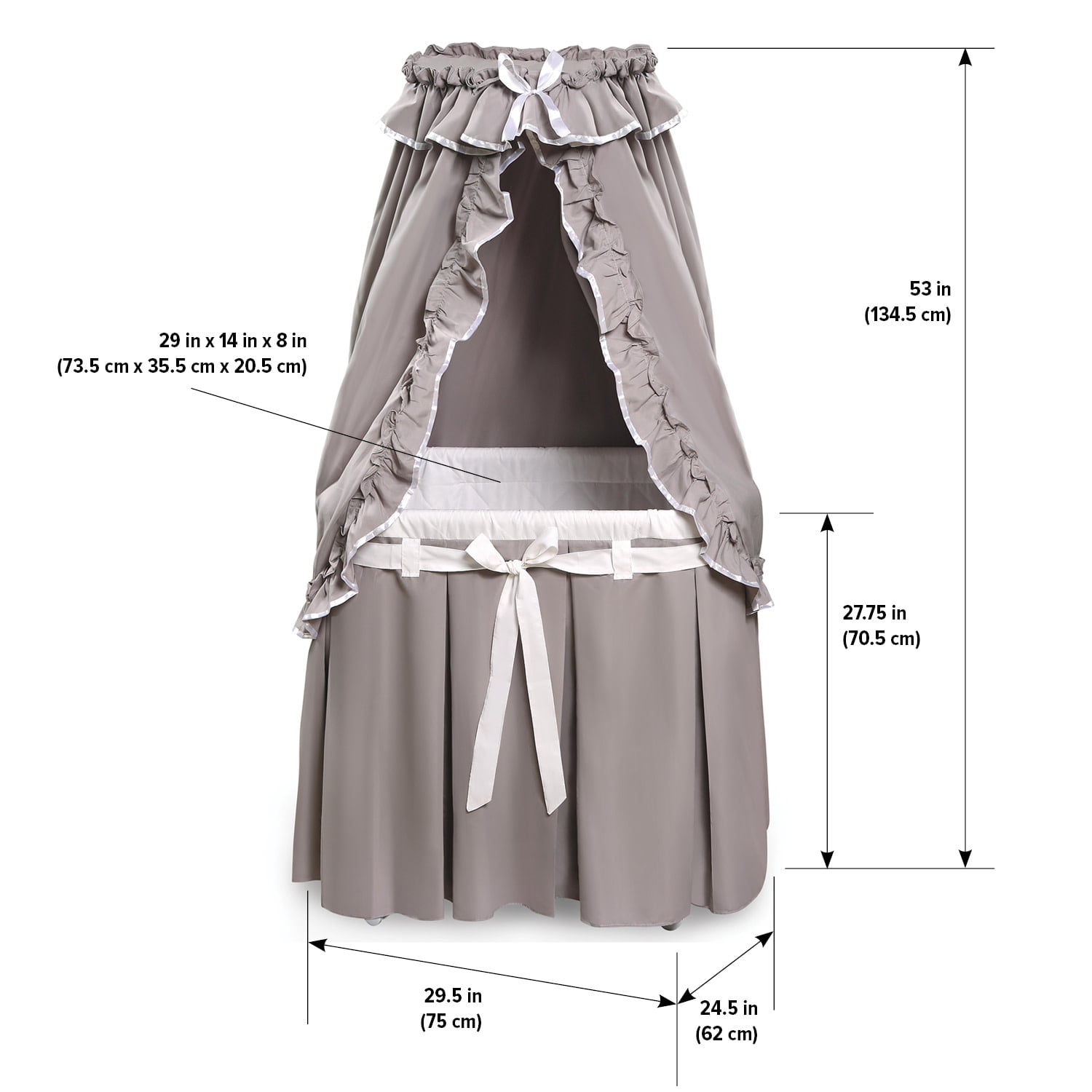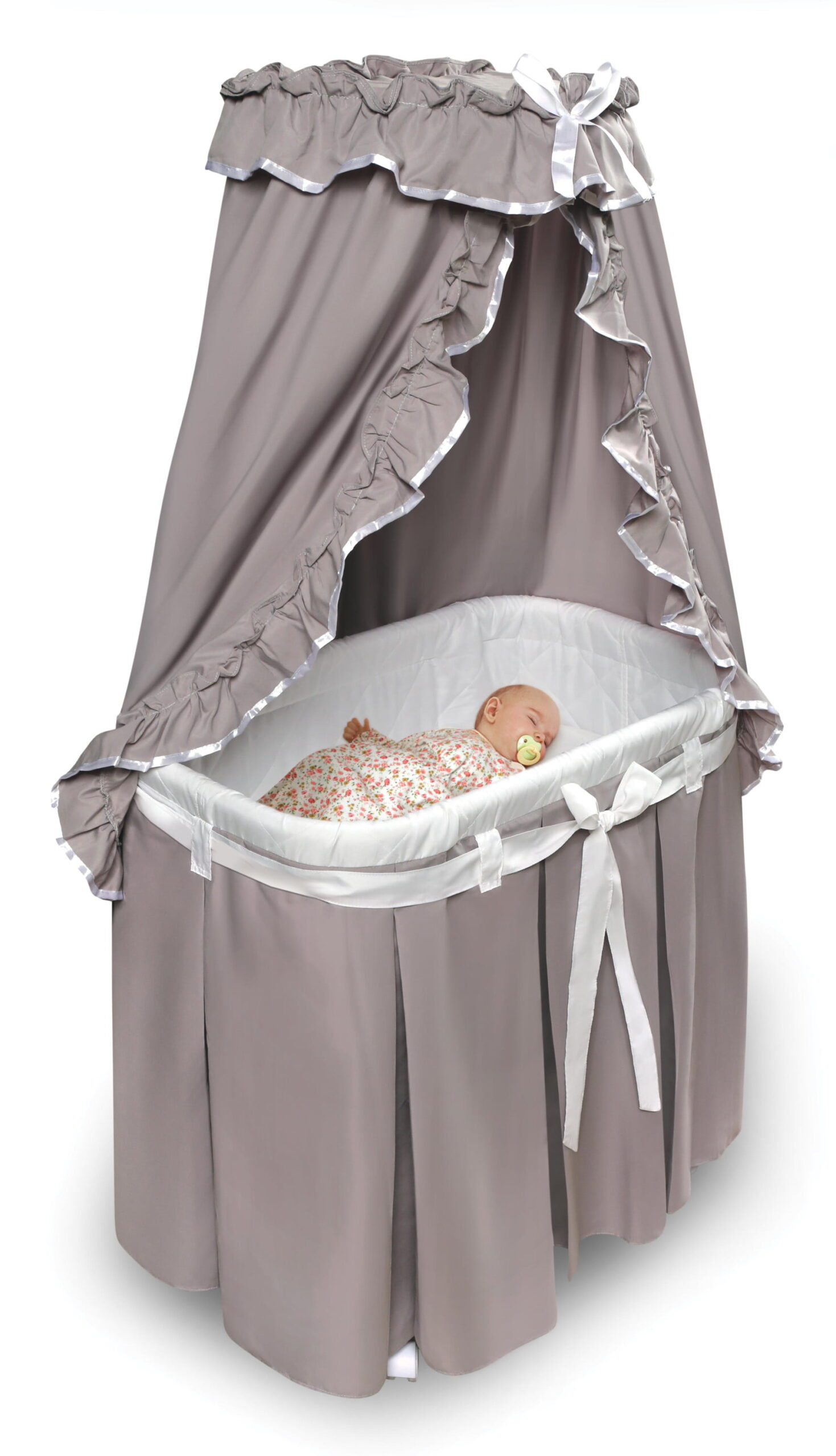 Badger Basket Majesty Baby Bassinet with Canopy - Gray and White Bedding