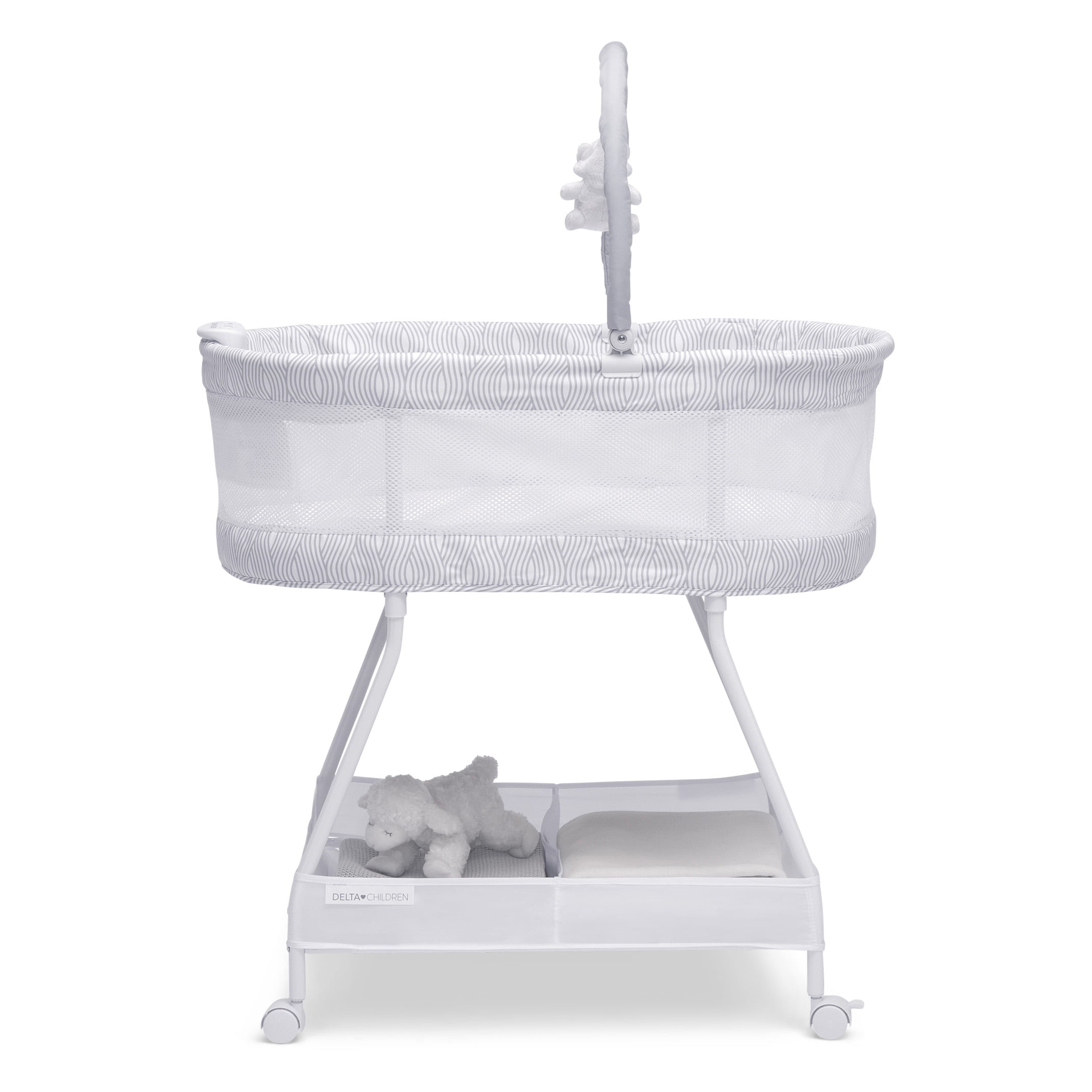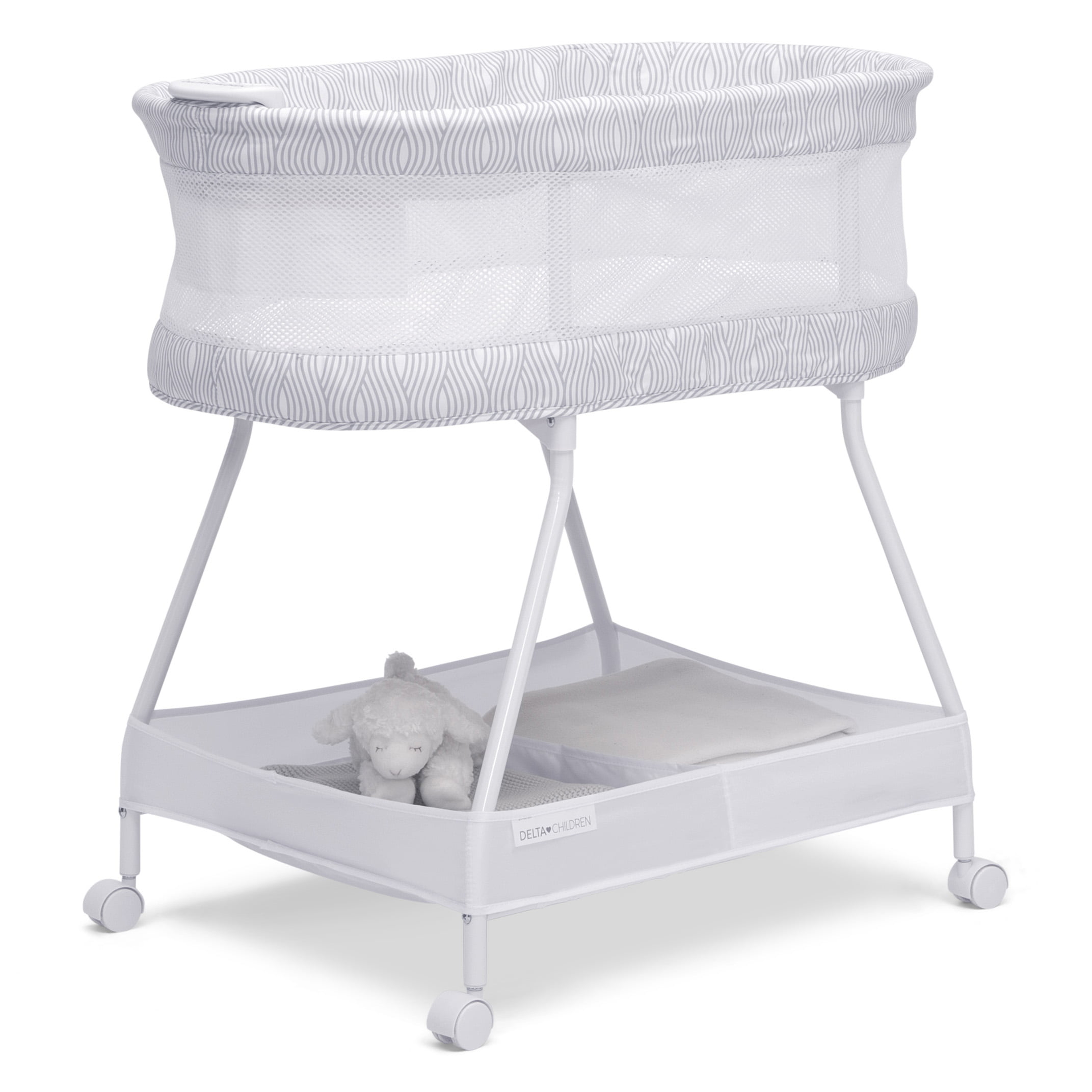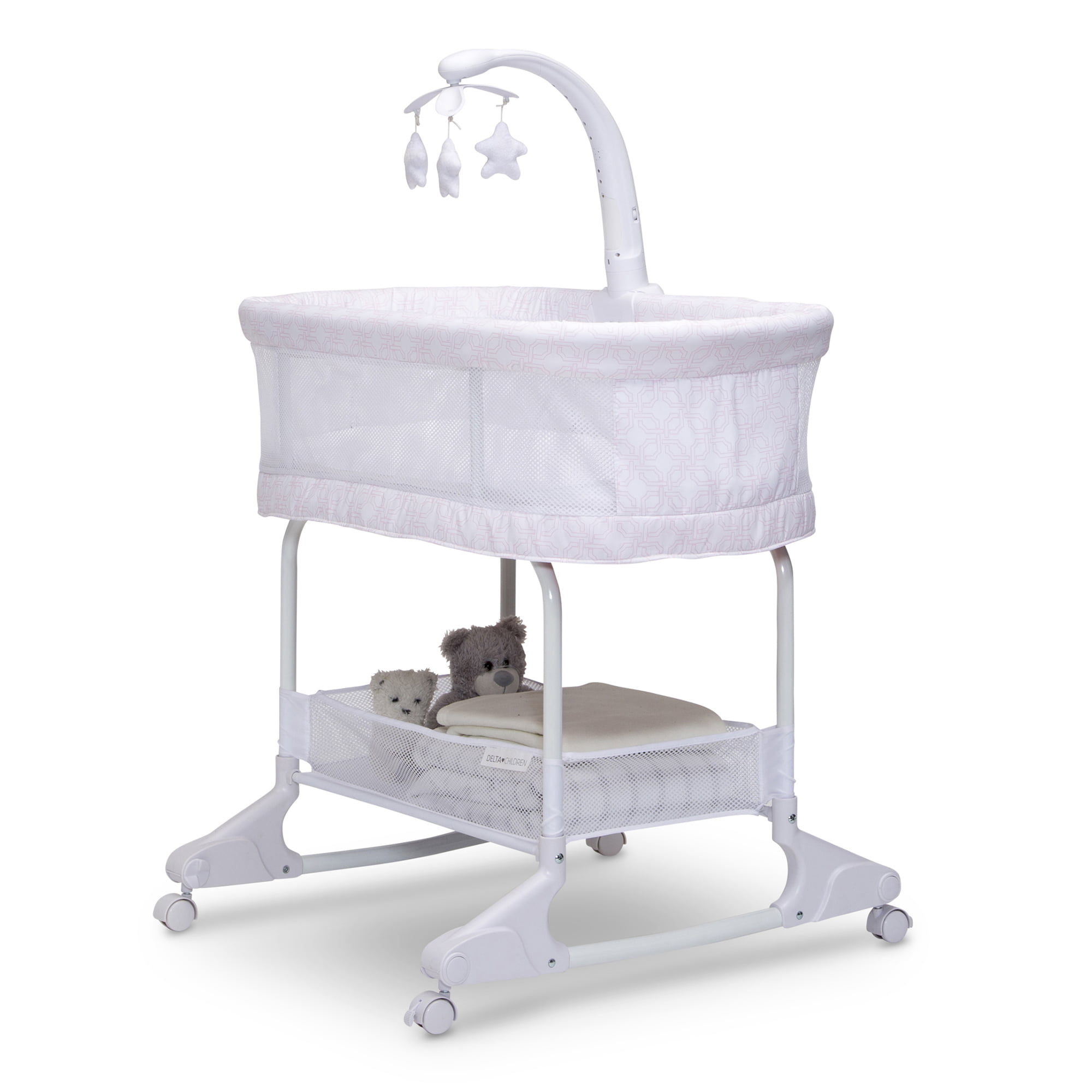 Delta Children SleepCool Rocking Bassinet with Airflow Mesh. Pink Fresco