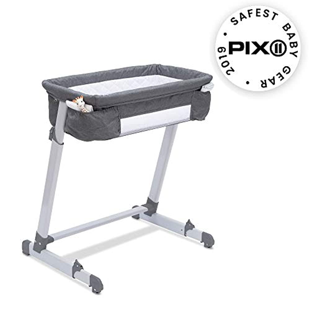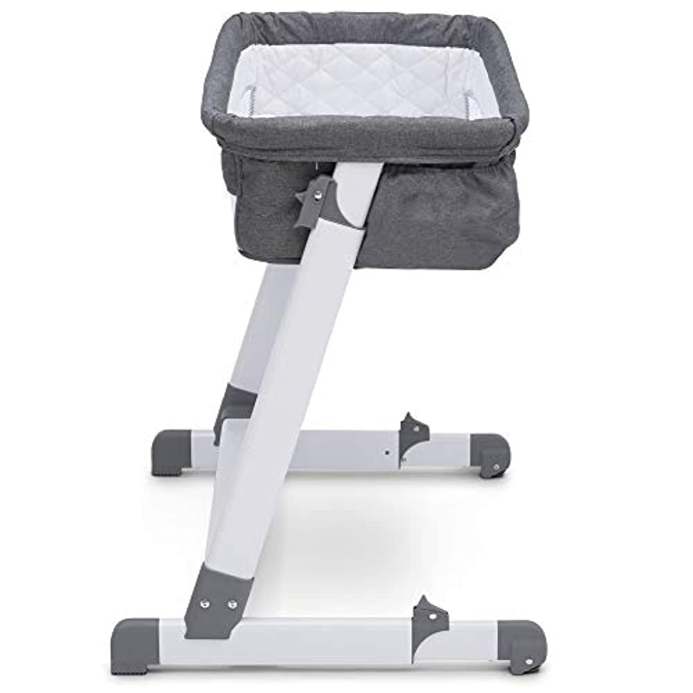 Simmons Kids By The Bed City Sleeper Bassinet. Adjustable Height Portable Crib with Wheels & Airflow Mesh. Grey Tweed