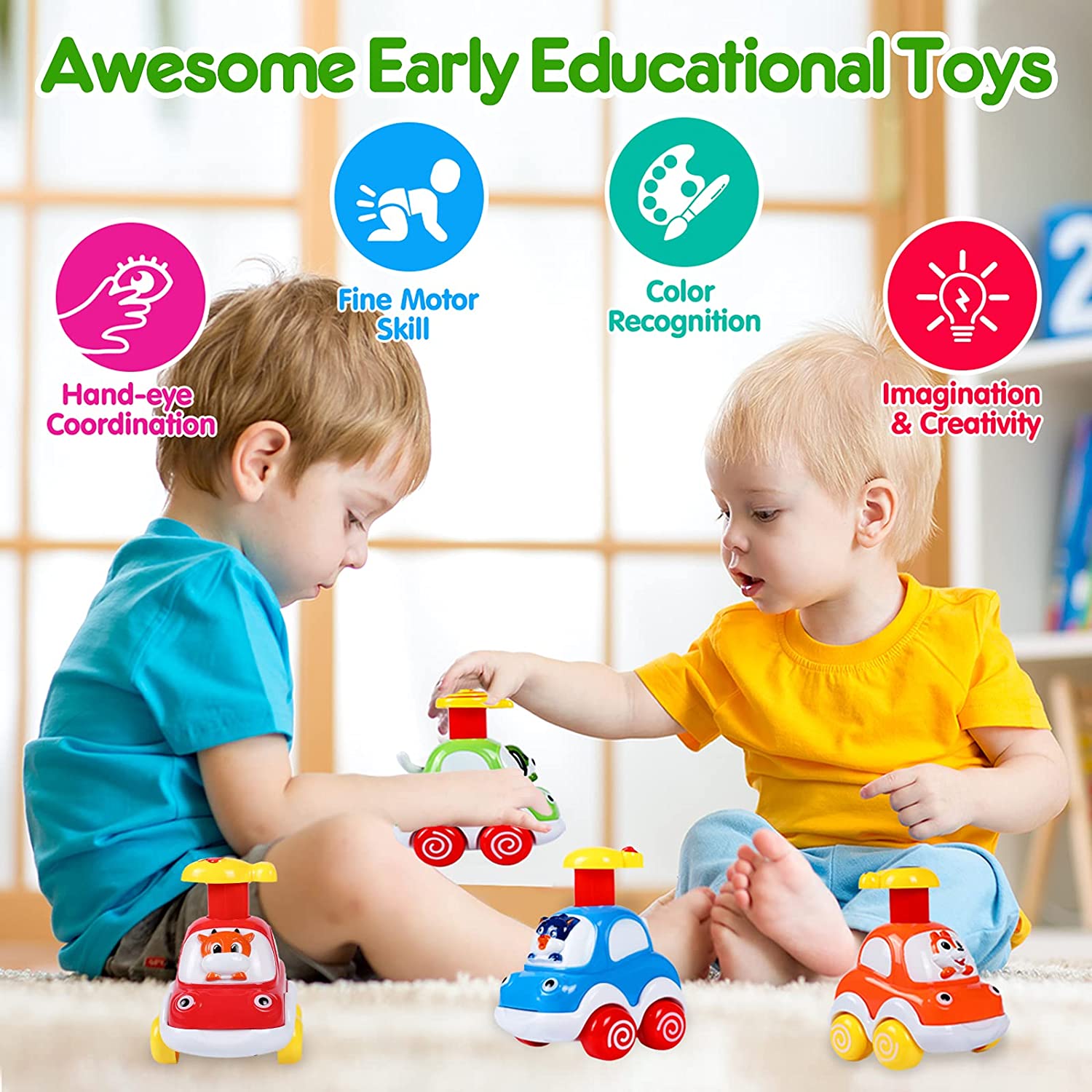 Baby Toy Cars for Educational Toys for 1 Year Old Boy Pull Back.