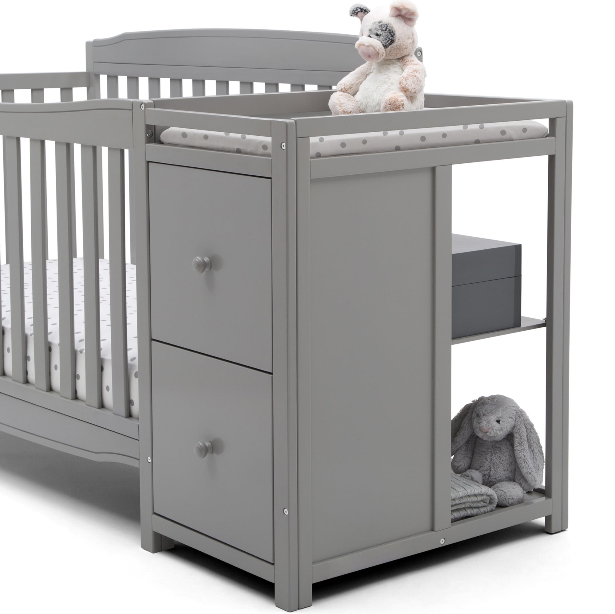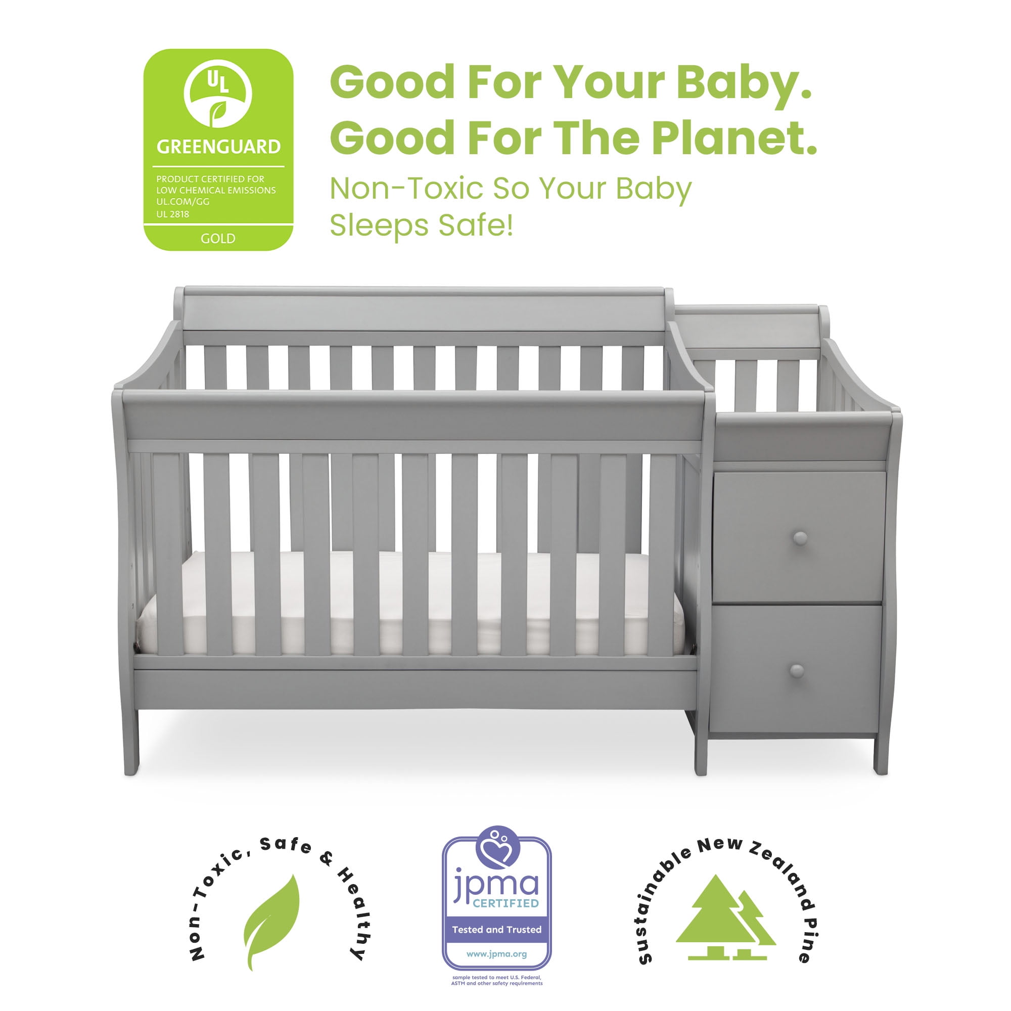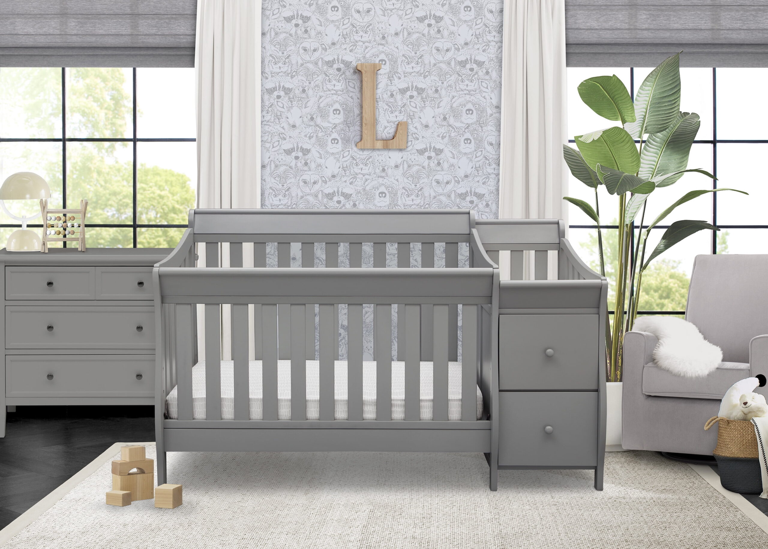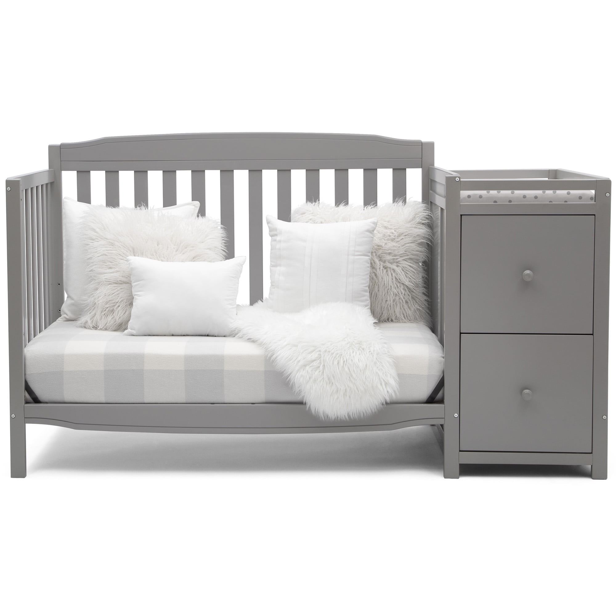 Delta Children Bentley “S” 4-in-1 Convertible Crib and Changer. Greenguard Gold Certified. Grey