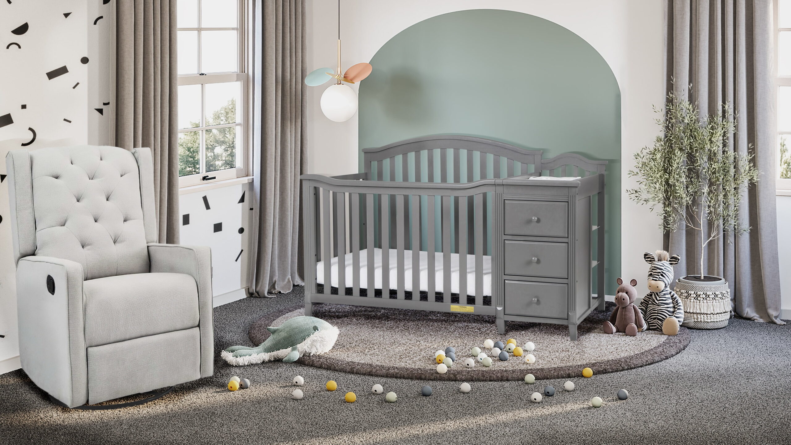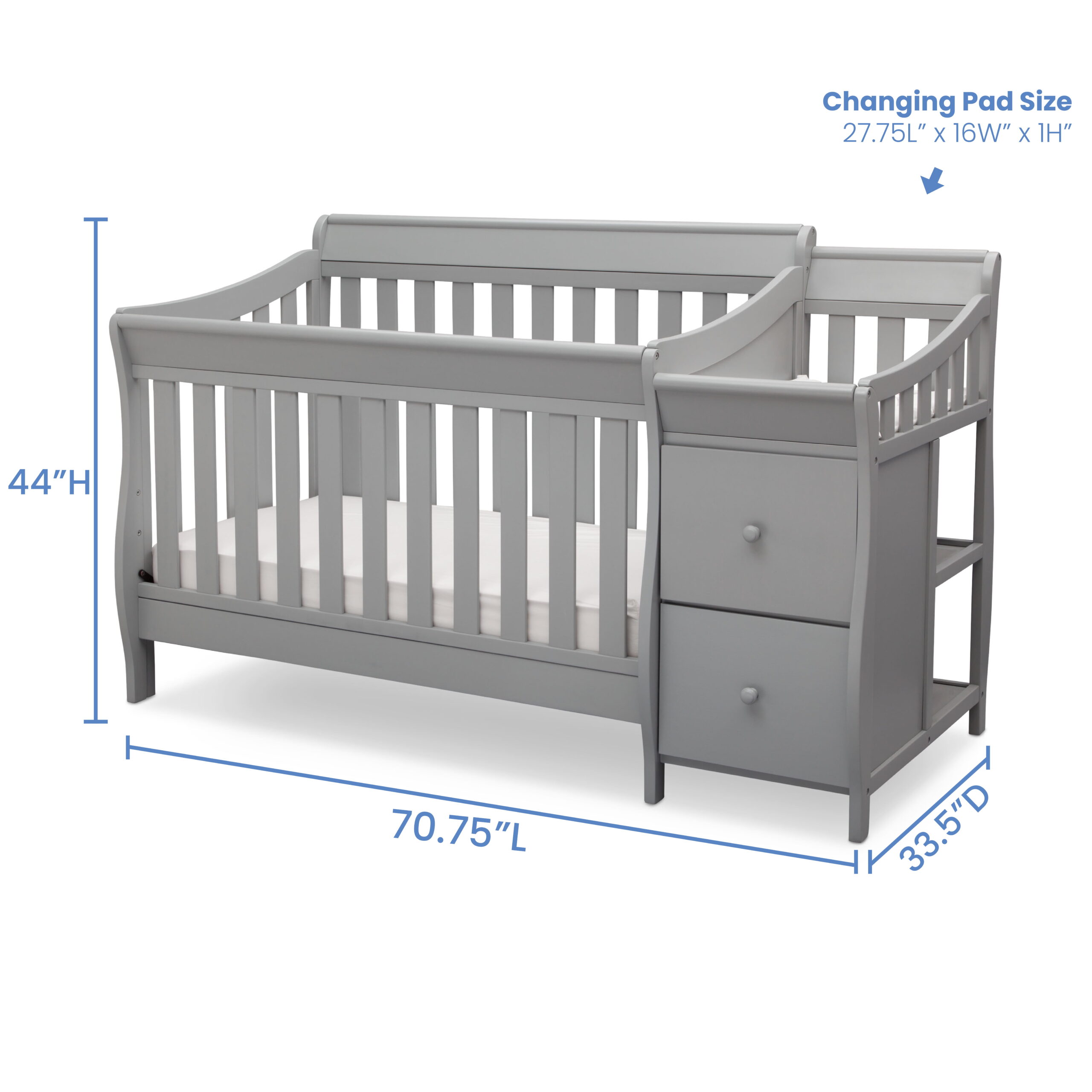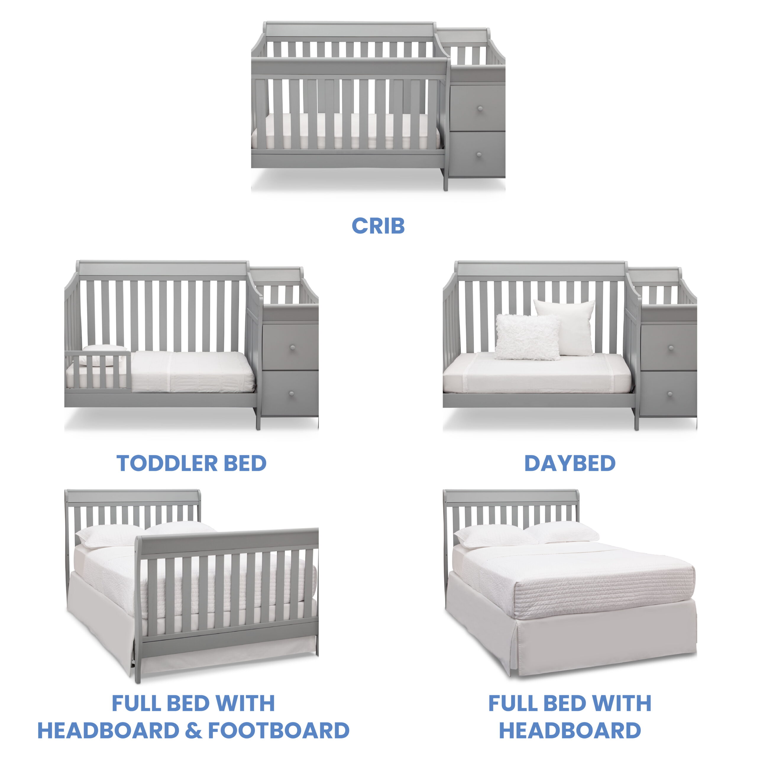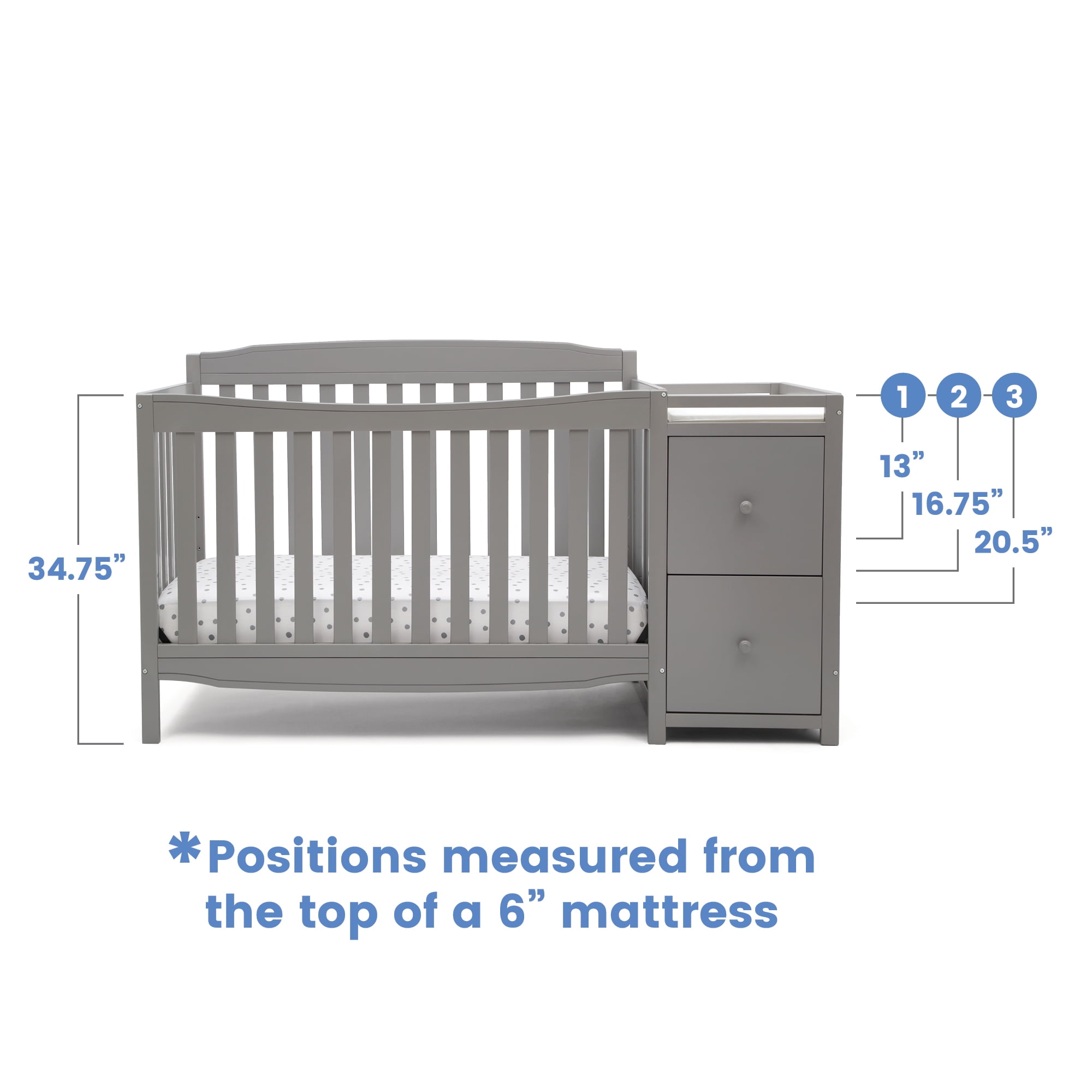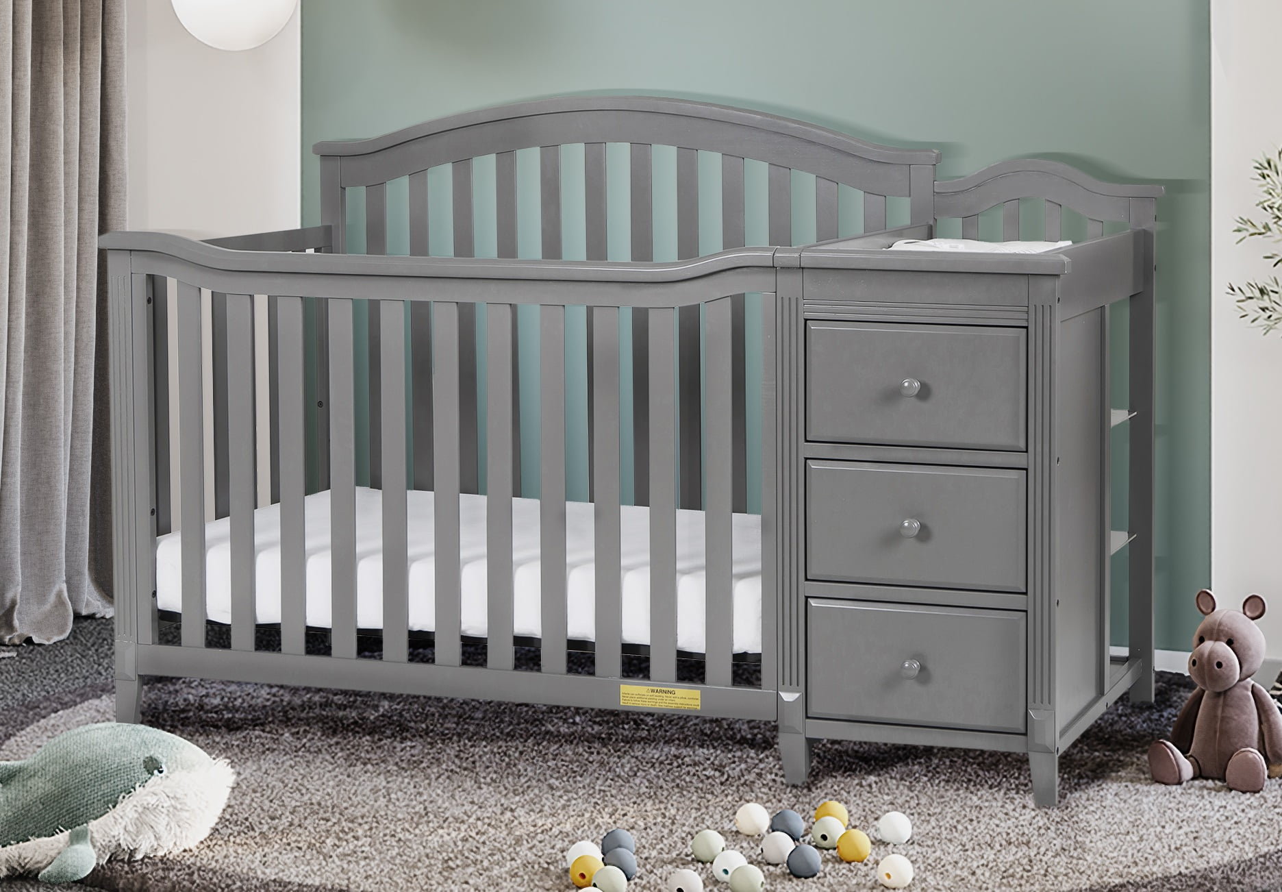 Delta Children Bentley “S” 4-in-1 Convertible Crib and Changer. Greenguard Gold Certified. Grey