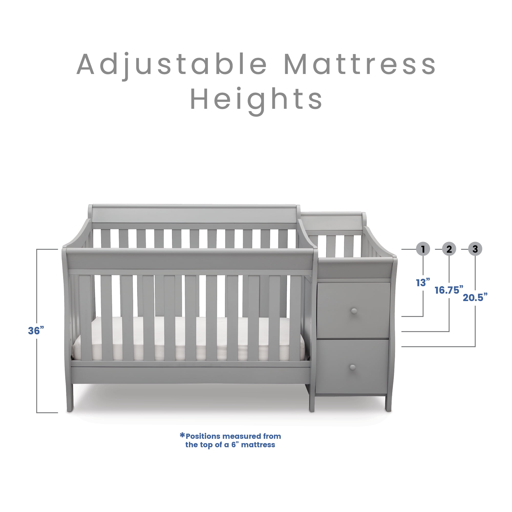 Delta Children Mason 6-in-1 Convertible Crib and Changer. Gray