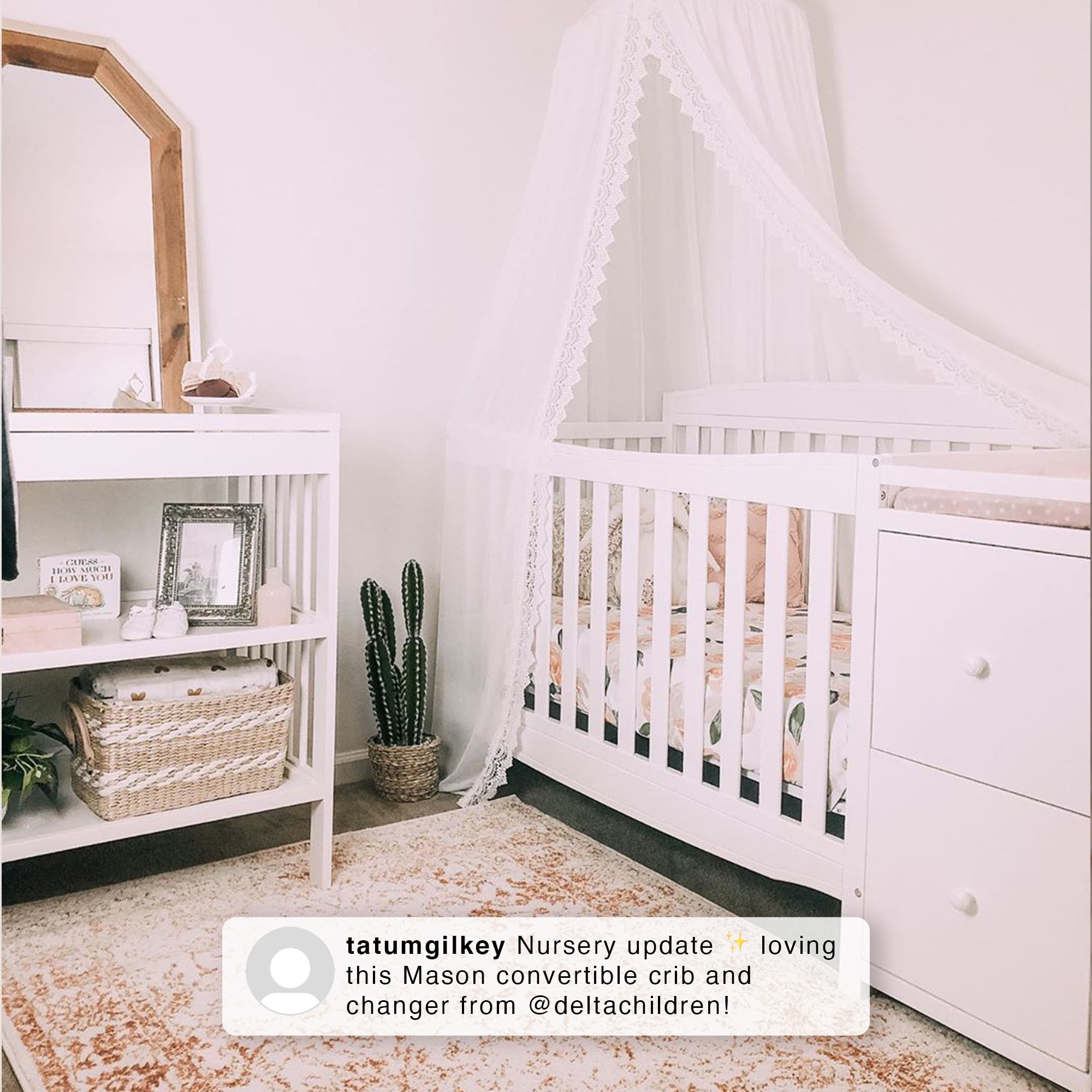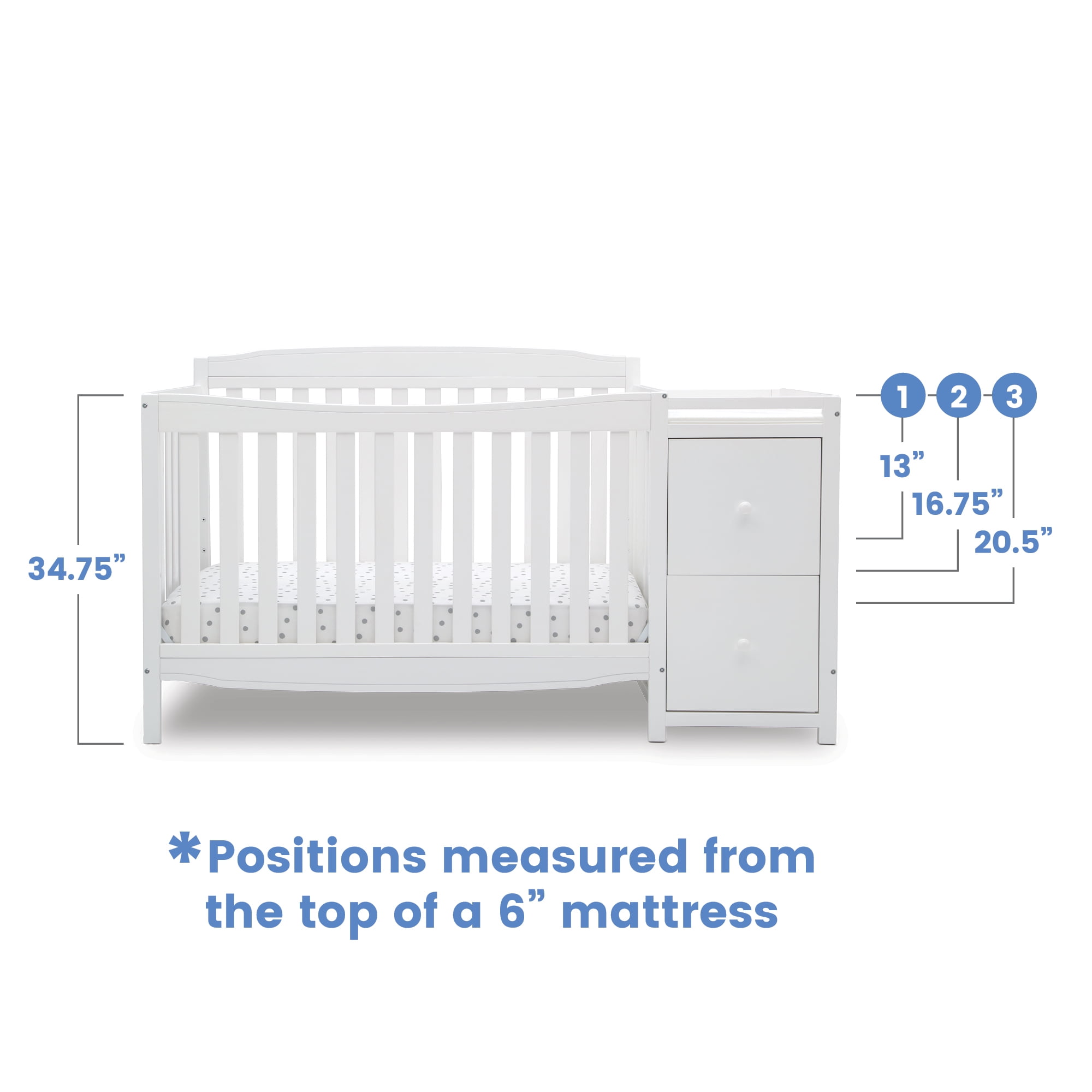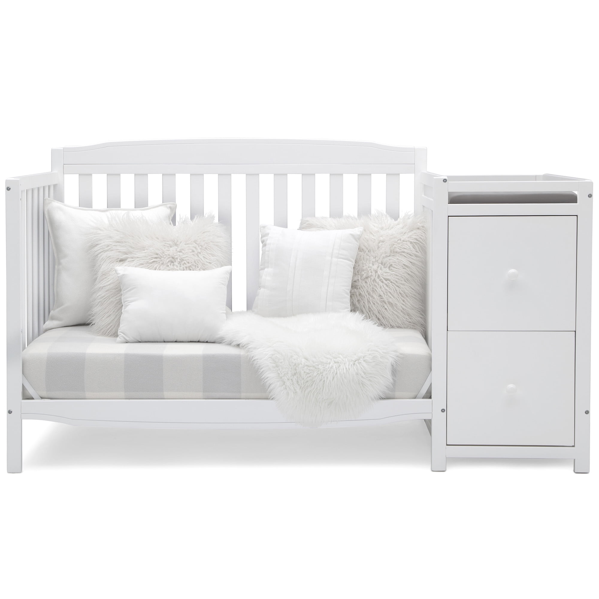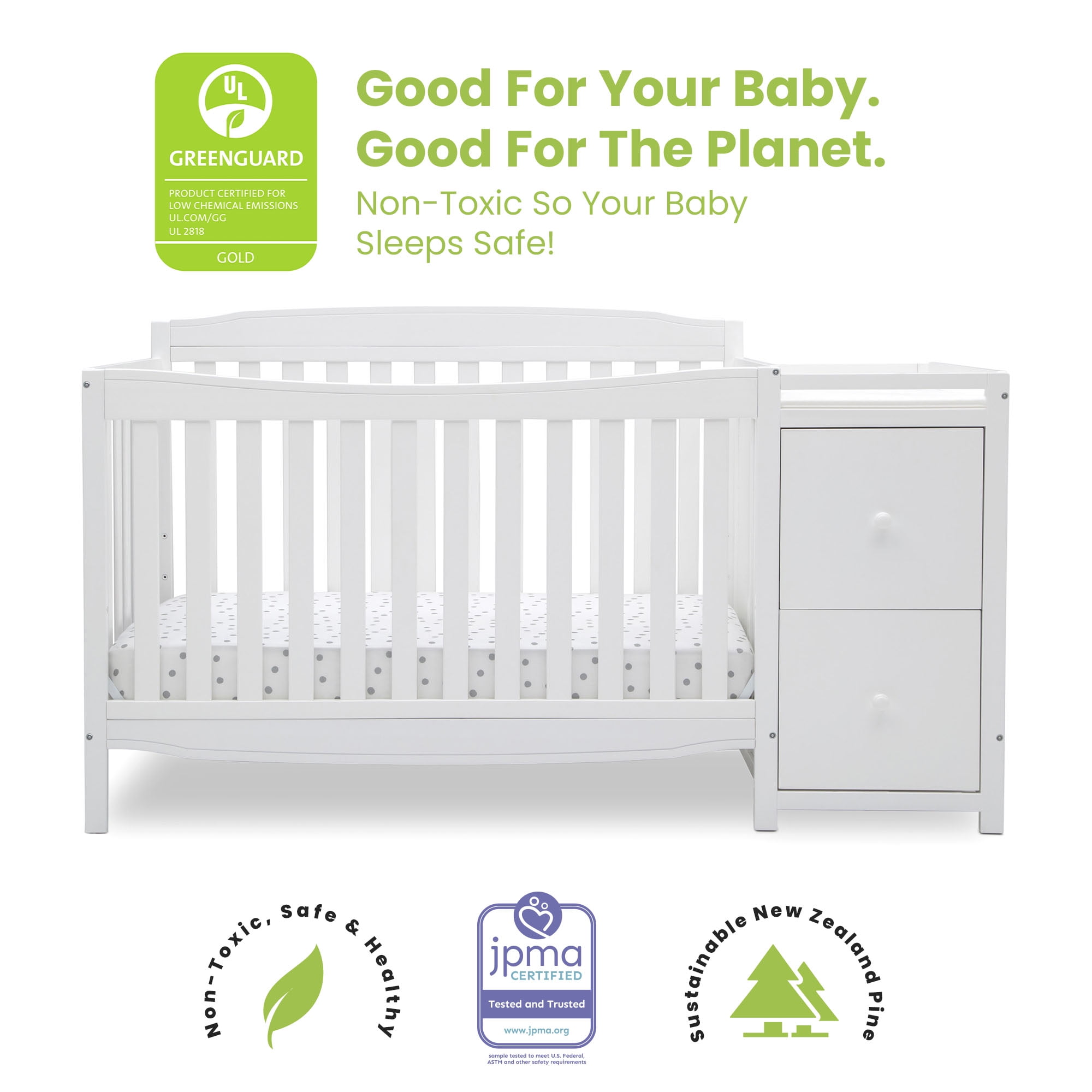 Delta Children Mason 6-in-1 Convertible Crib and Changer. Greenguard Gold Certified. Bianca White