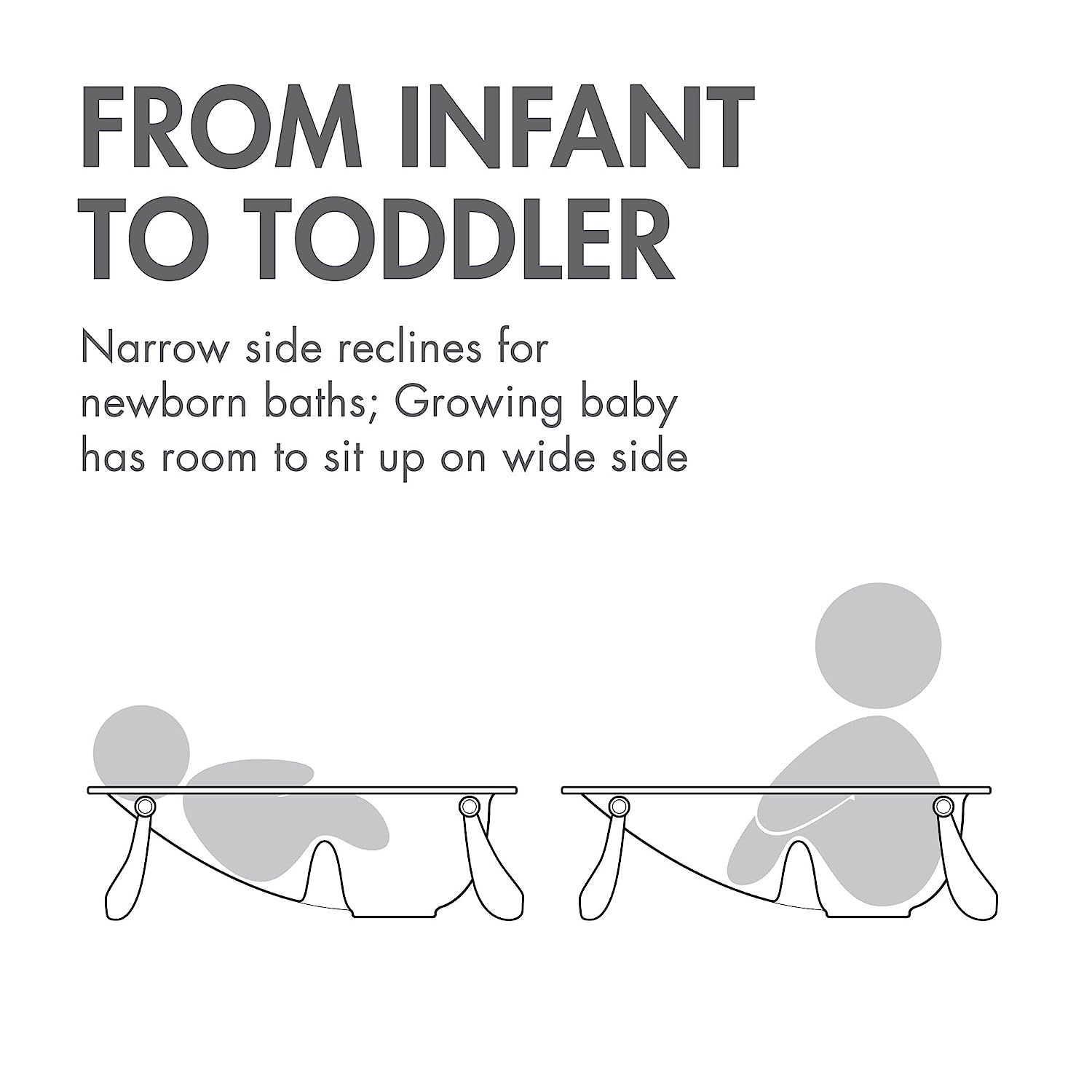 Boon Naked 2-Position Collapsible Baby Bathtub. Recline or Sit Up for Infants and Toddlers - Gray