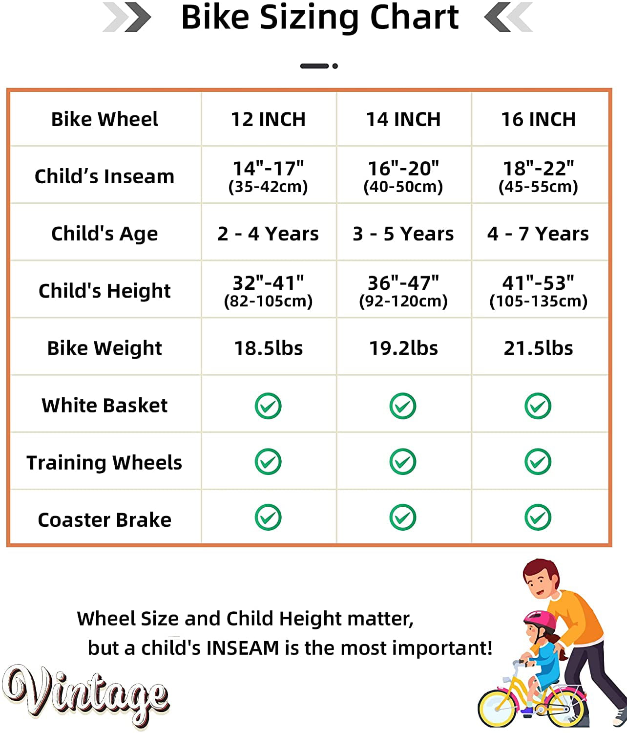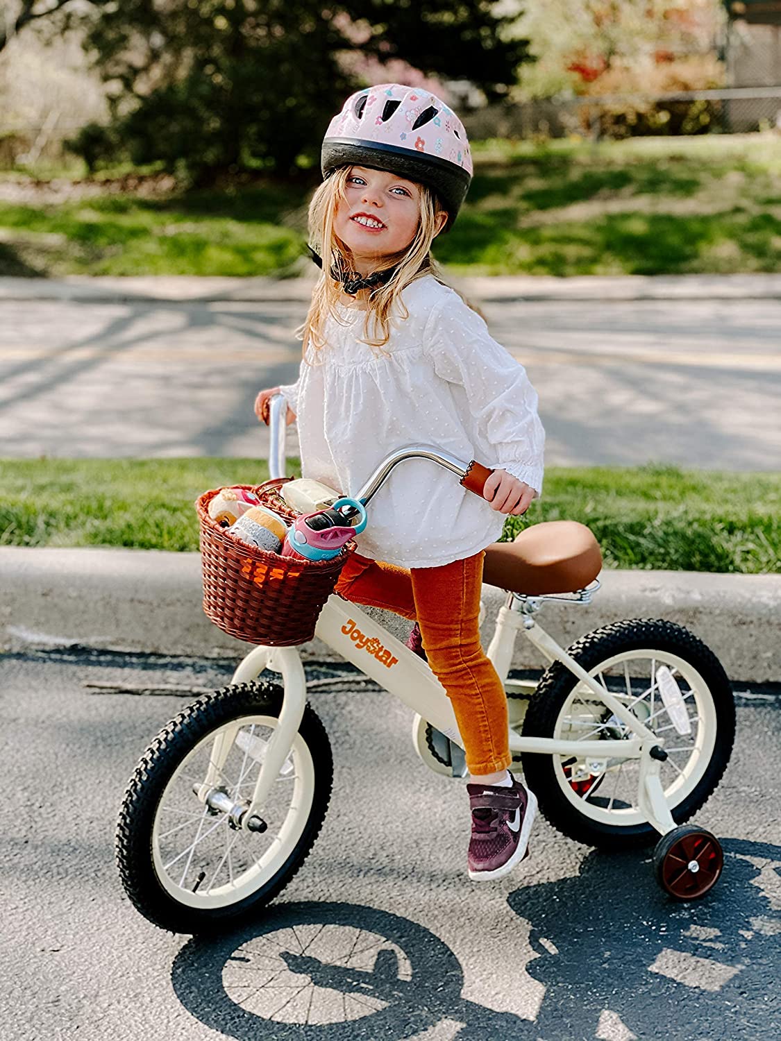 JOYSTAR Vintage 12 Inch Kids Bike with Basket & Training Wheels for 2-7 Years Old Girls & Boys (Green. Beige & Pink)