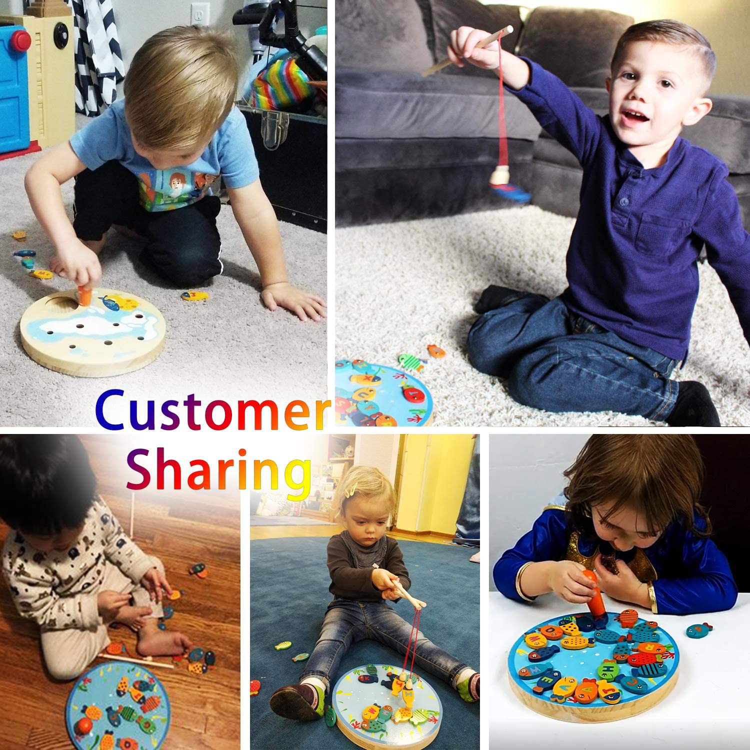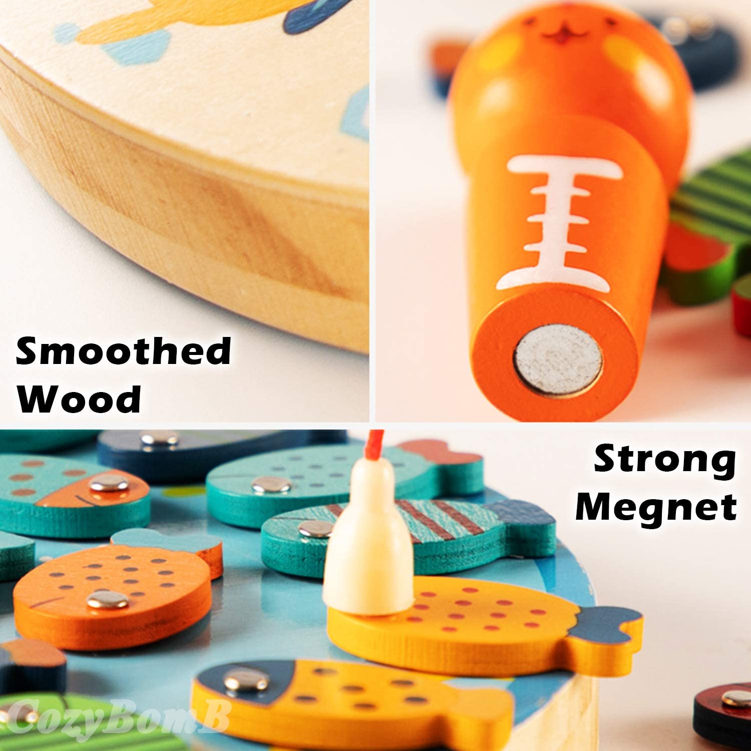 Coogam Wooden Magnetic Fishing Game. Fine Motor Skill Toy ABC Alphabet Color Sorting Puzzle