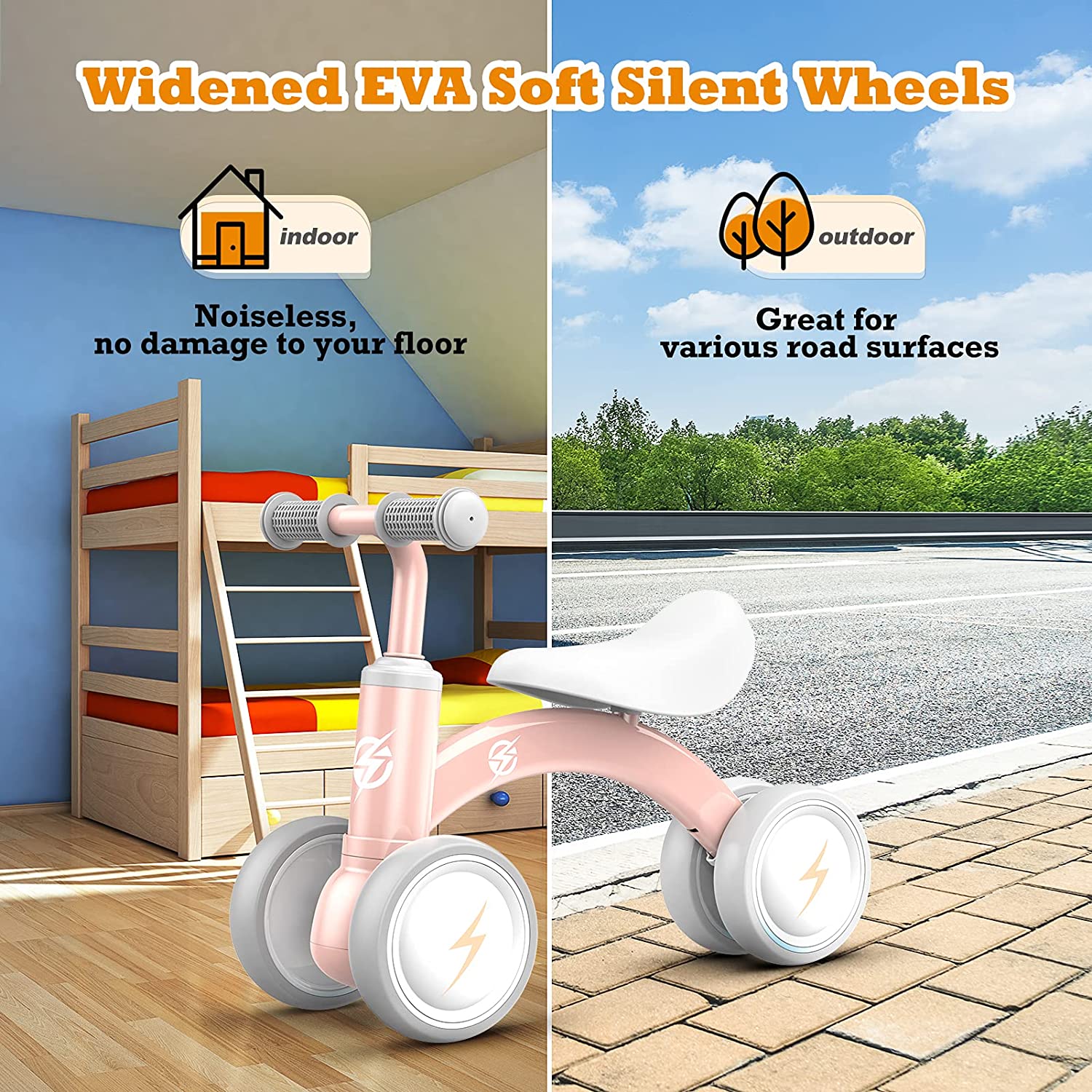 Baby Balance Bikes.Toddler Bikes. Kids Riding Toys. Soft Seat for 1 Year Old. Pink