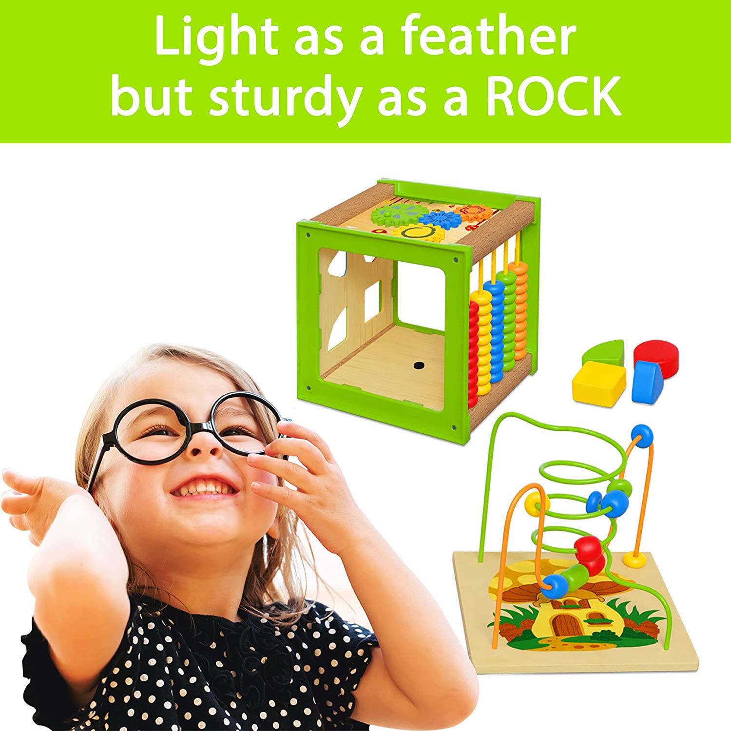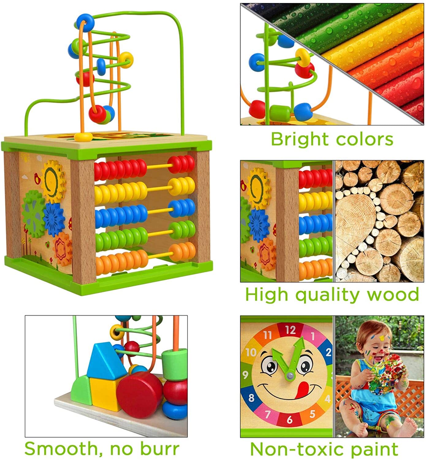 TOYVENTIVE Wooden Kids Baby Activity Cube. Toddler Educational. Toys 12-18 Months