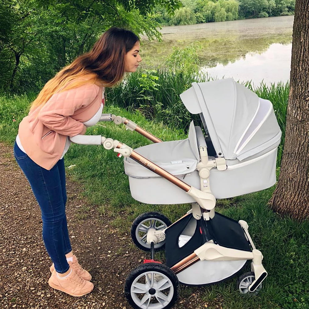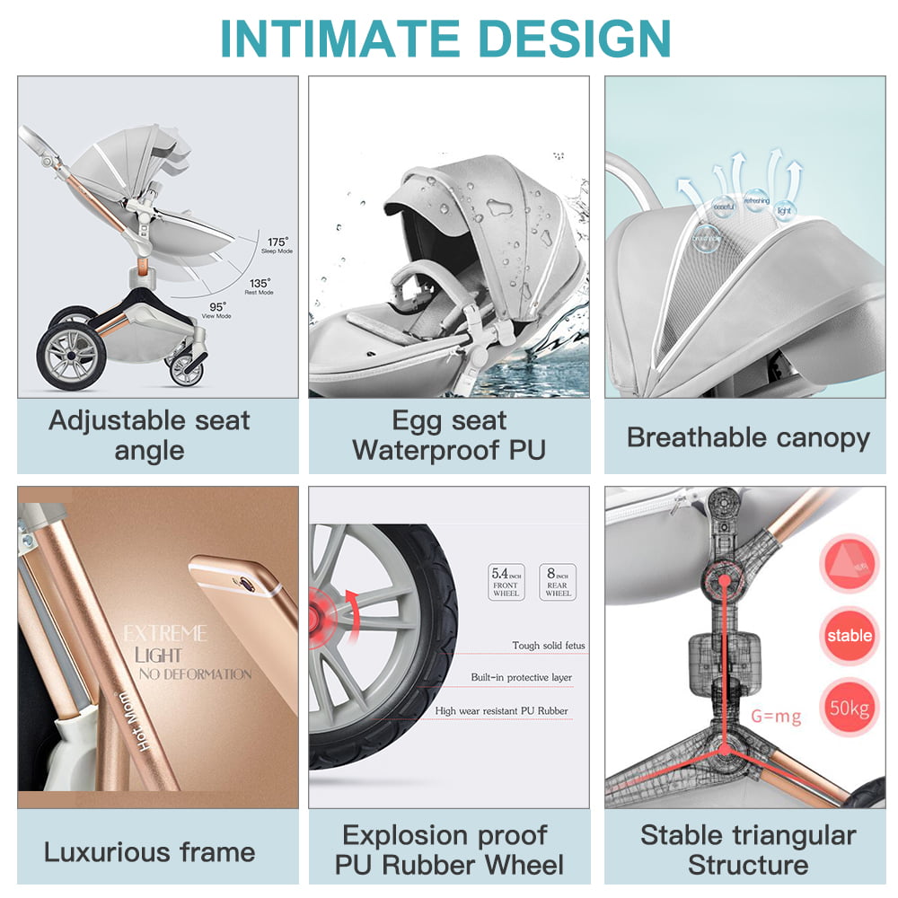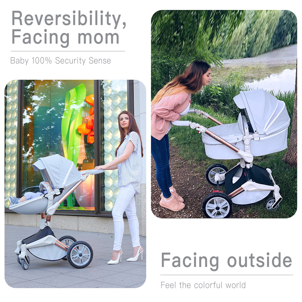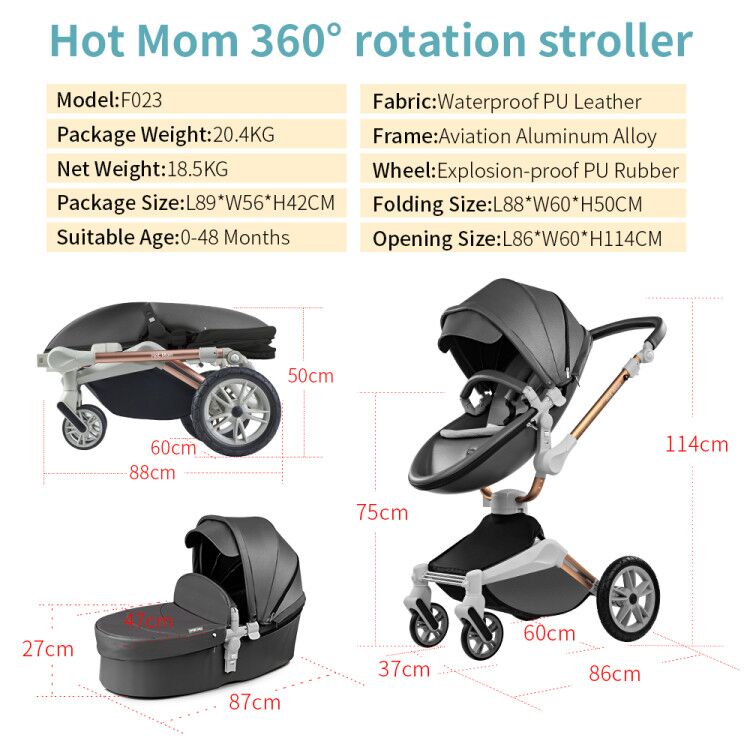 Hot Mom 360 Rotate Baby stroller with PU Leather.Reversible travel system.Unisex.Gery