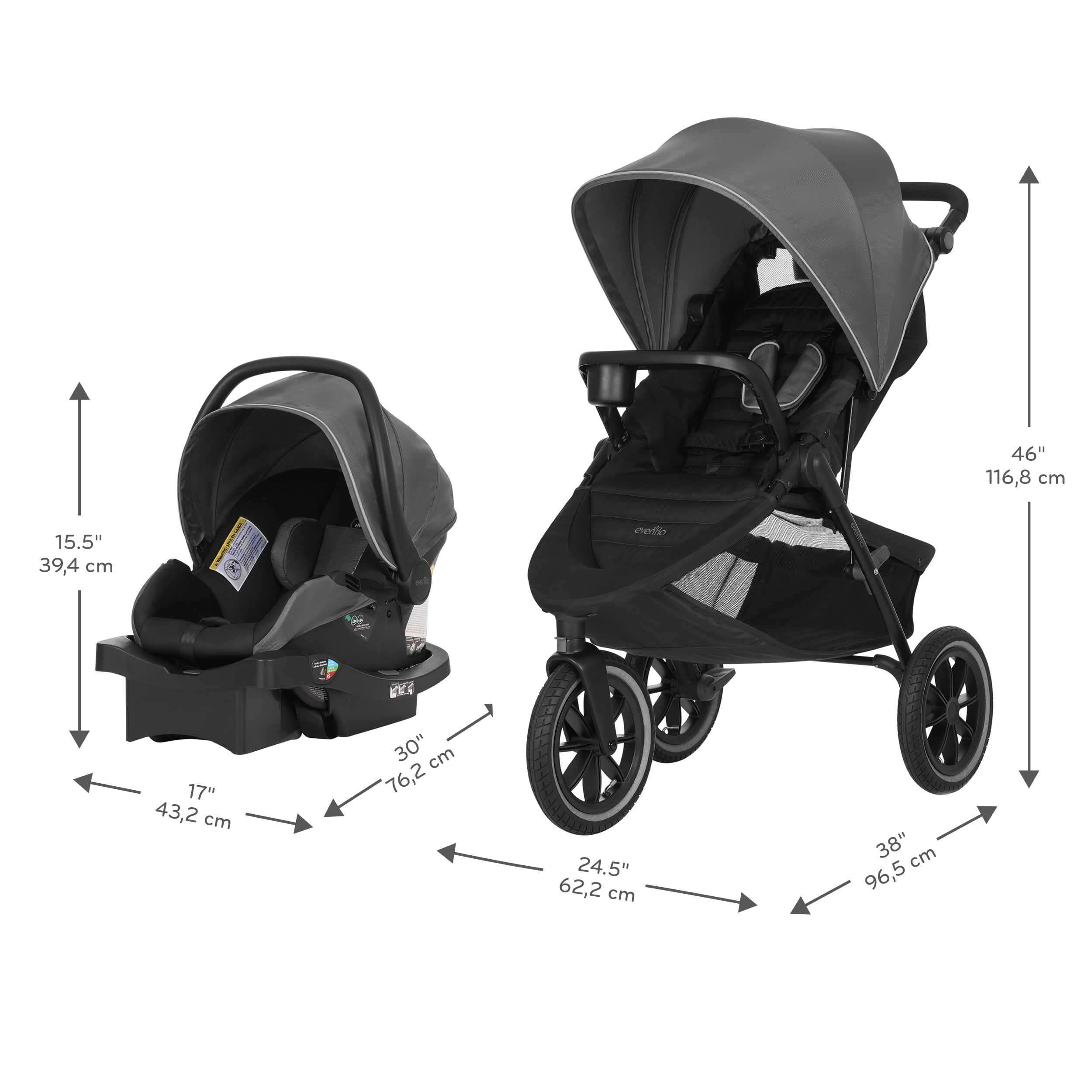 Folio3 Stroll & Jog Travel System with LiteMax Infant Car Seat (Avenue Gray)