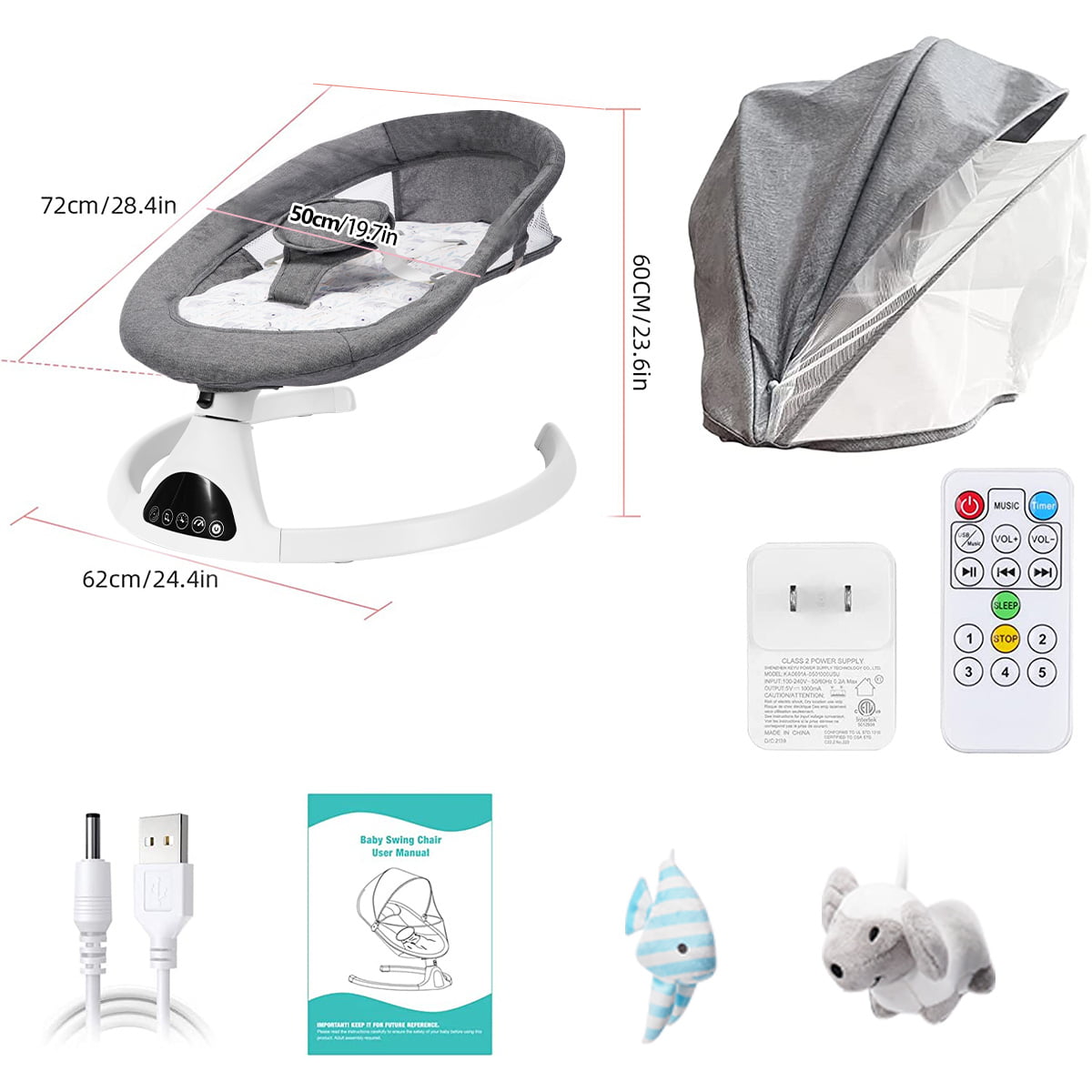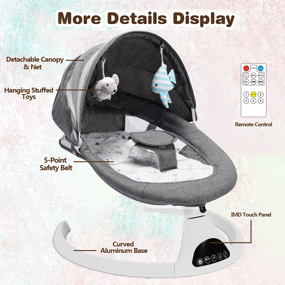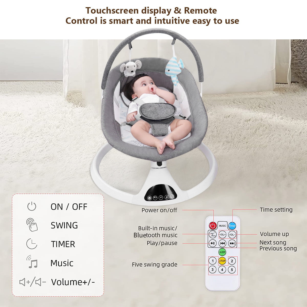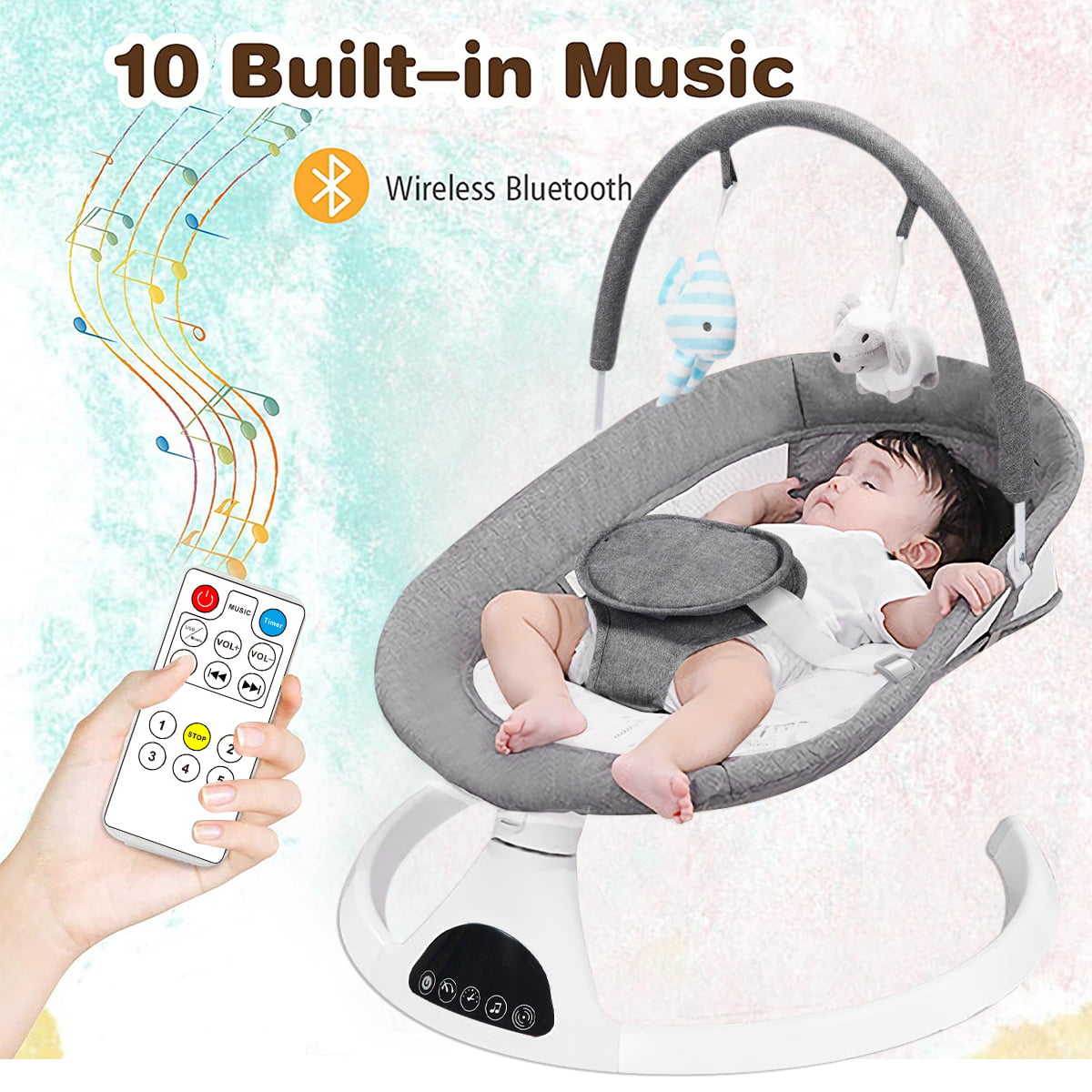 Electric Baby Swing for Infants. Bluetooth Swing Baby Bouncer Baby Rocker with Intelligence Timing. Gray
