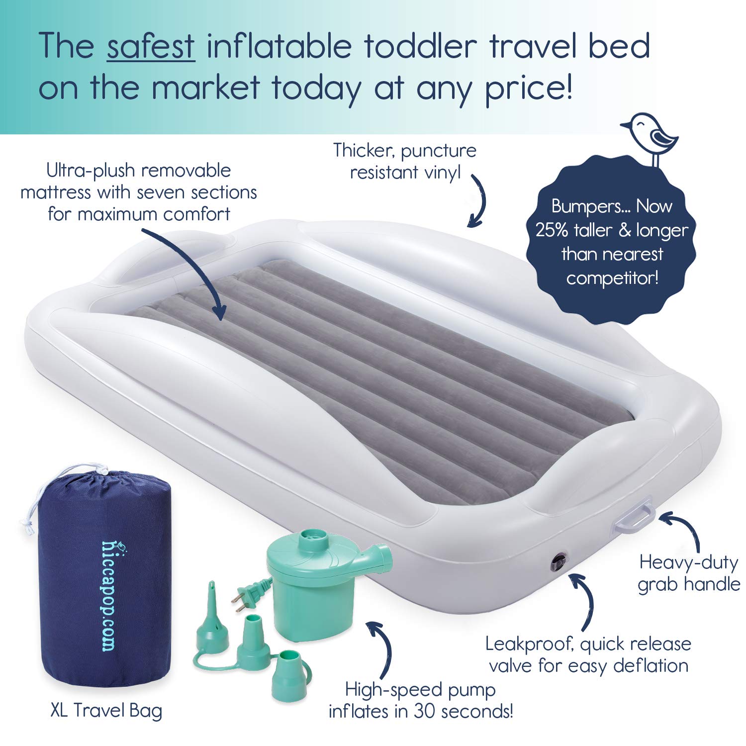 hiccapop Inflatable Toddler Travel Bed with Safety Bumpers 4-Sided | Portable Toddler Bed for Kids | Toddler Air Mattress | Kids Air Mattress - Grey
