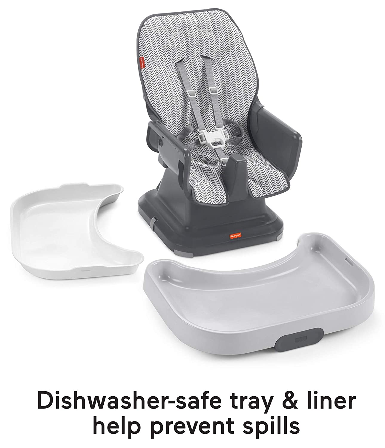 Fisher-Price Spacesaver Simple Clean High Chair Baby To Toddler Portable Dining Seat With Removable Tray Liner. Pencil Strokes. Arrow Tire Tracks