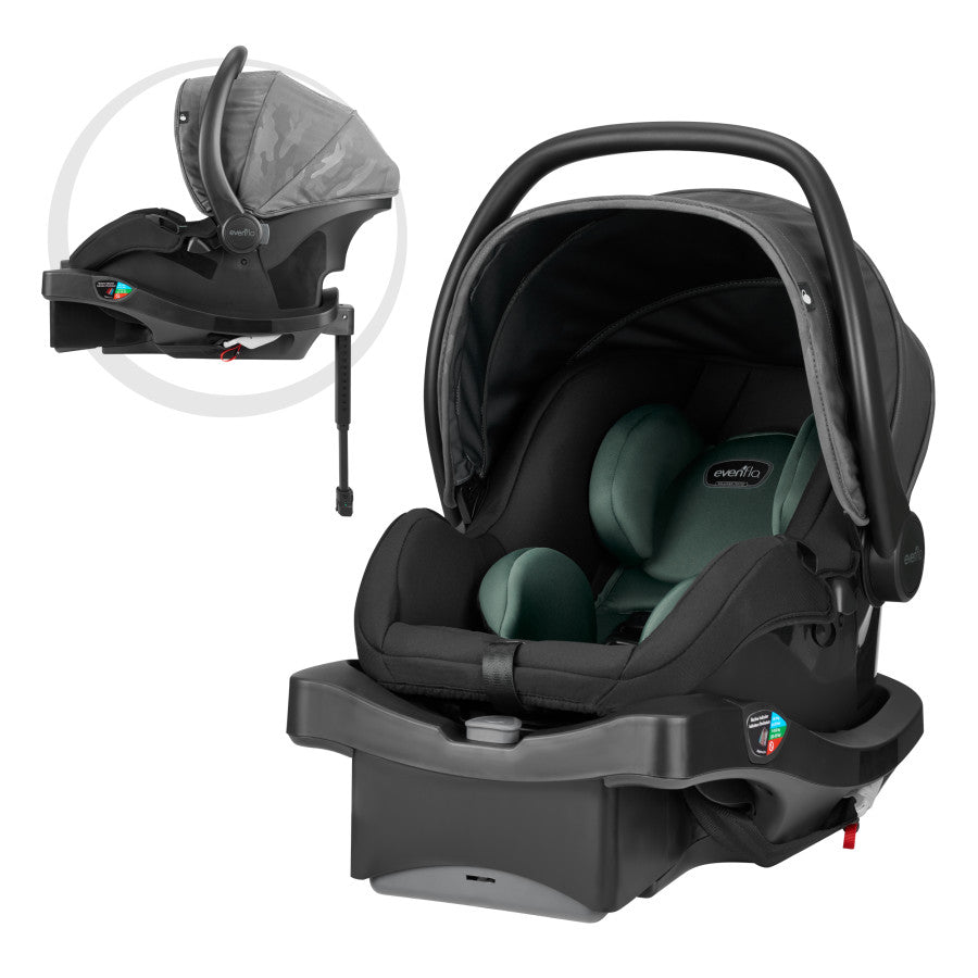 Evenflo LiteMax DLX Infant Car Seat with FreeFlow Fabric and SafeZone Load Leg Base (Olympus Black)