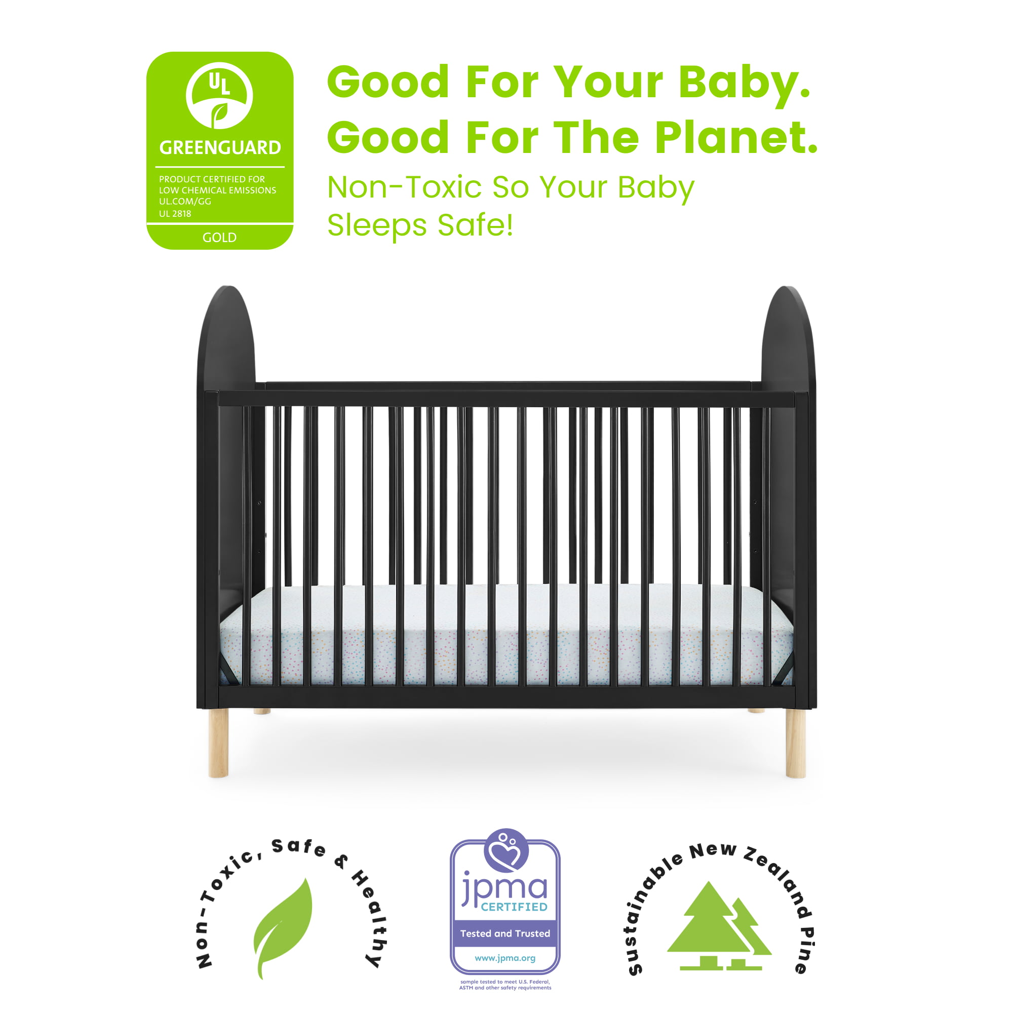 Delta Children Reese 4-in-1 Convertible Crib - Greenguard Gold Certified. Bianca White/Natural
