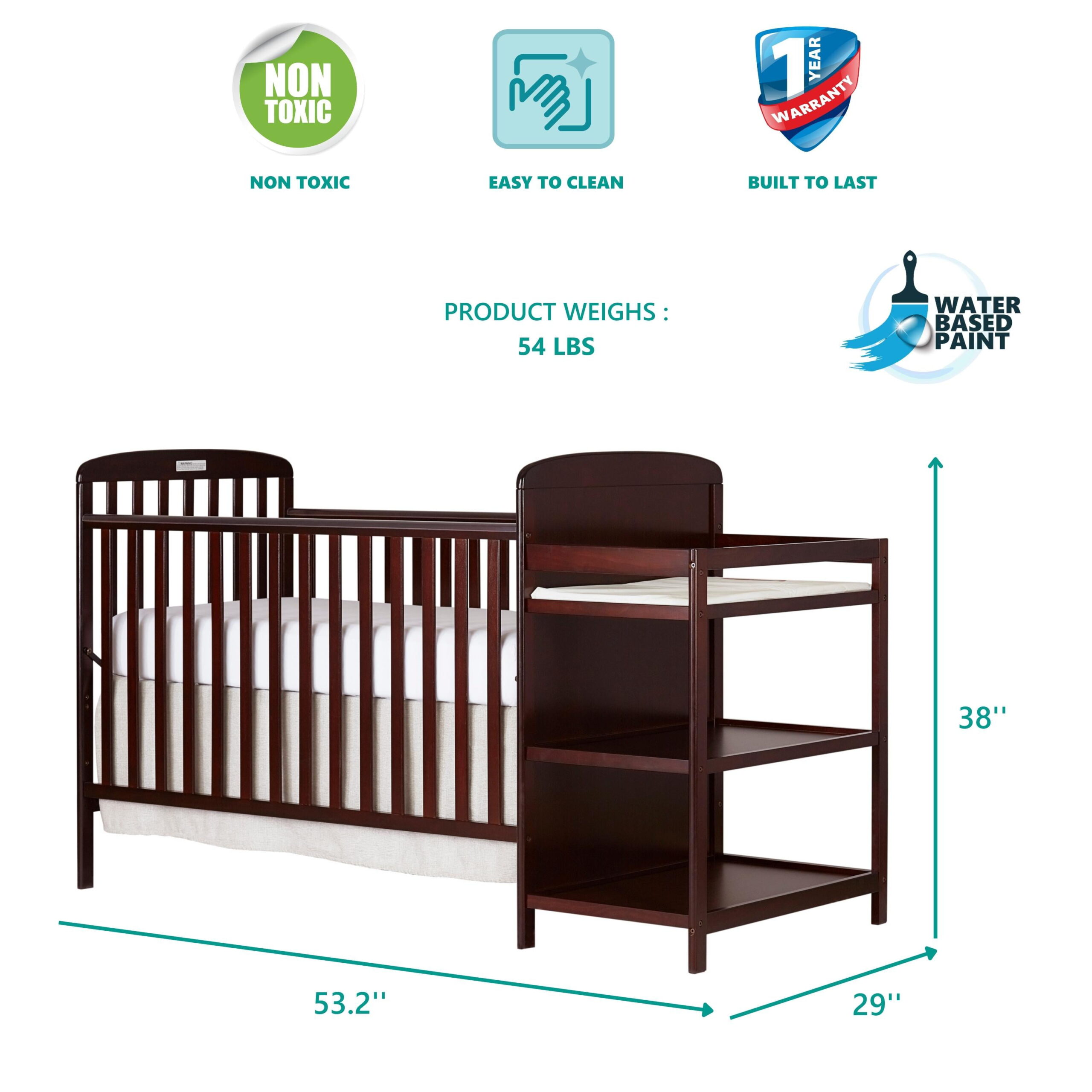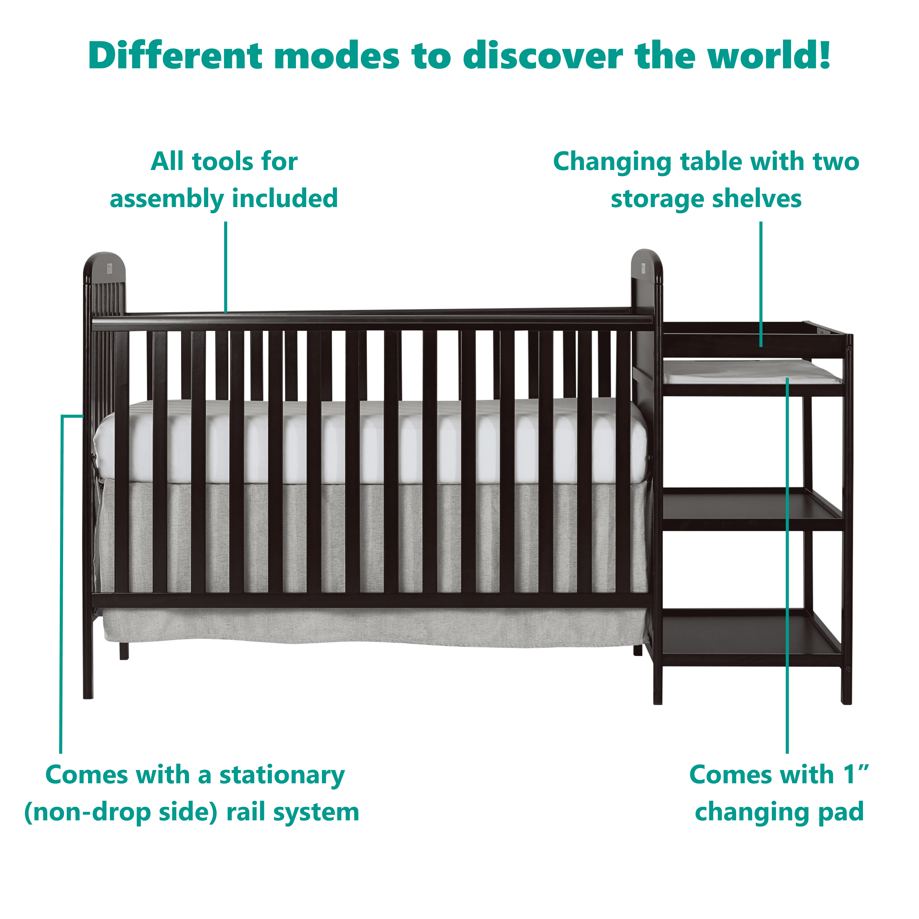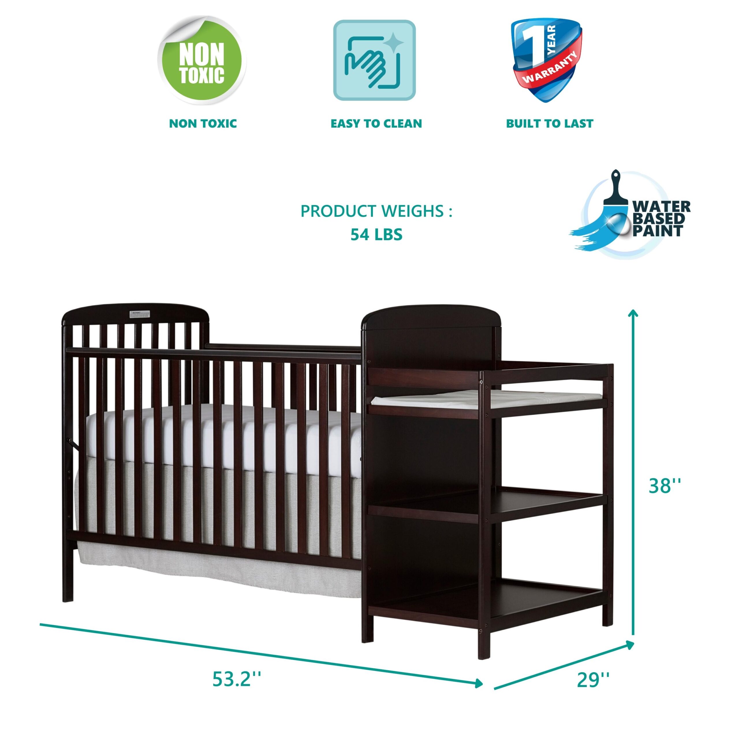 Dream On Me Anna 3-in-1 Full Size Crib and Changing Table Combo in Espresso