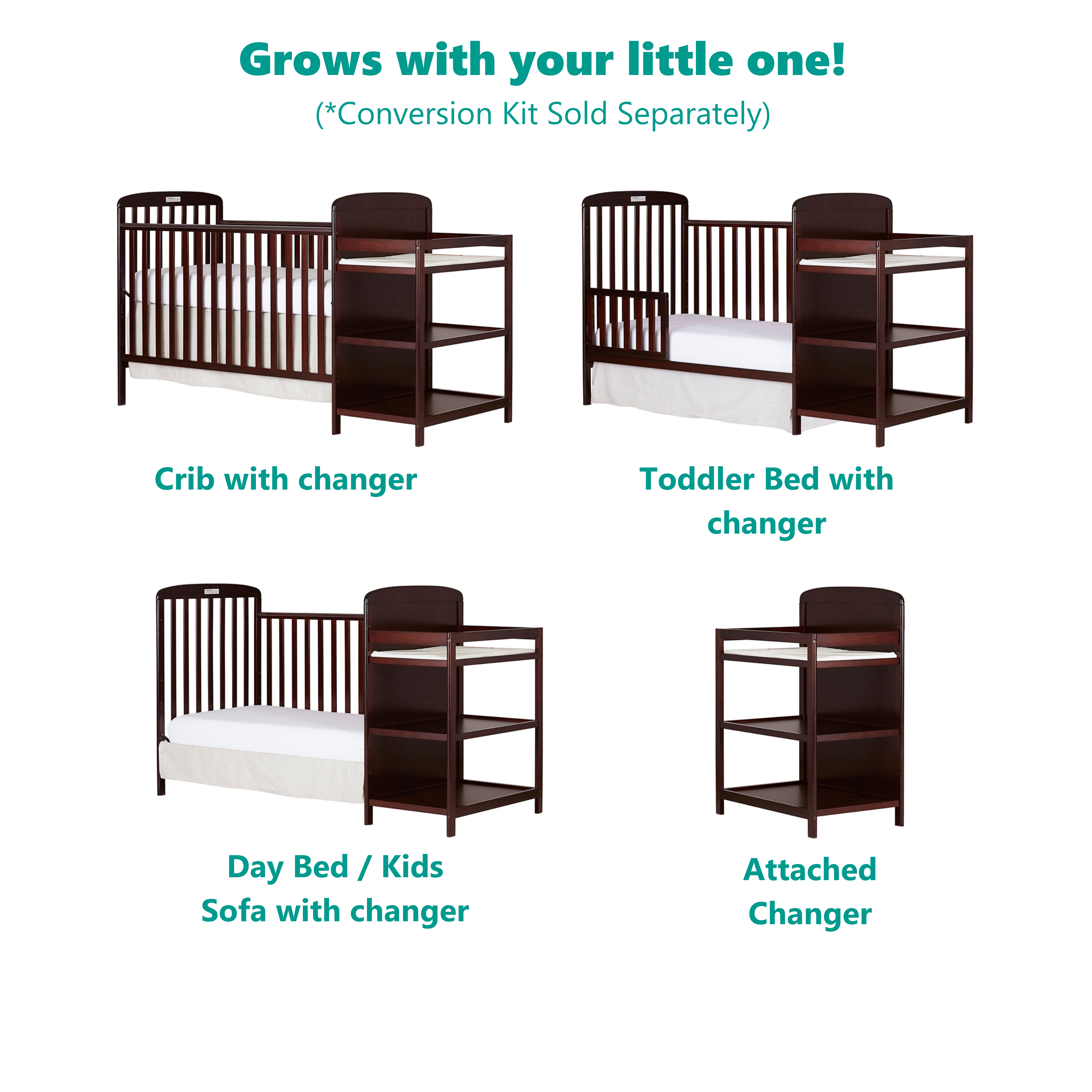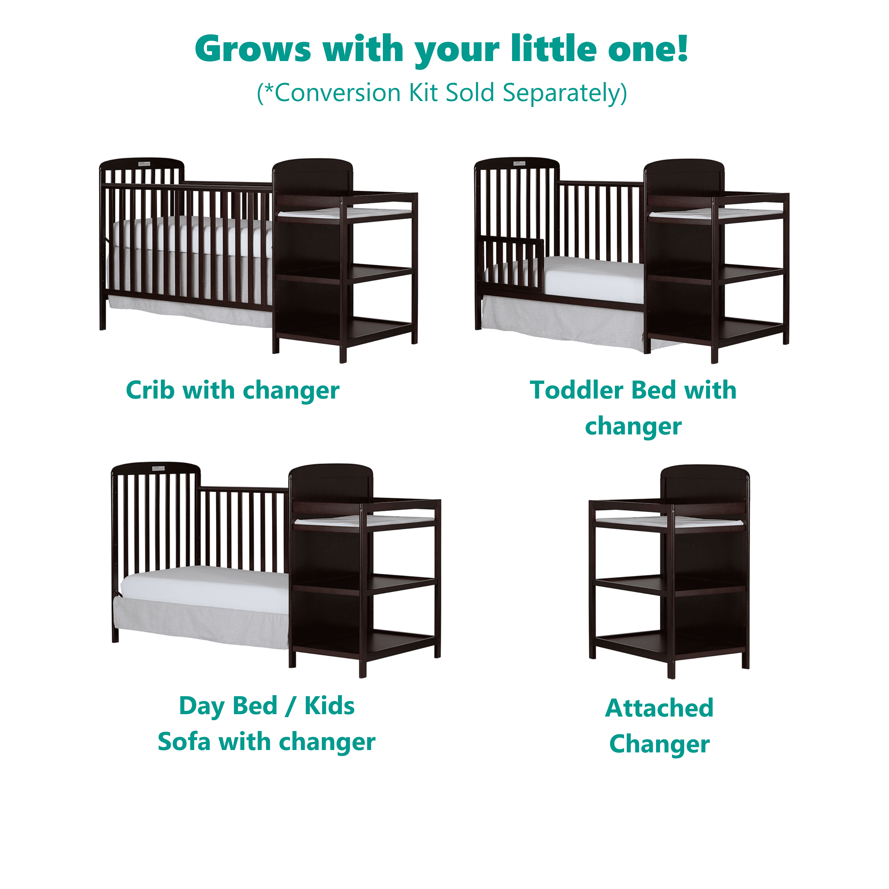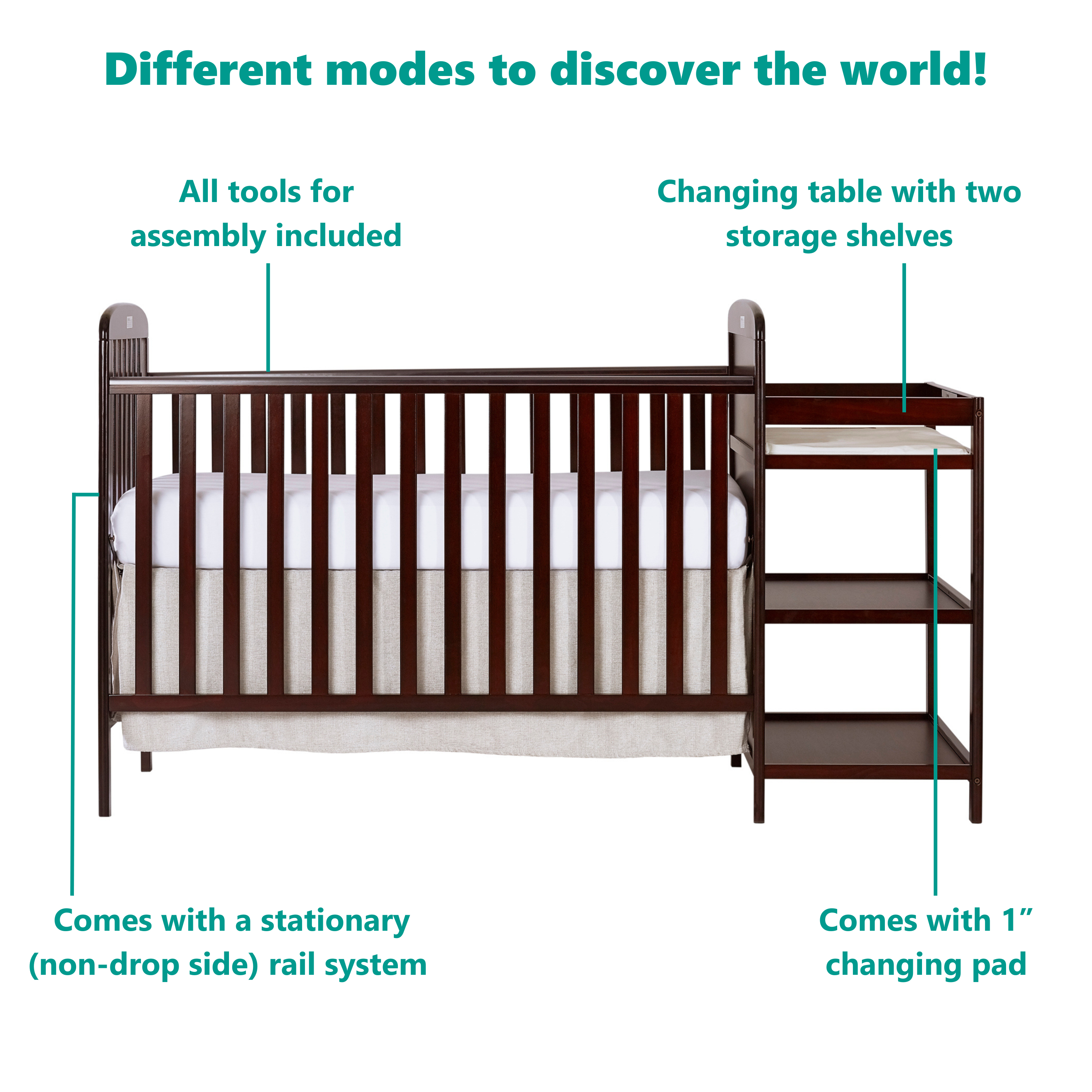 Dream On Me Anna 3-in-1 Full Size Crib and Changing Table Combo in Espresso
