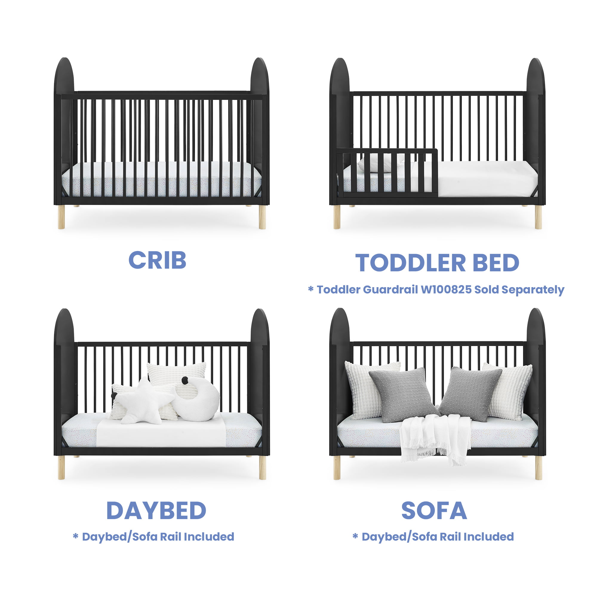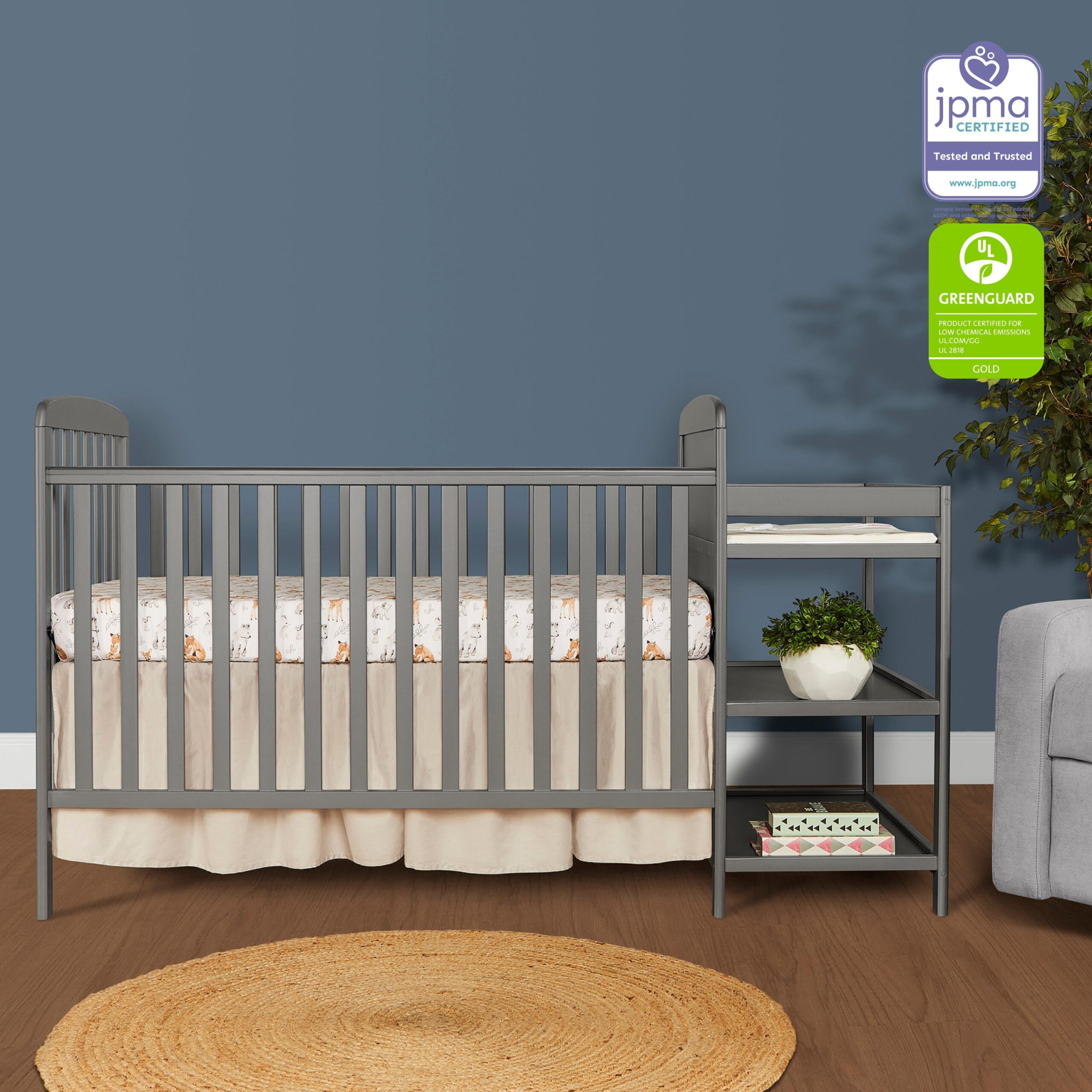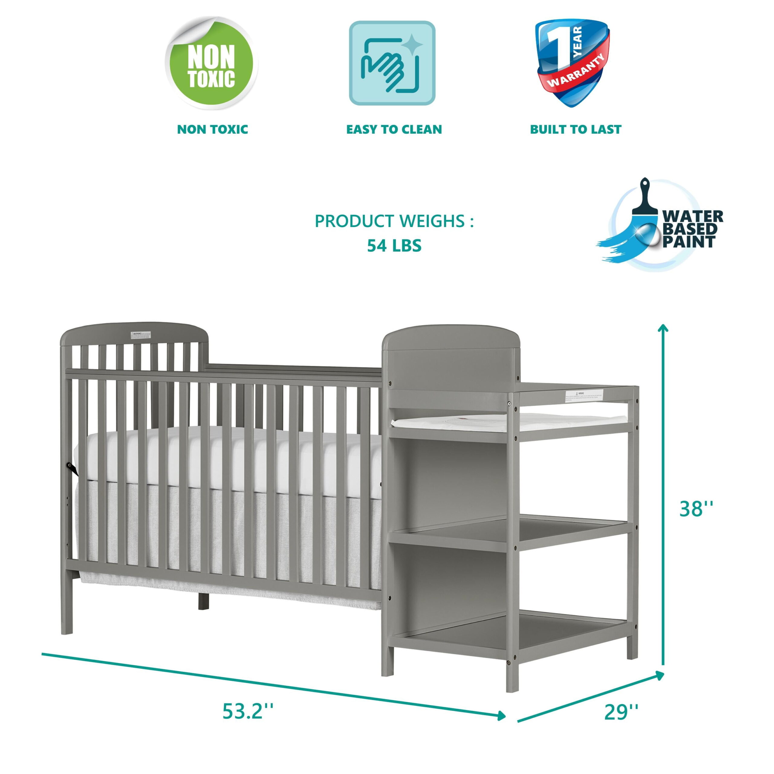 Oxford Baby Harper 4-in-1 Convertible Crib. Dove Gray. GREENGUARD Gold Certified. Wooden Crib