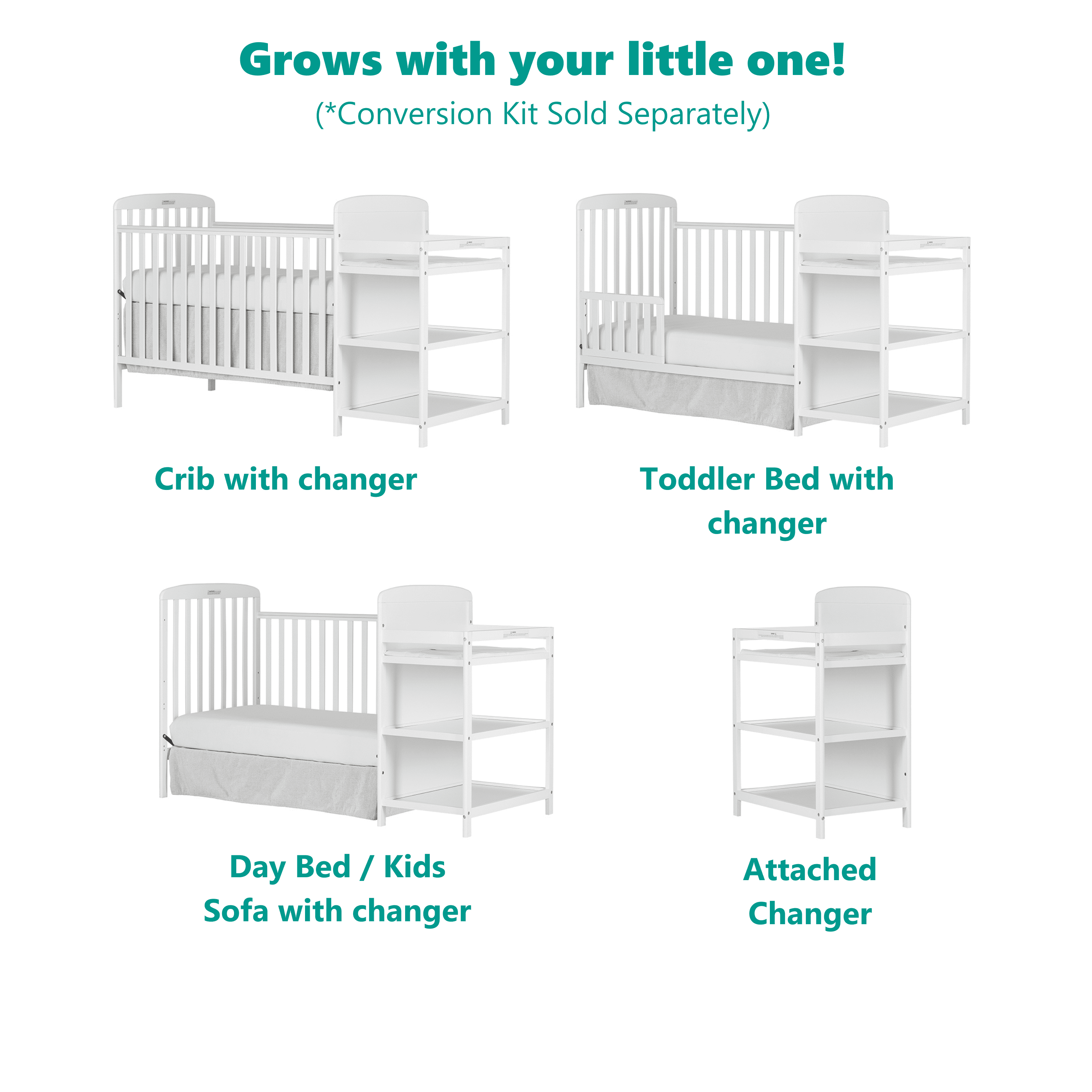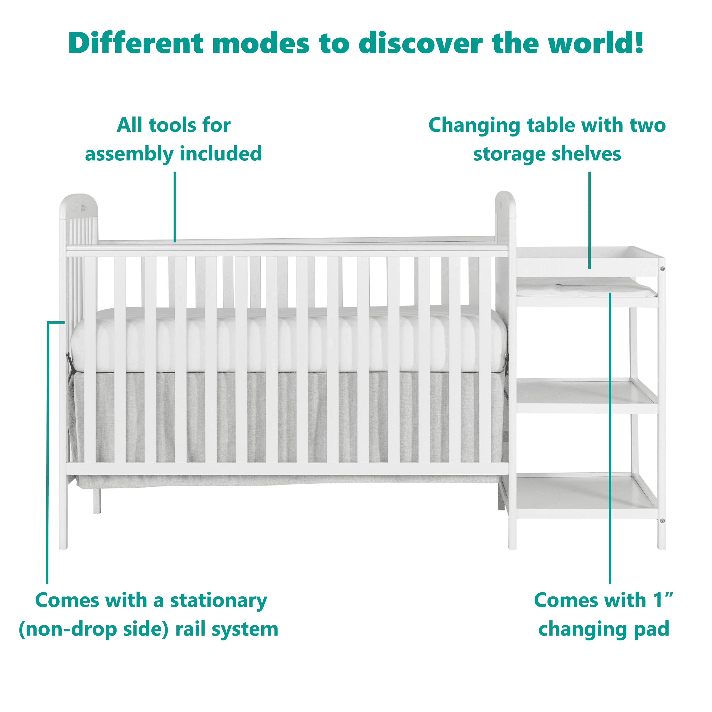 Dream On Me Anna 3-in-1 Full Size Crib and Changing Table Combo in White