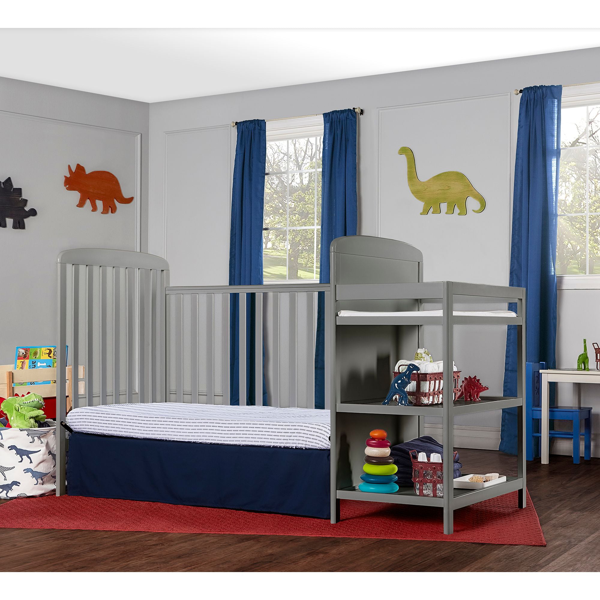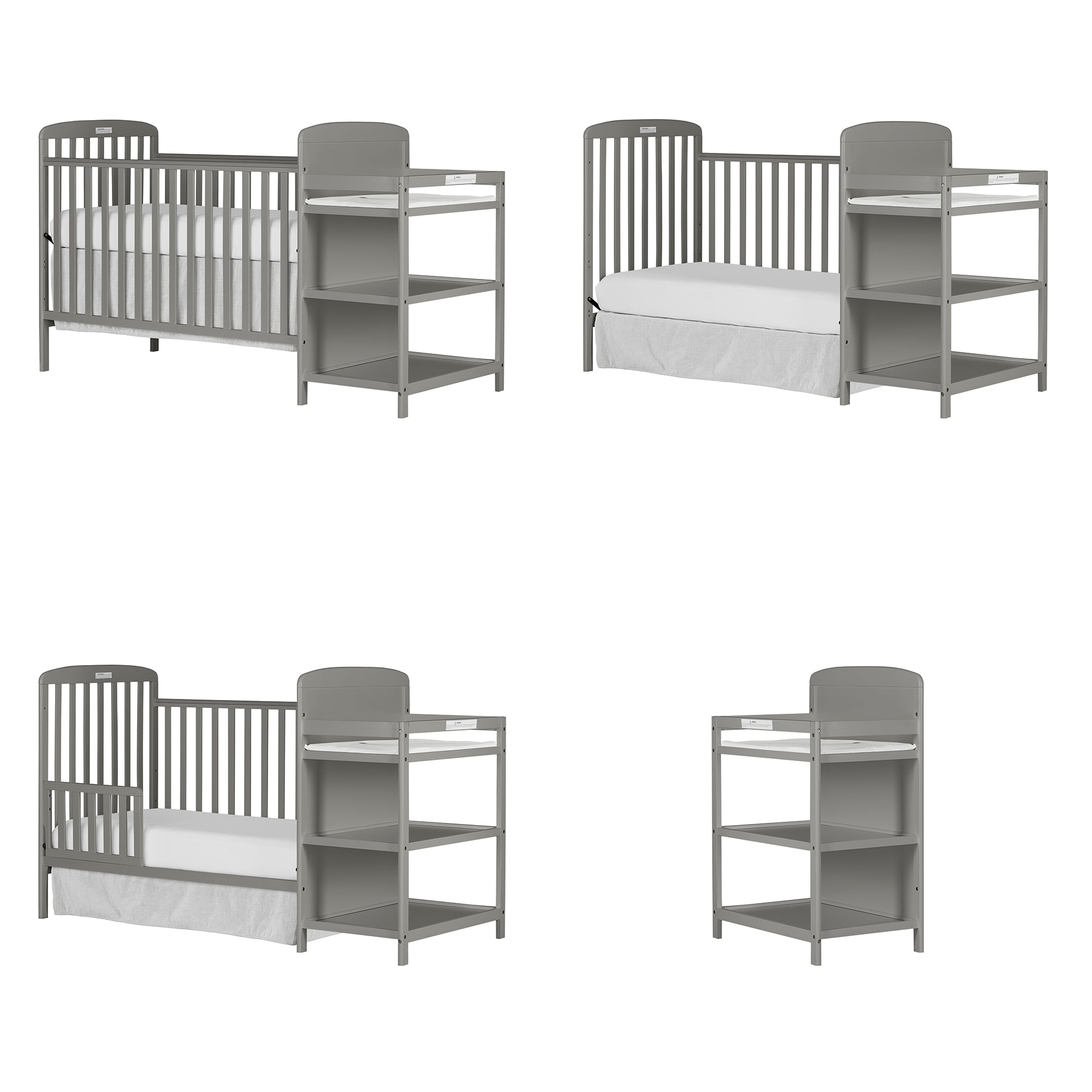 Dream On Me Anna 3-in-1 Full Size Crib and Changing Table Combo in Steel Grey