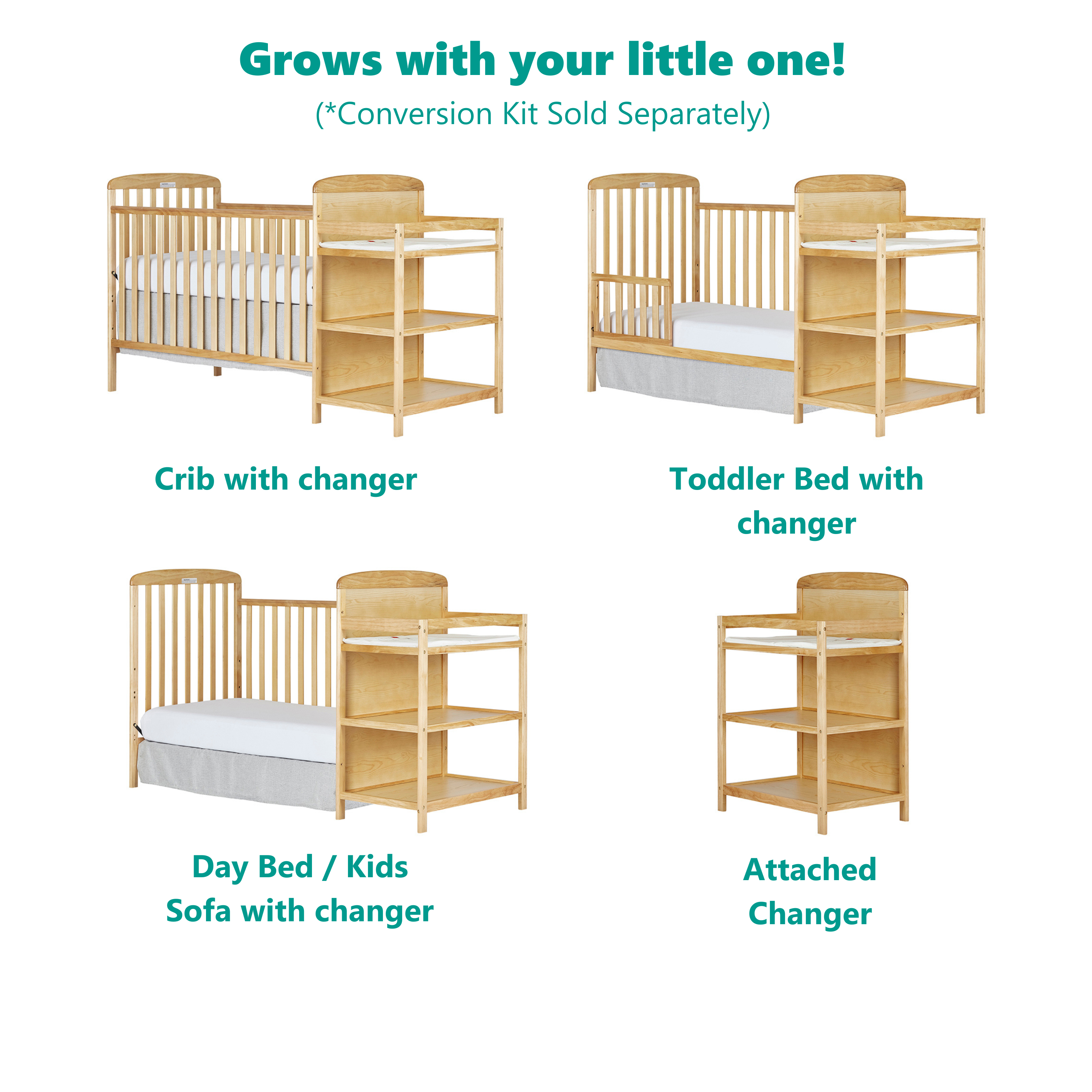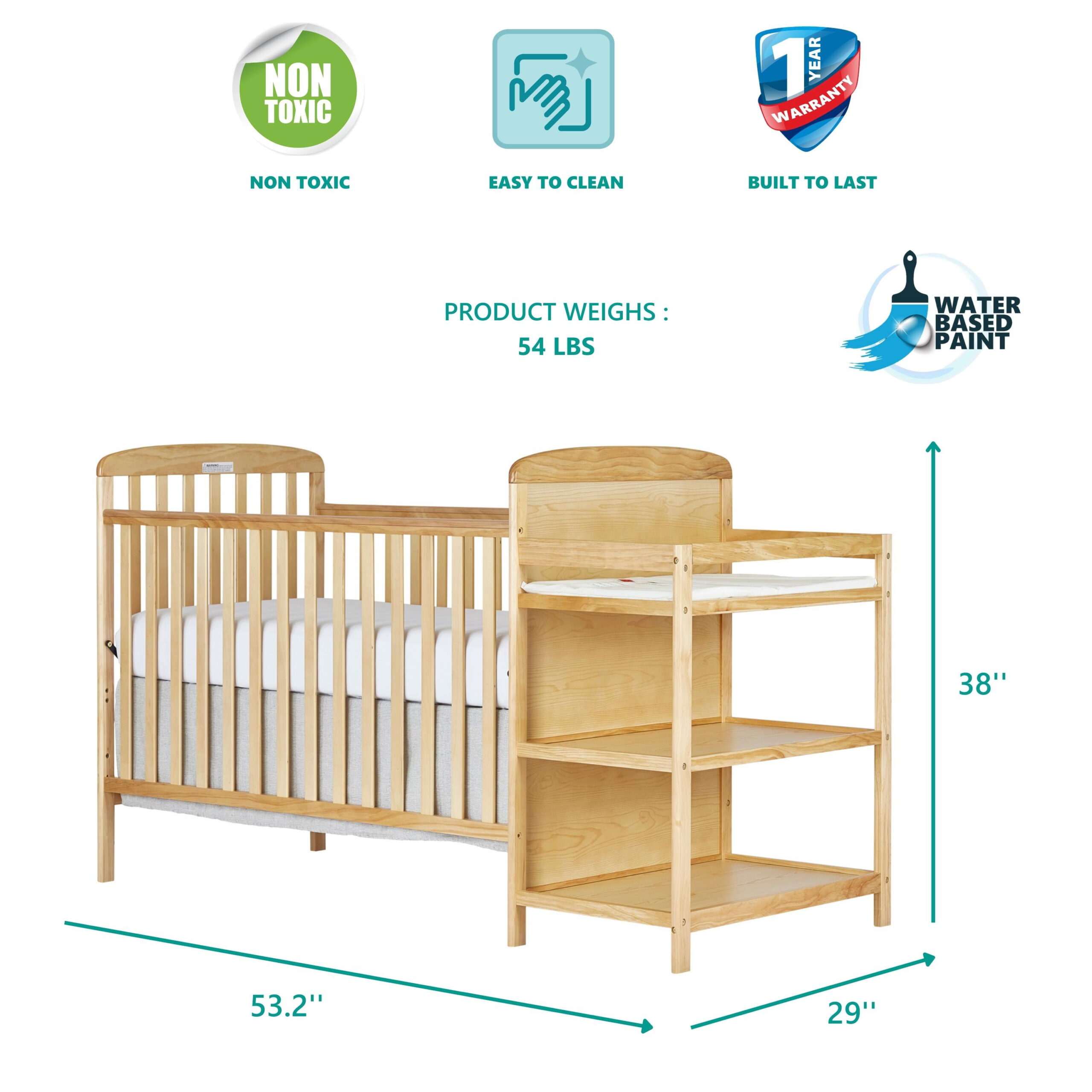 Dream On Me Anna 3-in-1 Full Size Crib and Changing Table Combo in Natural