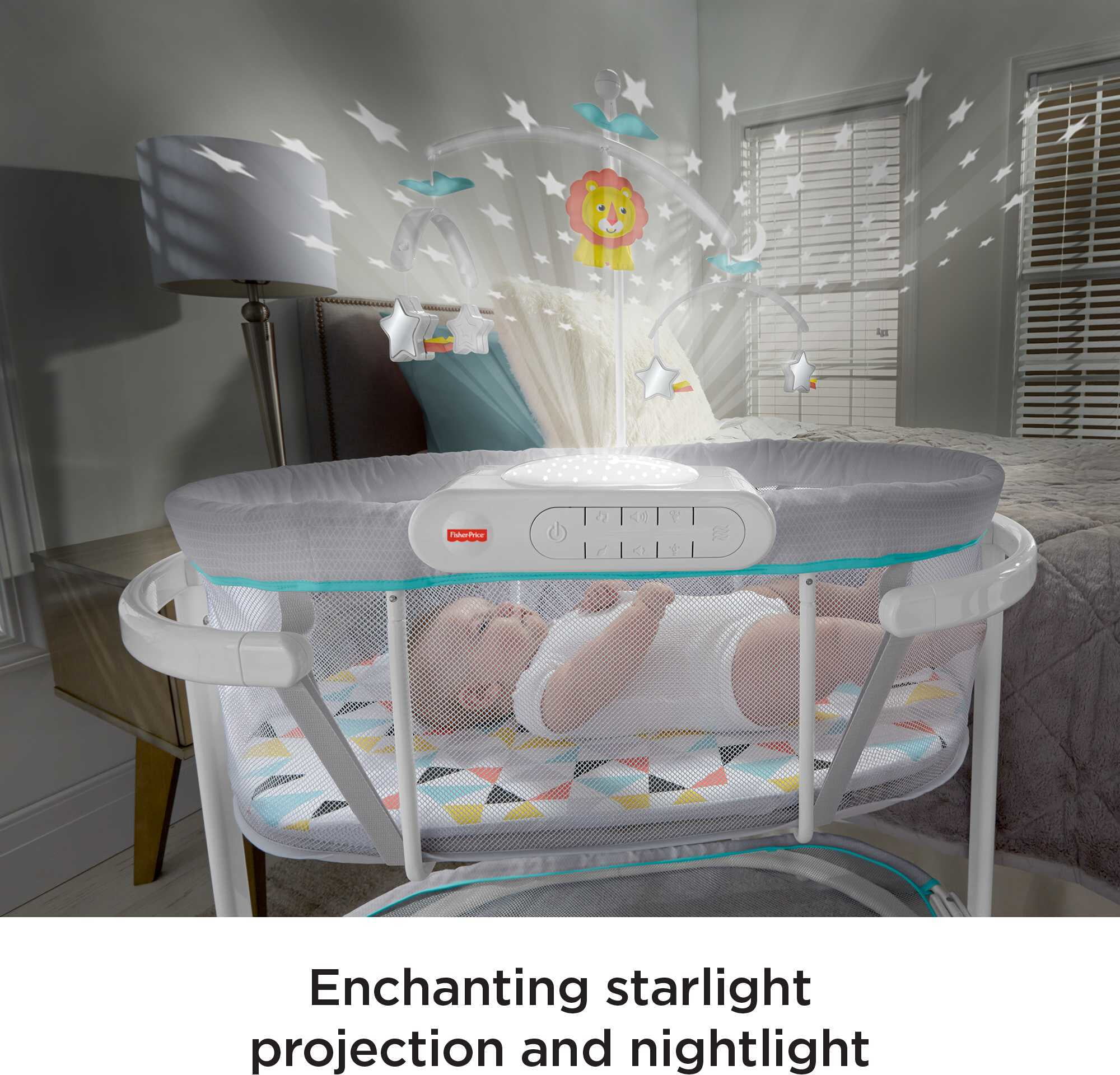 Fisher-Price Soothing Motions Bassinet for Baby with Lights Music & Vibrations. Windmill