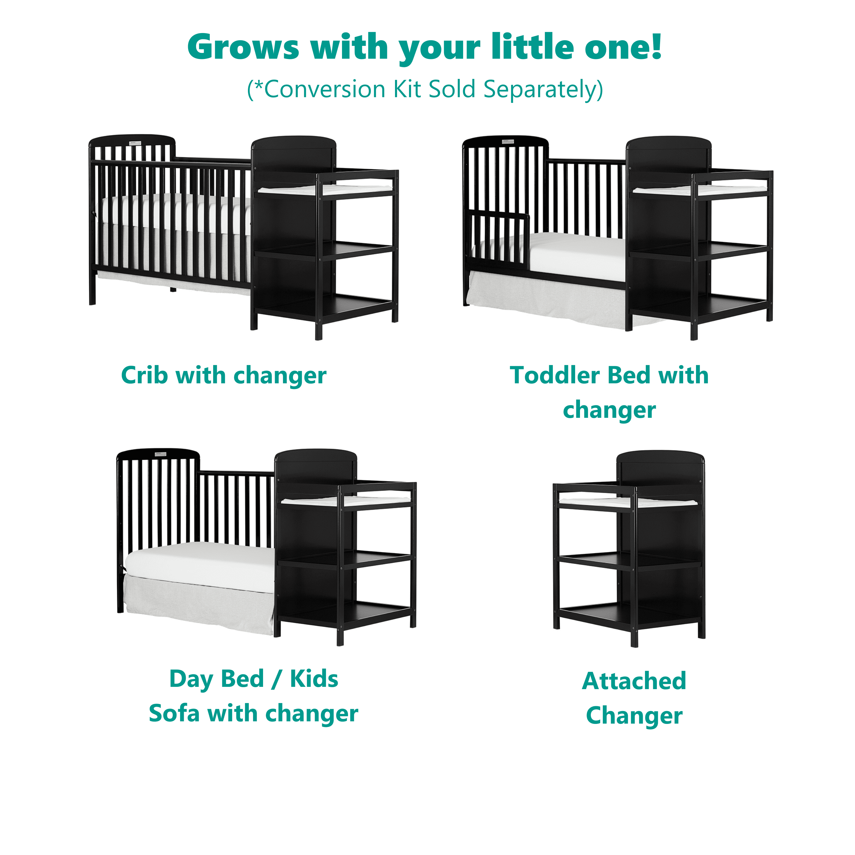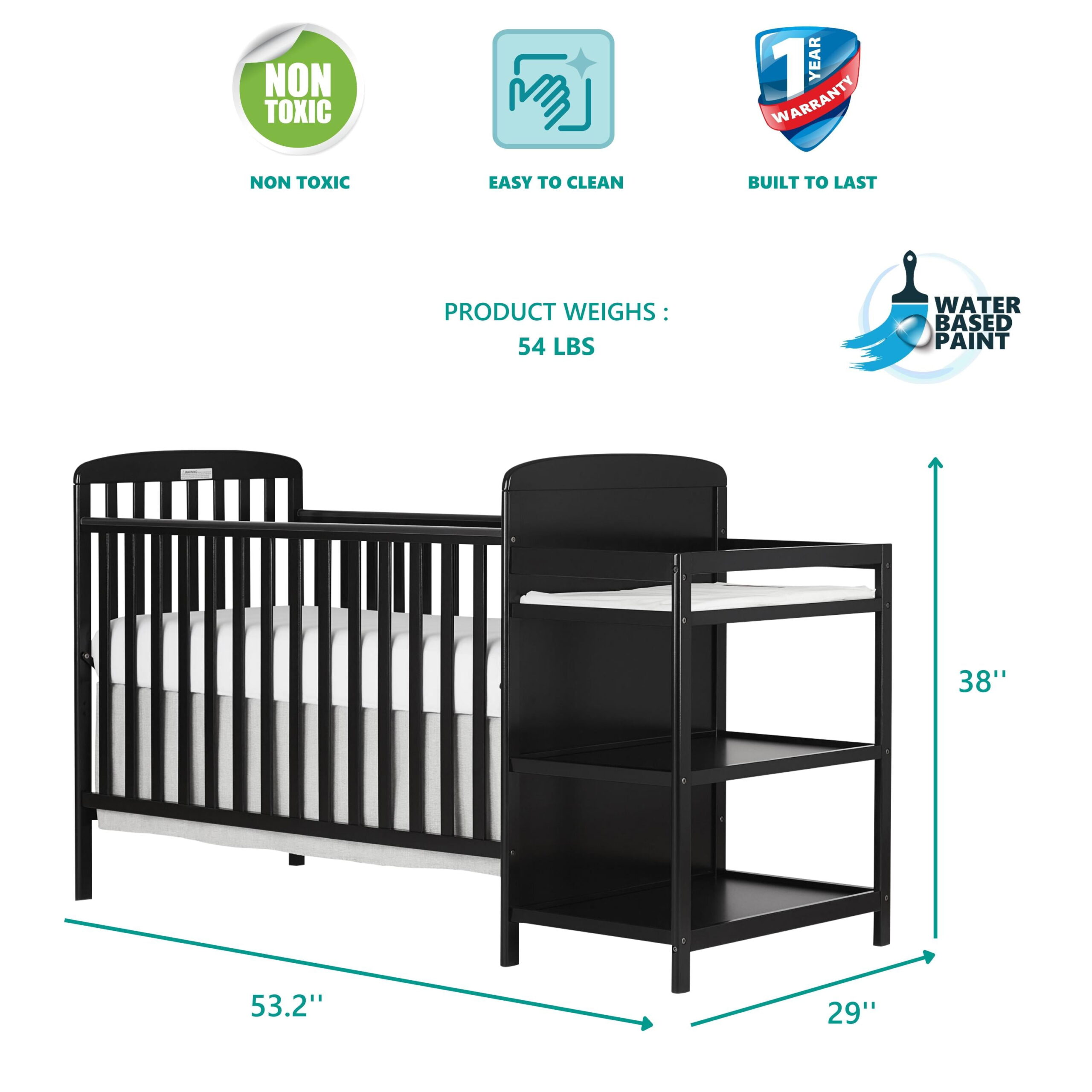 Dream On Me Anna 3-in-1 Full Size Crib and Changing Table Combo in Black