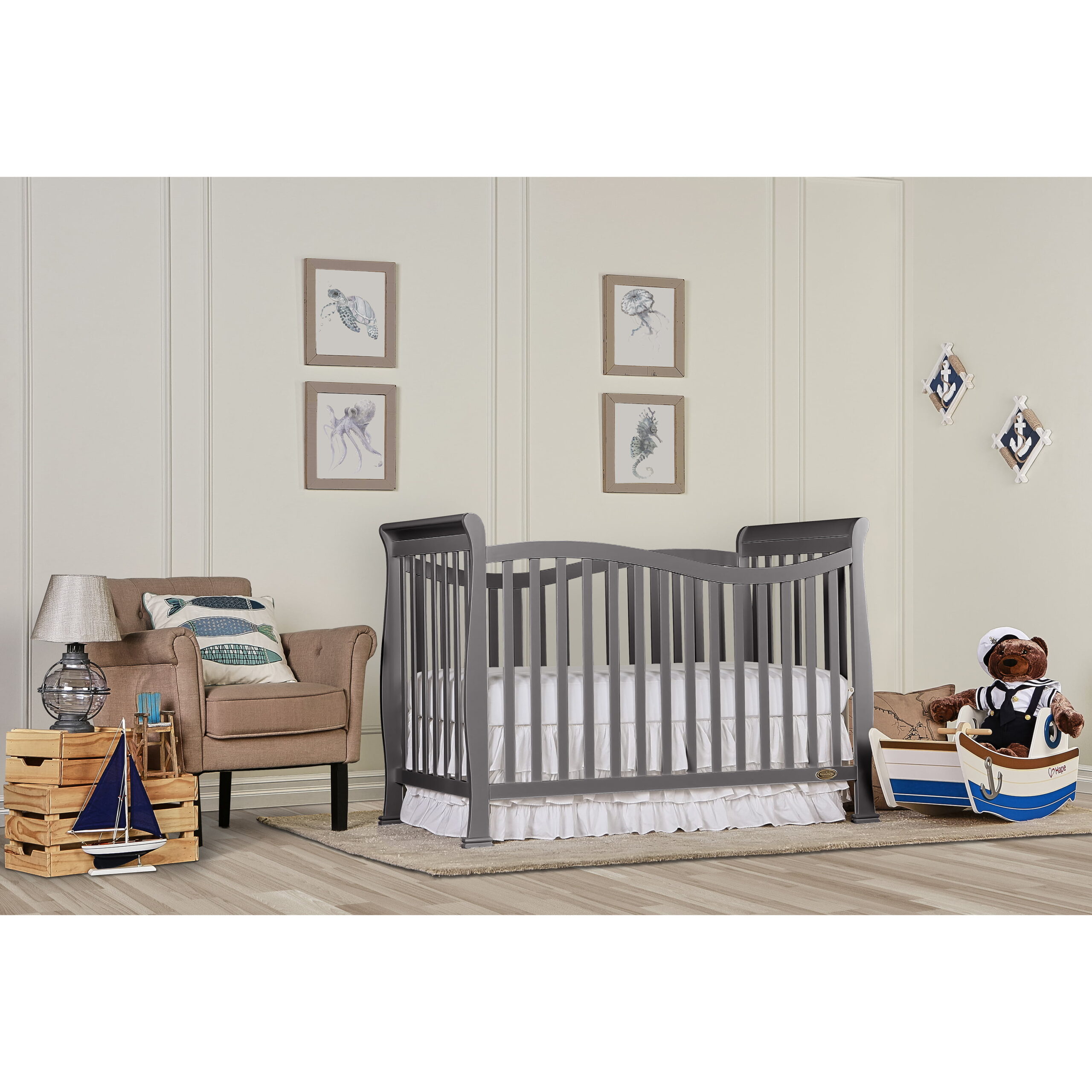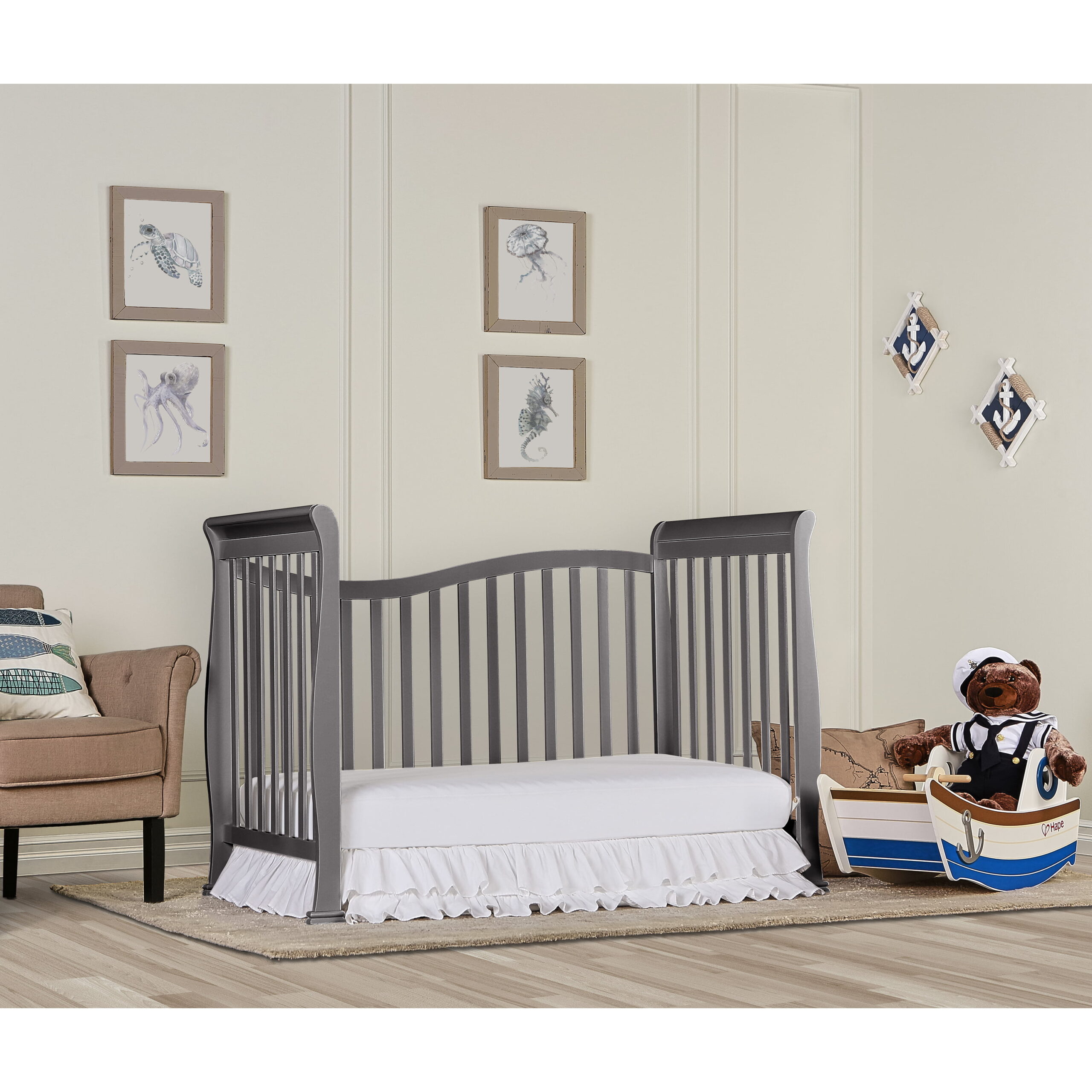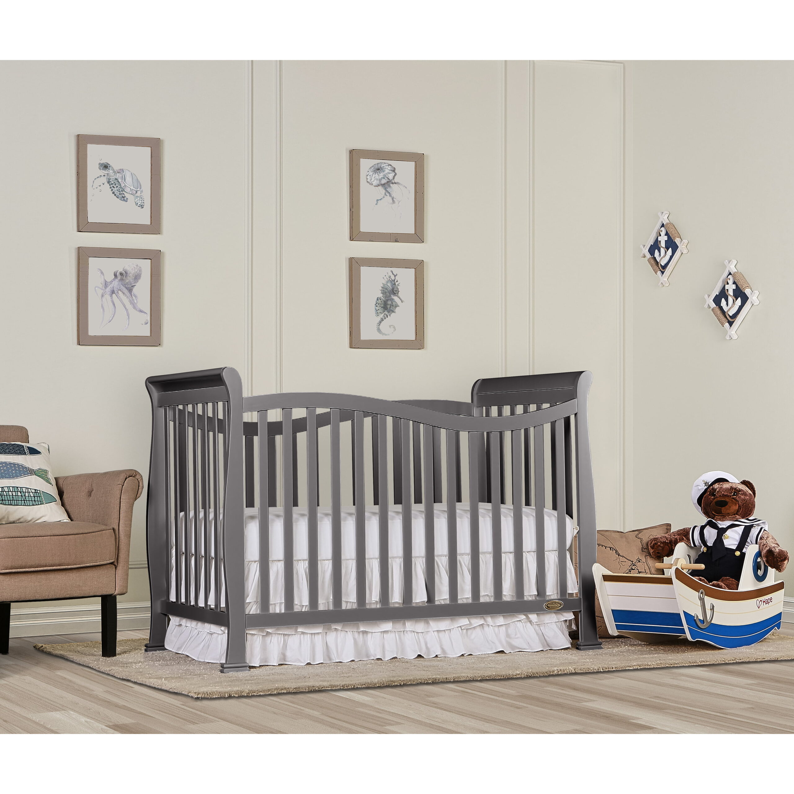 Dream On Me Violet 7 in 1 Convertible Life Style Crib in Storm Grey