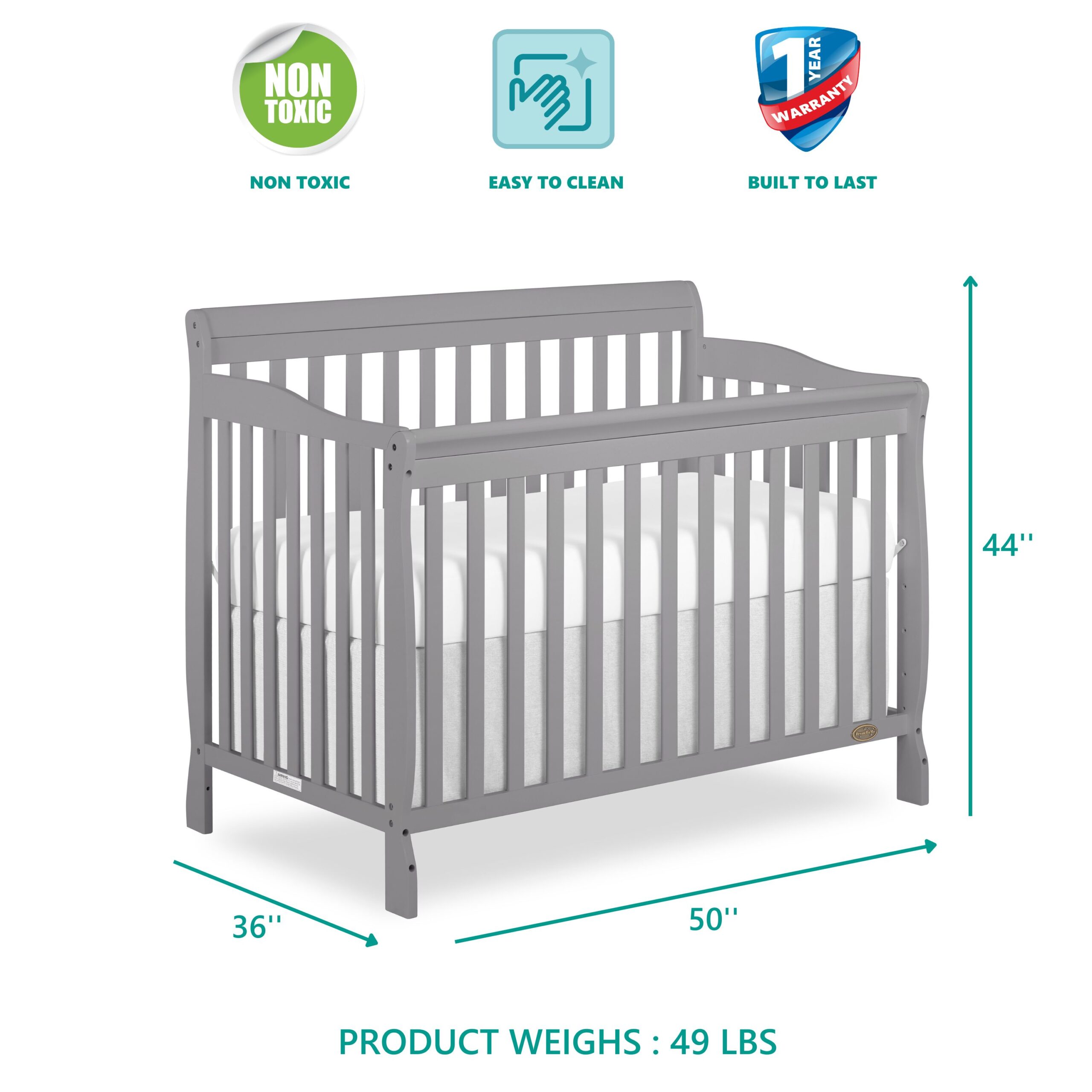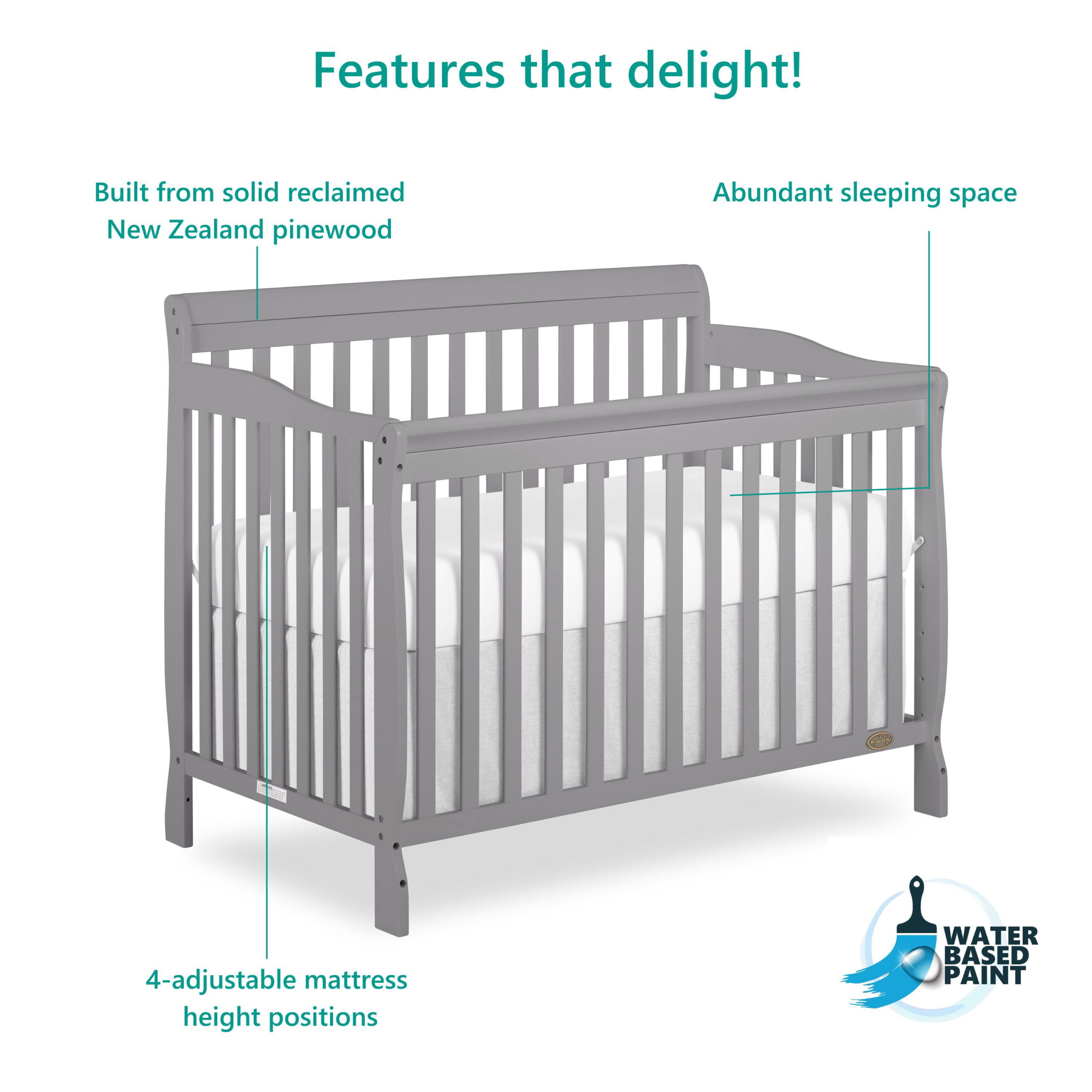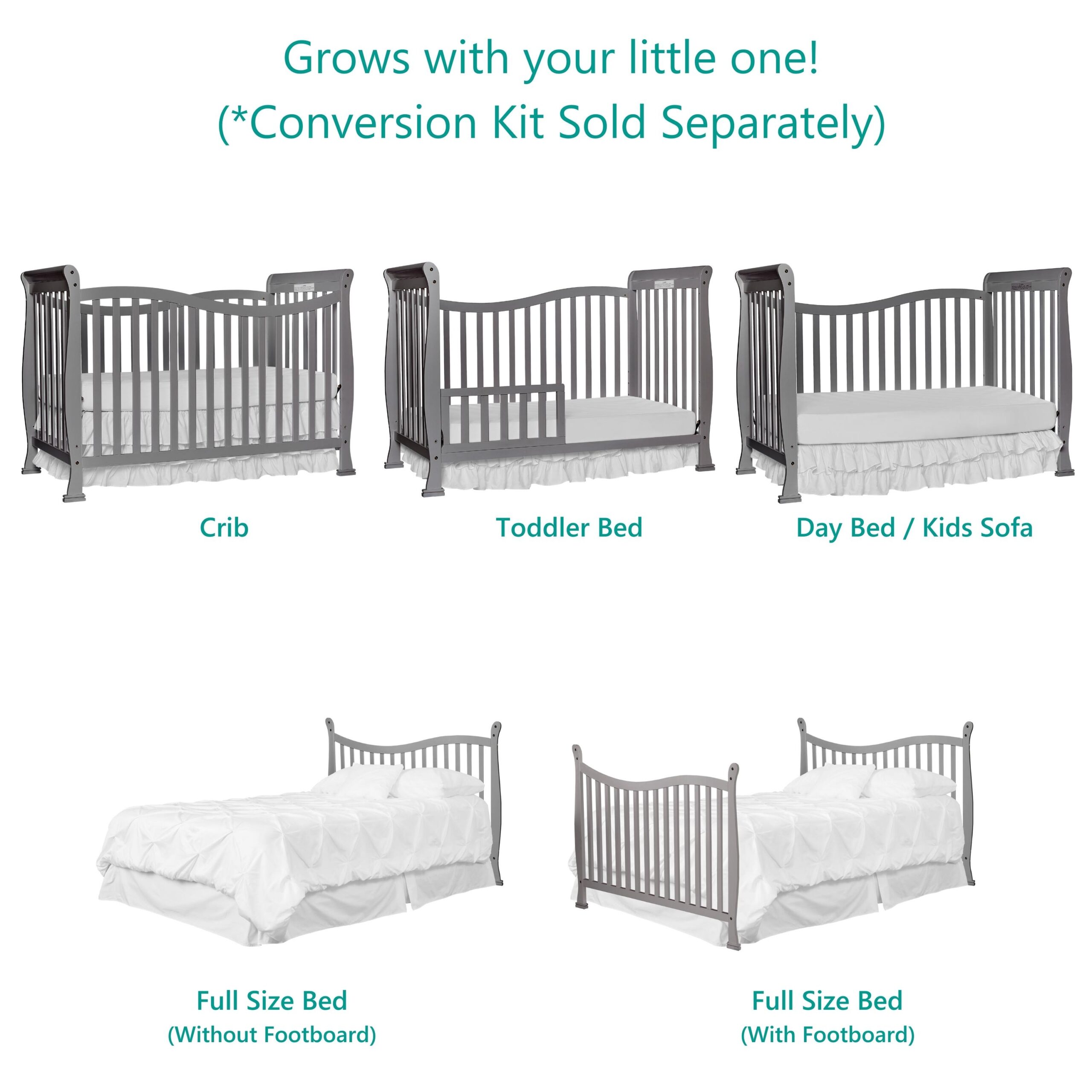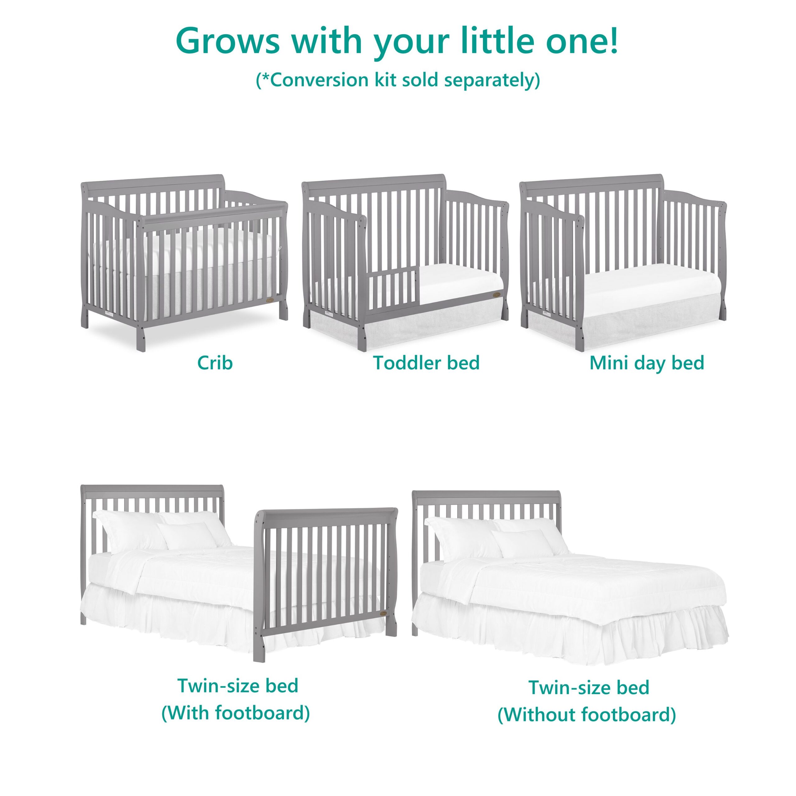 Dream On Me Violet 7 in 1 Convertible Life Style Crib in Storm Grey