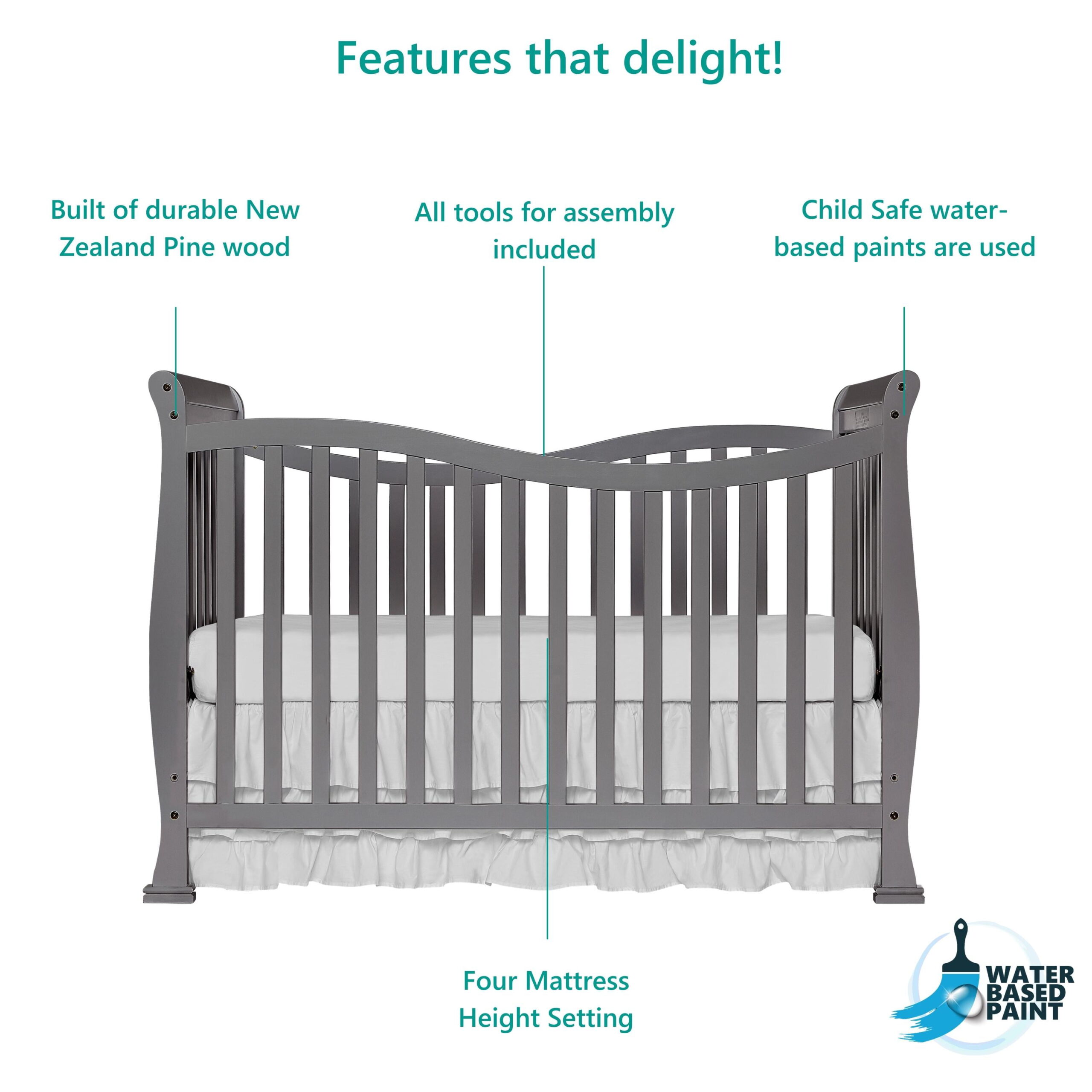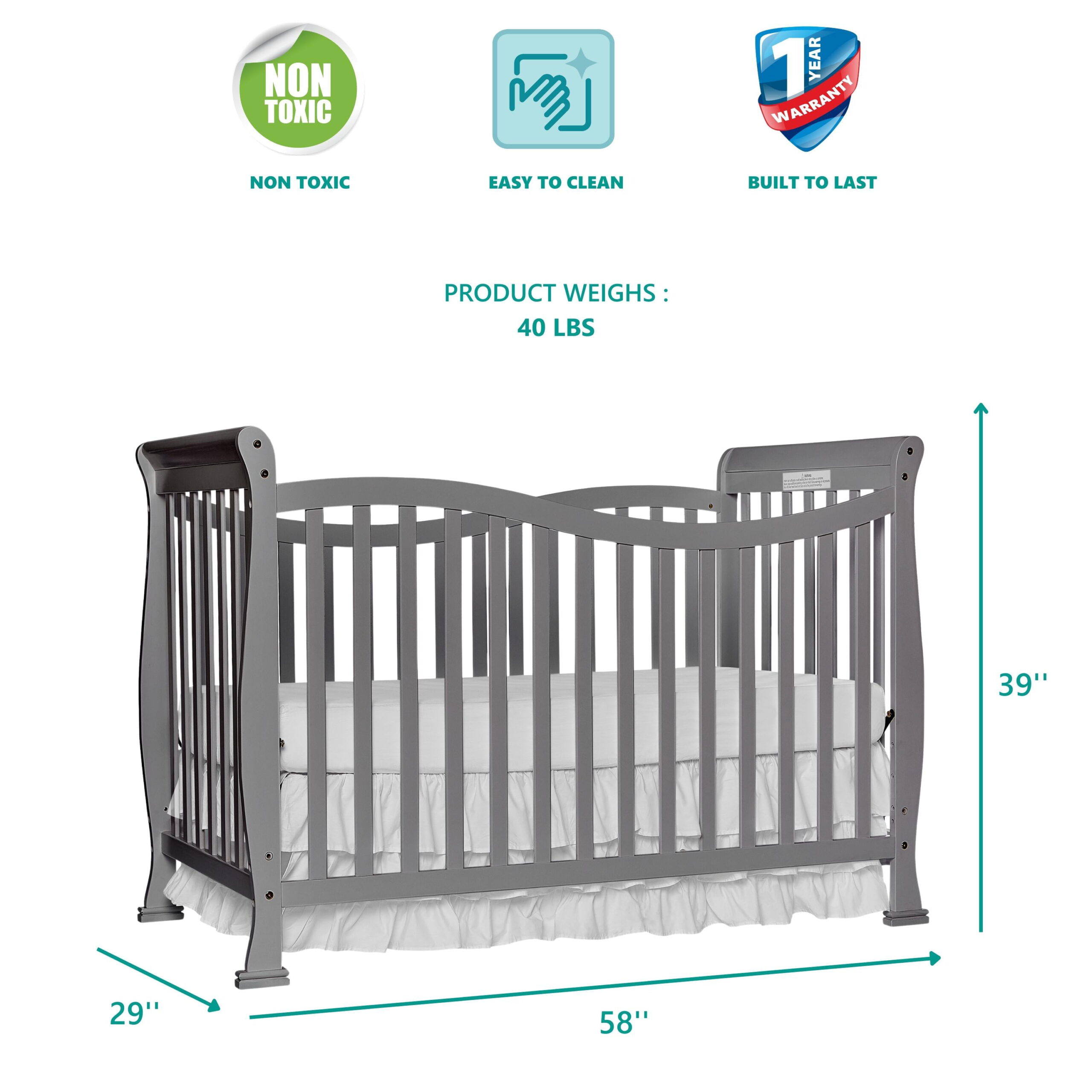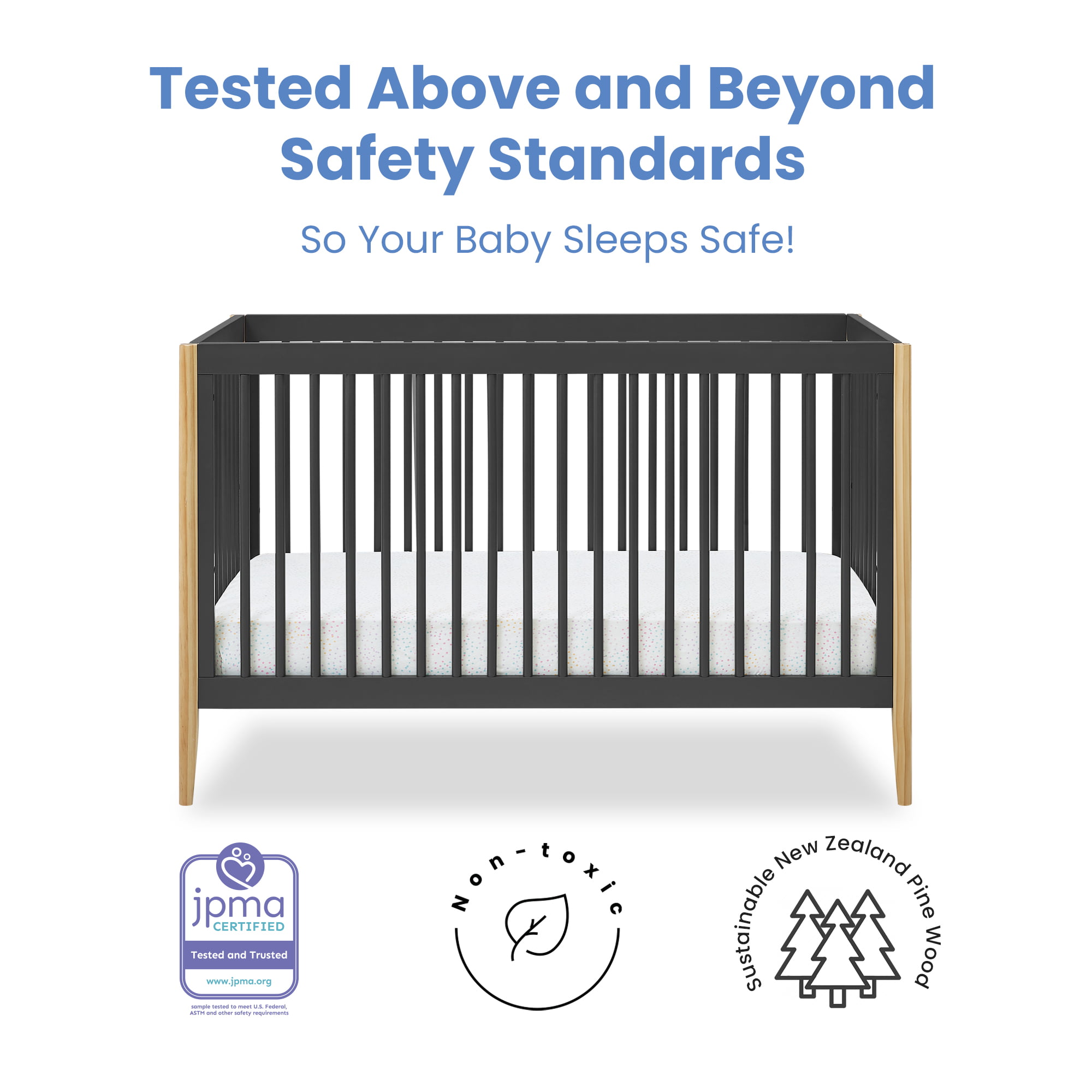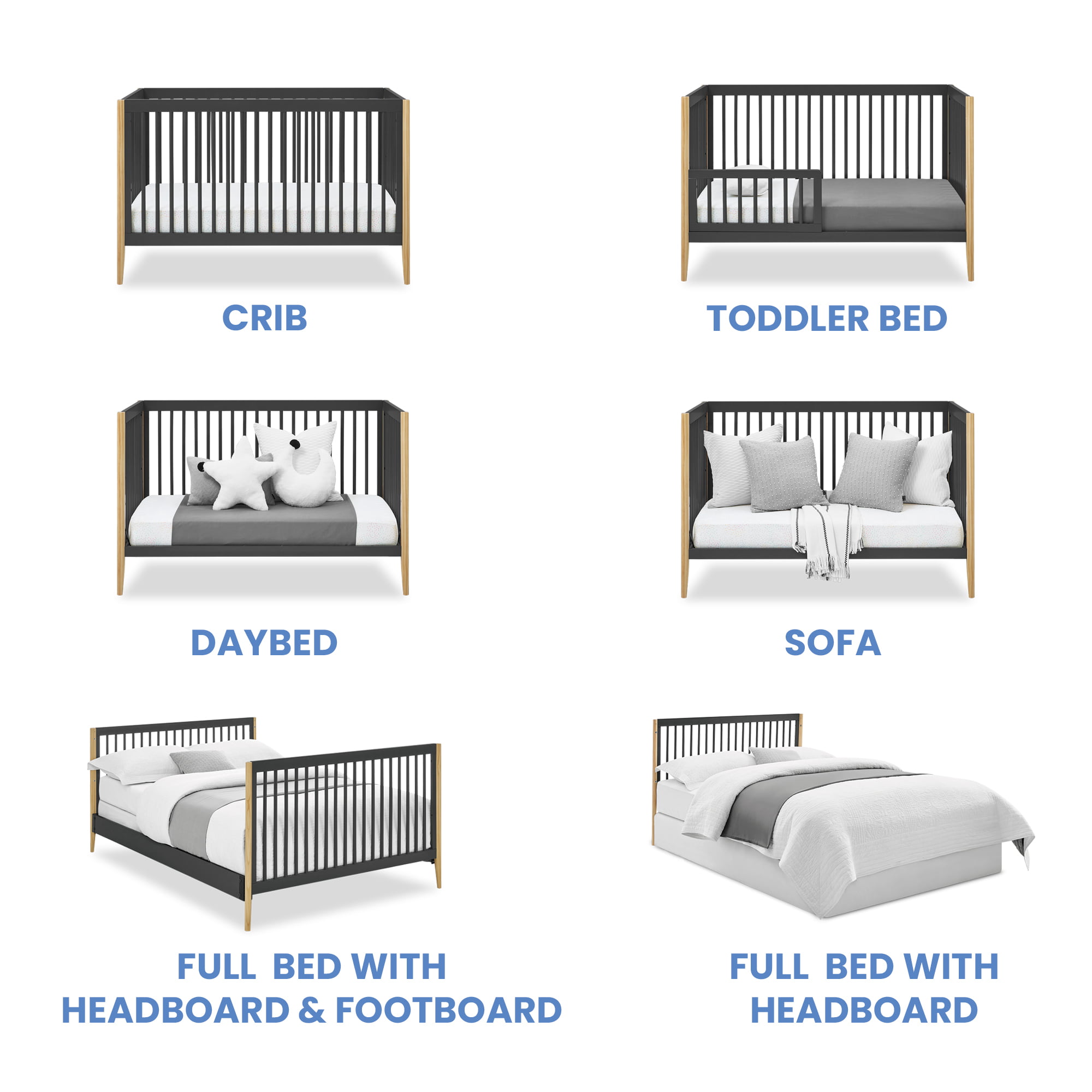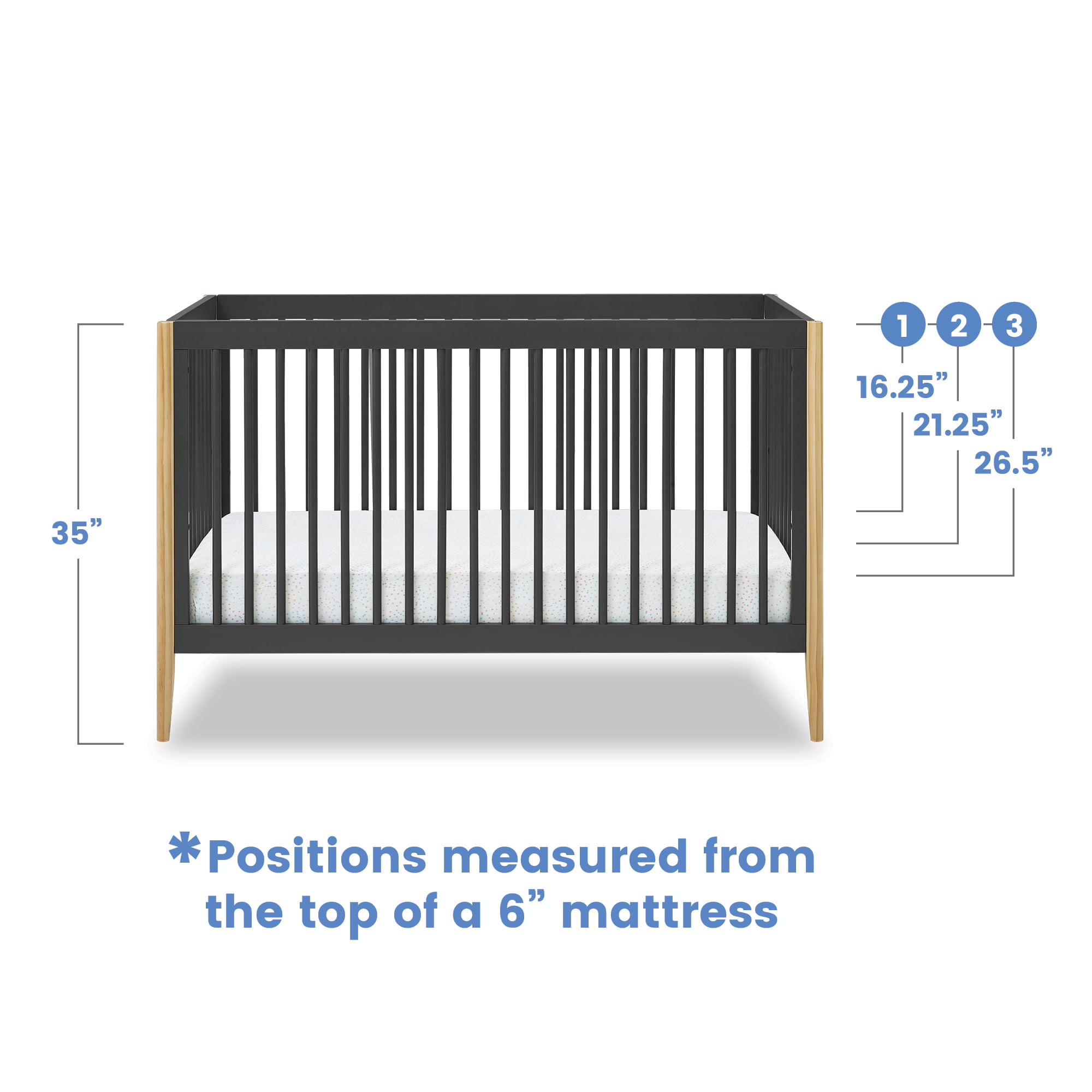 Delta Children Casey 6-in-1 Convertible Baby Crib. Charcoal Grey
