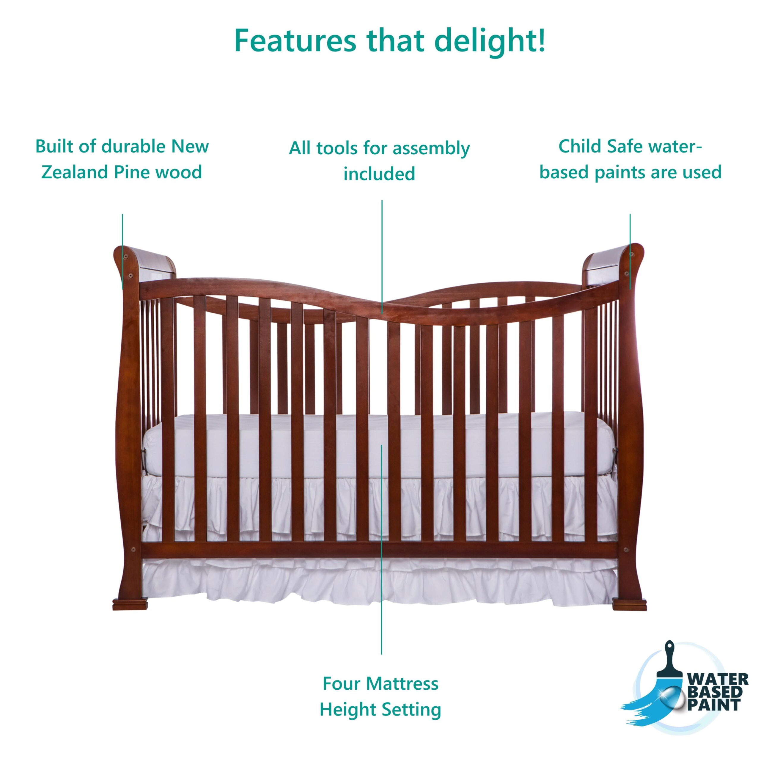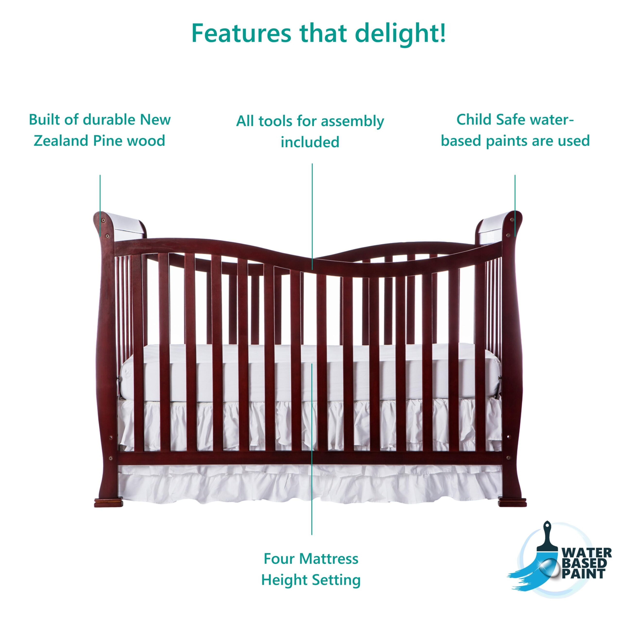 Delta Children Casey 6-in-1 Convertible Baby Crib. Bianca White/Natural
