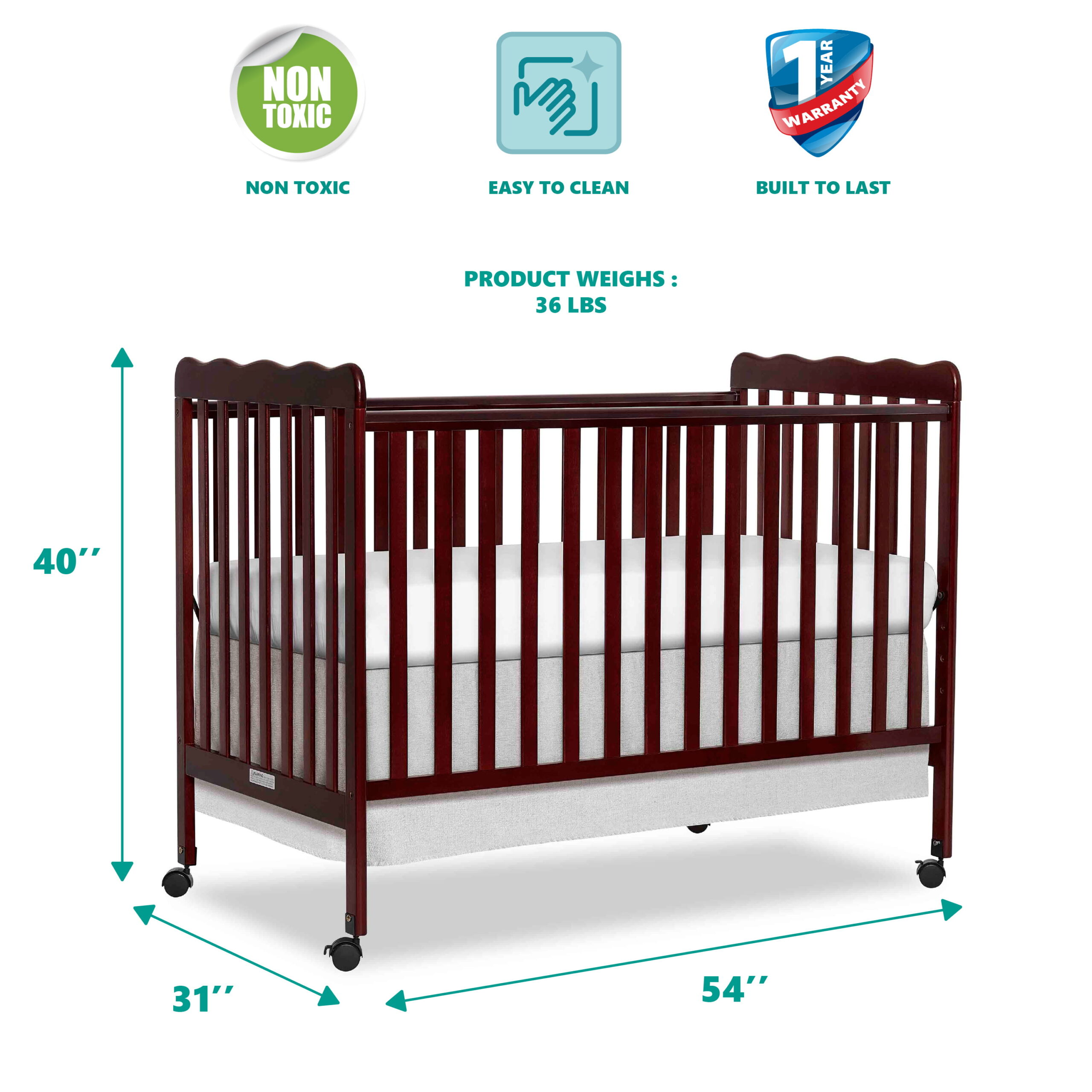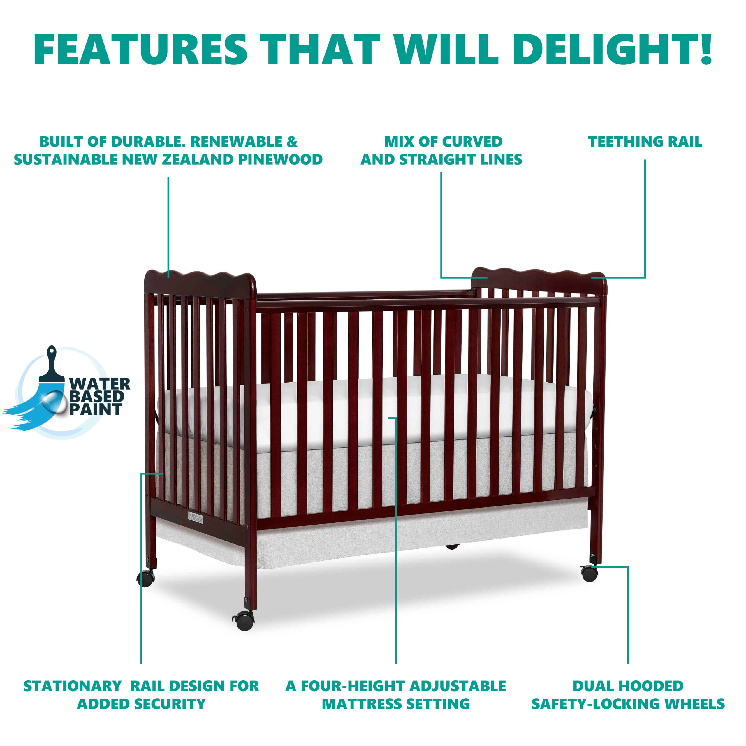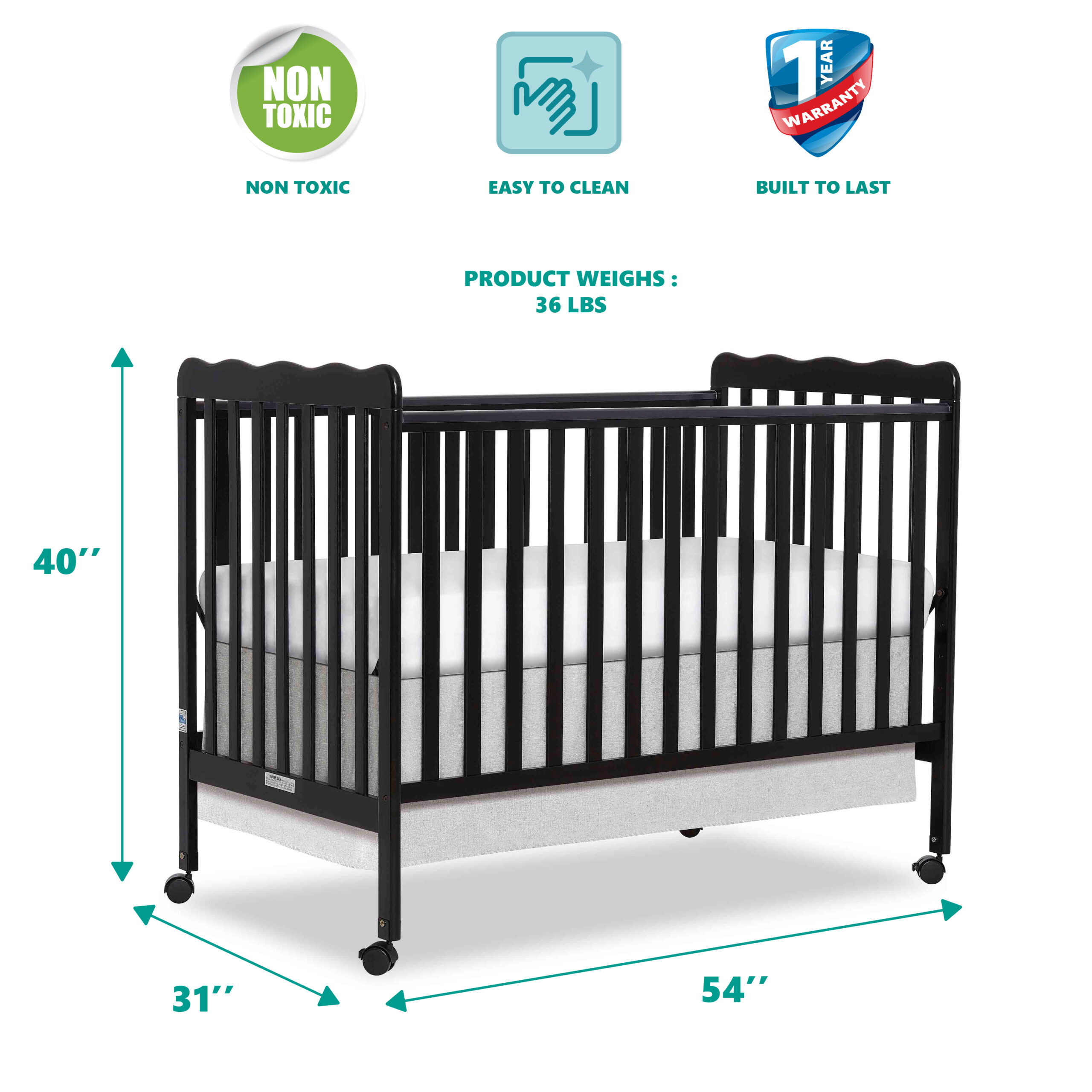 Oxford Baby North Bay 4-in-1 Convertible Crib. Espresso Brown. GREENGUARD Gold Certified. Wooden Crib