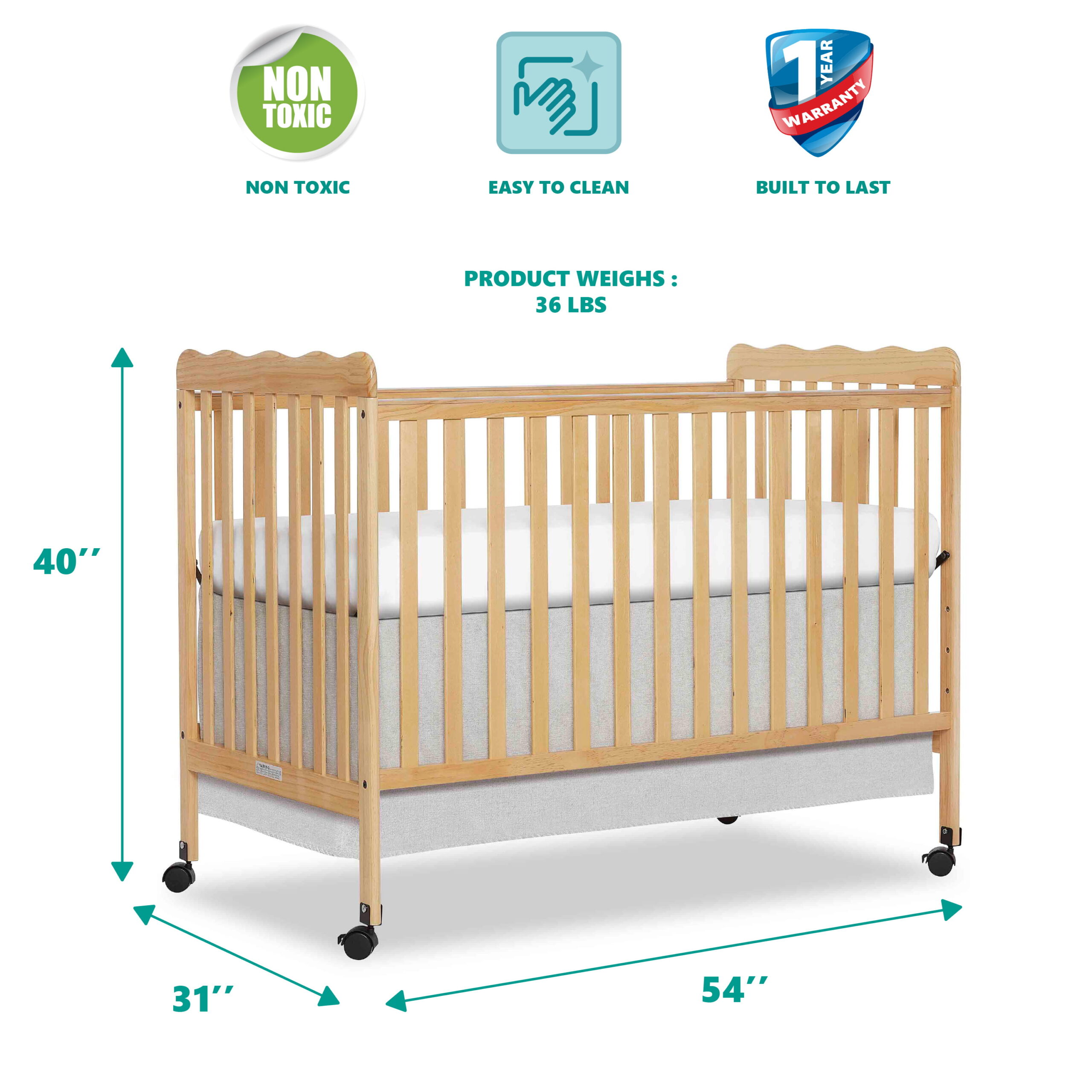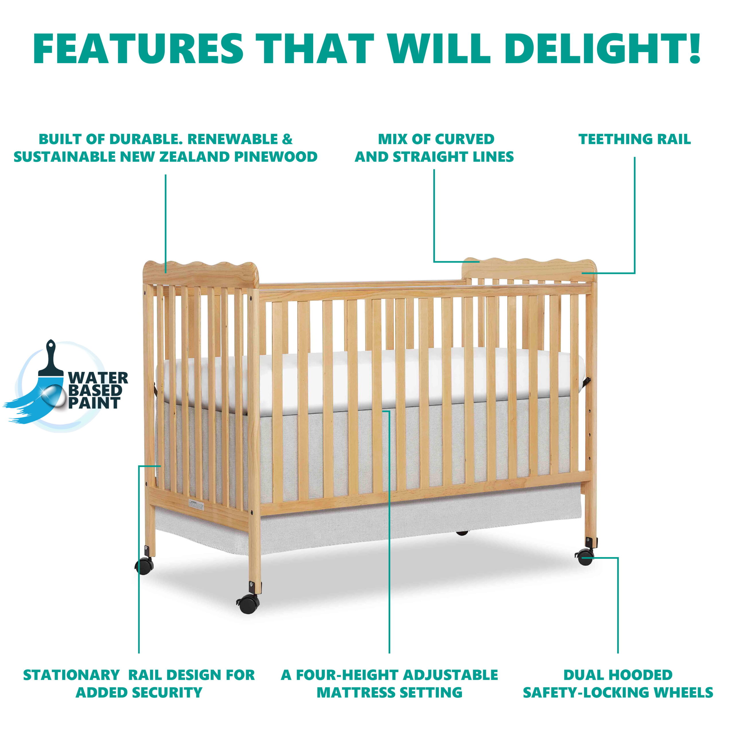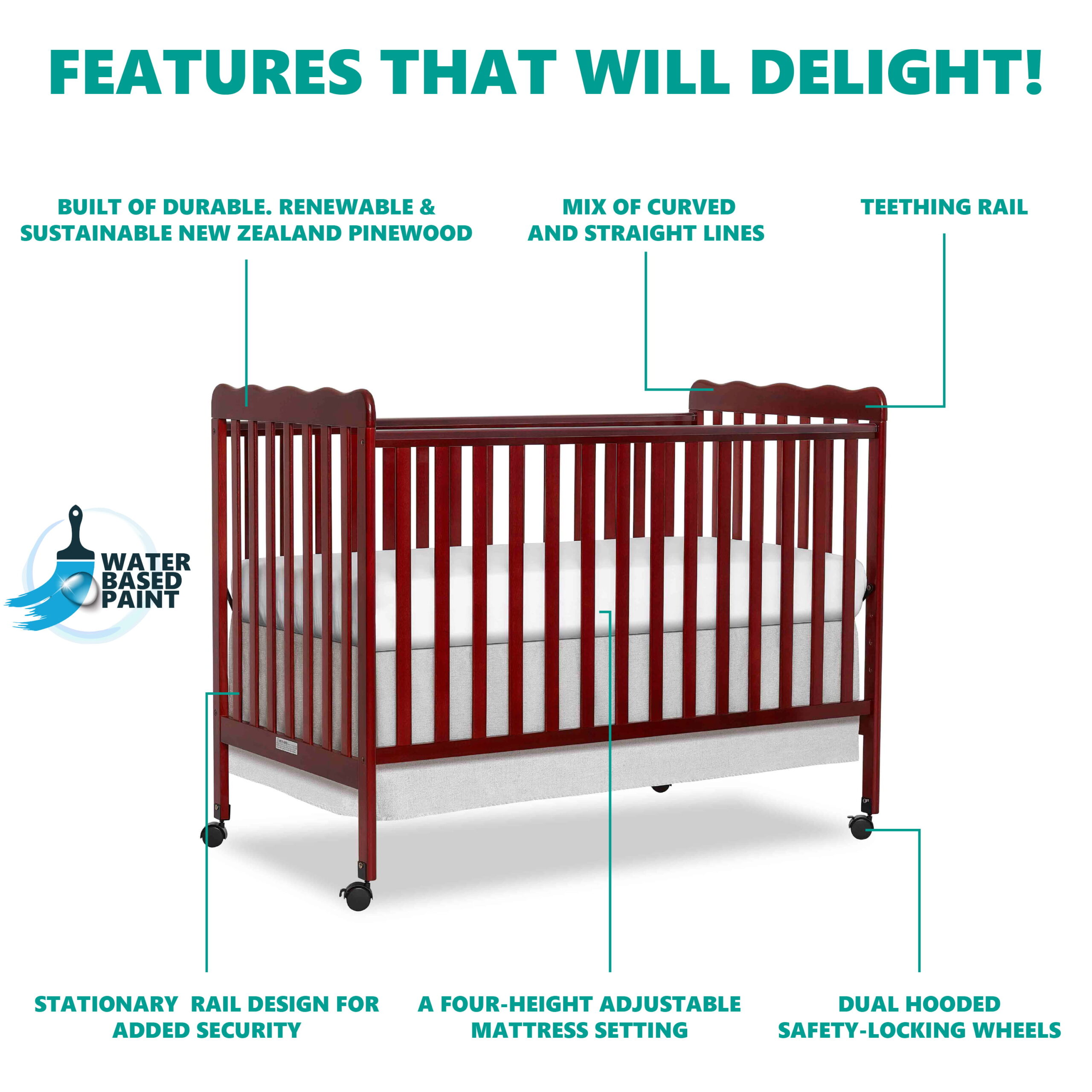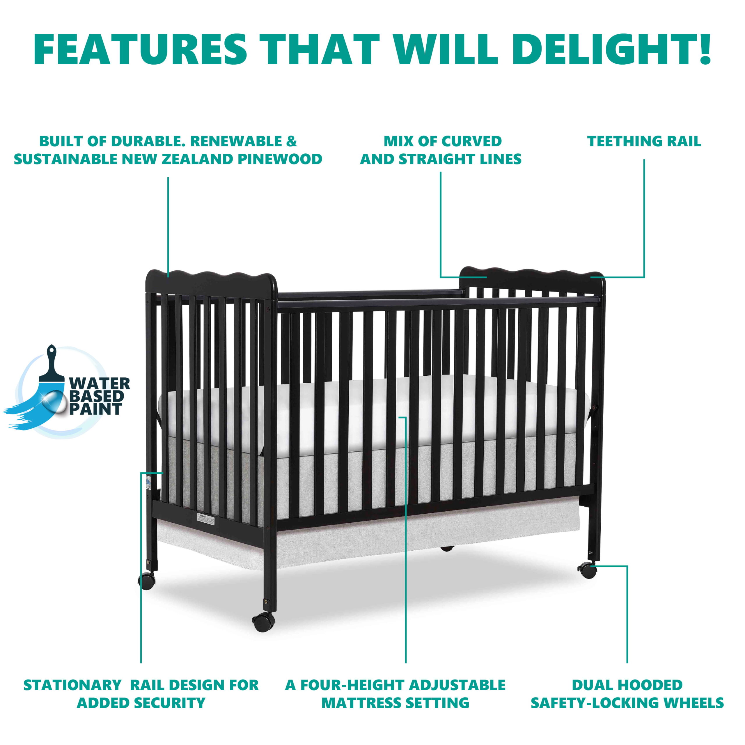 Oxford Baby North Bay 4-in-1 Convertible Crib. Espresso Brown. GREENGUARD Gold Certified. Wooden Crib