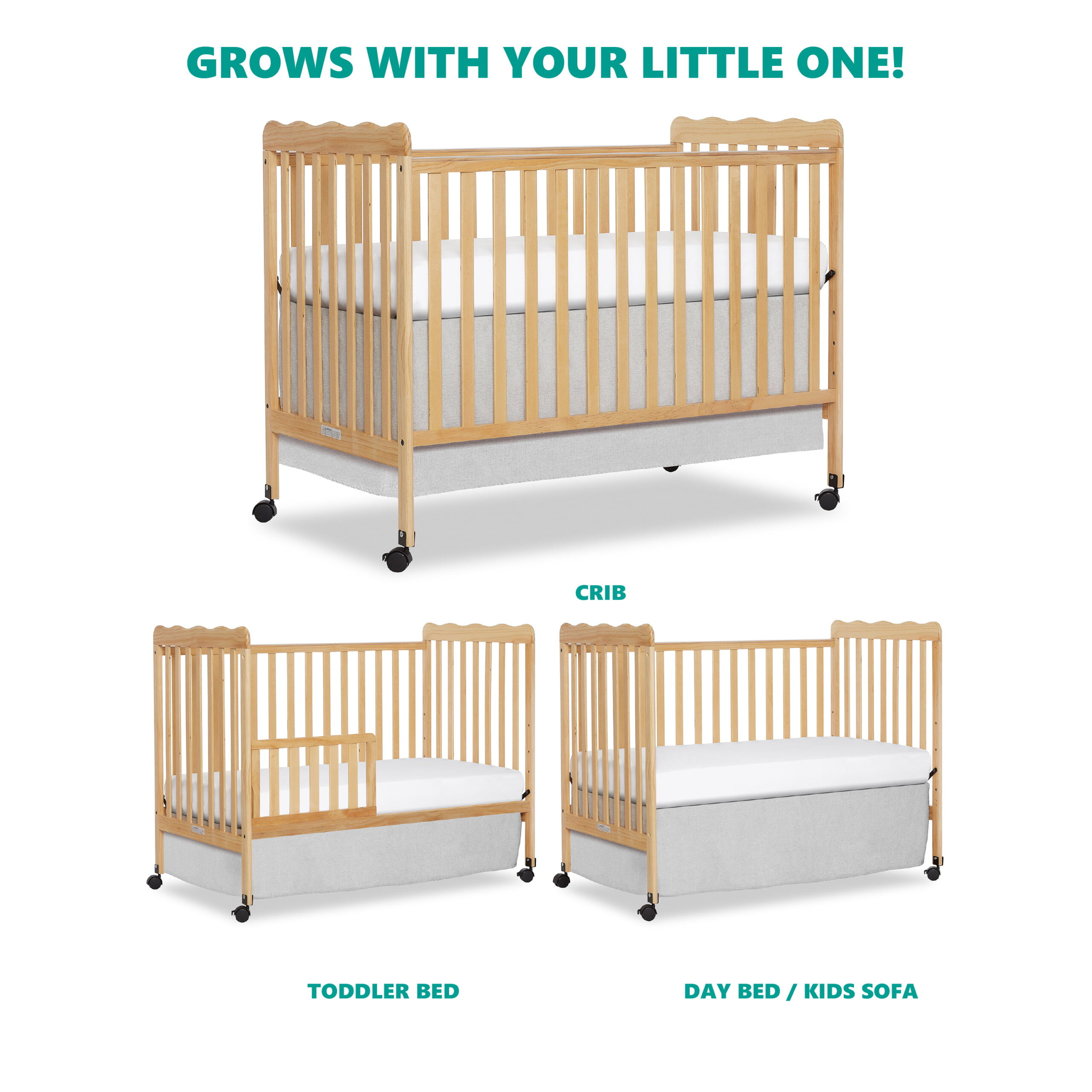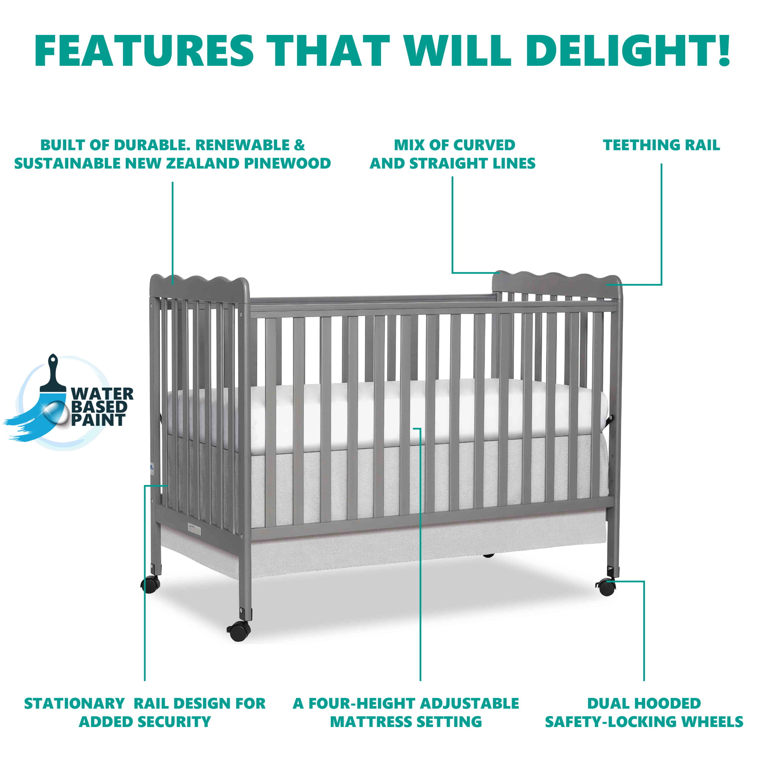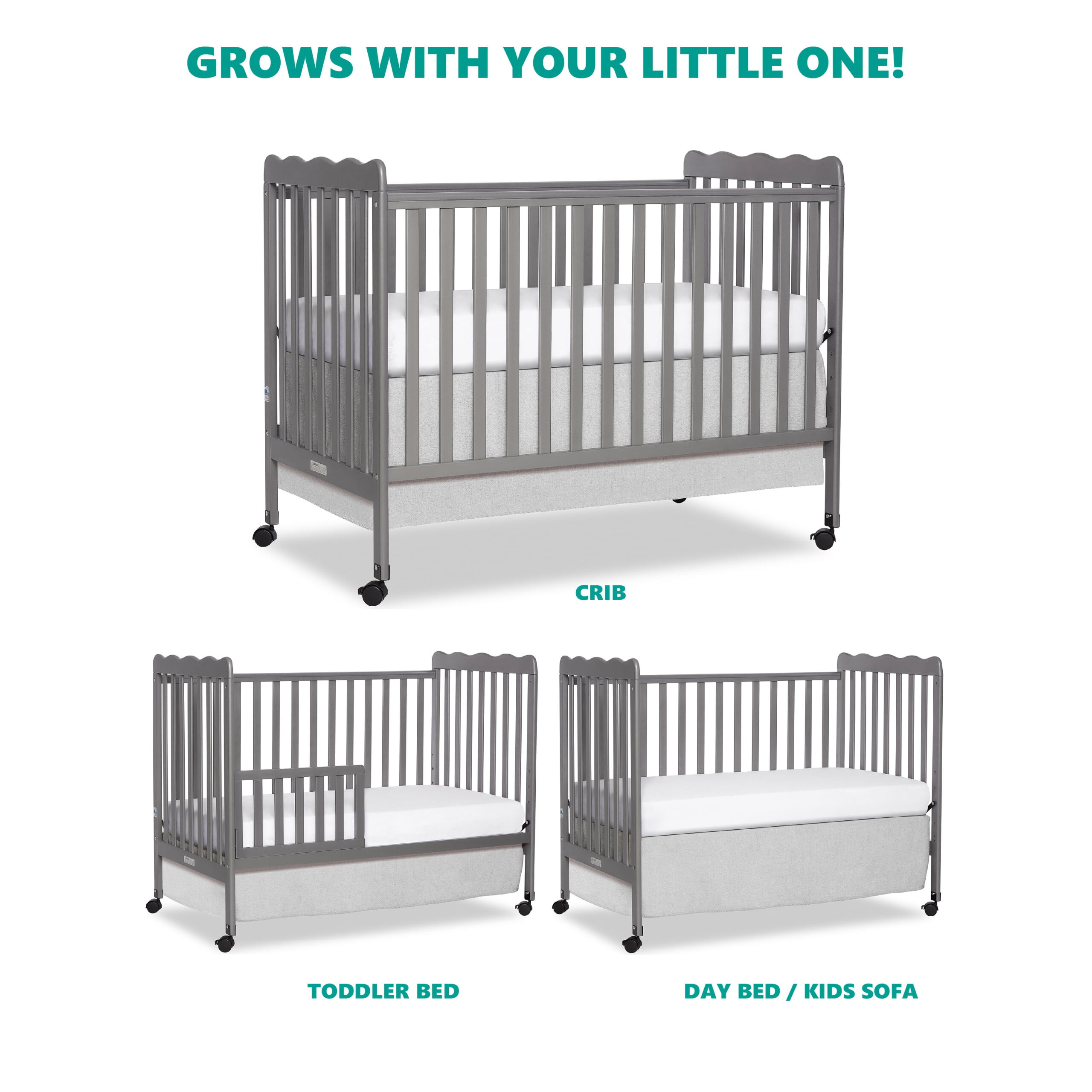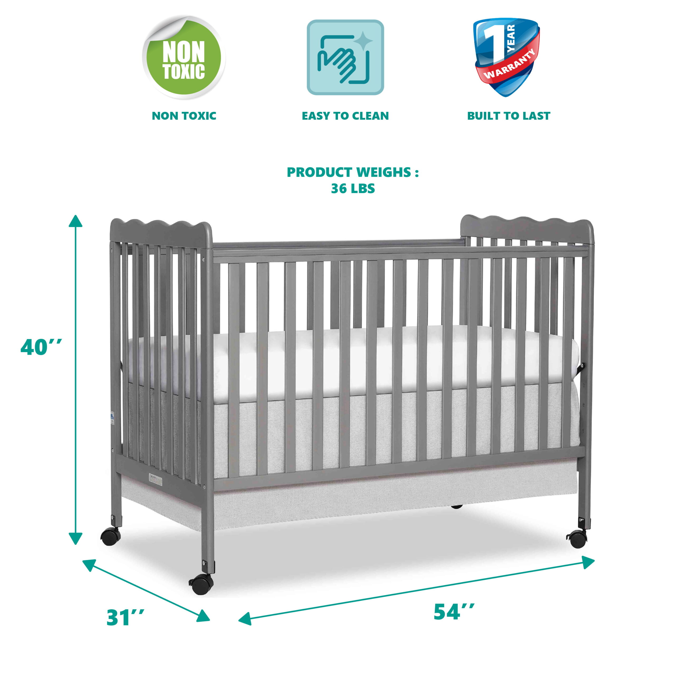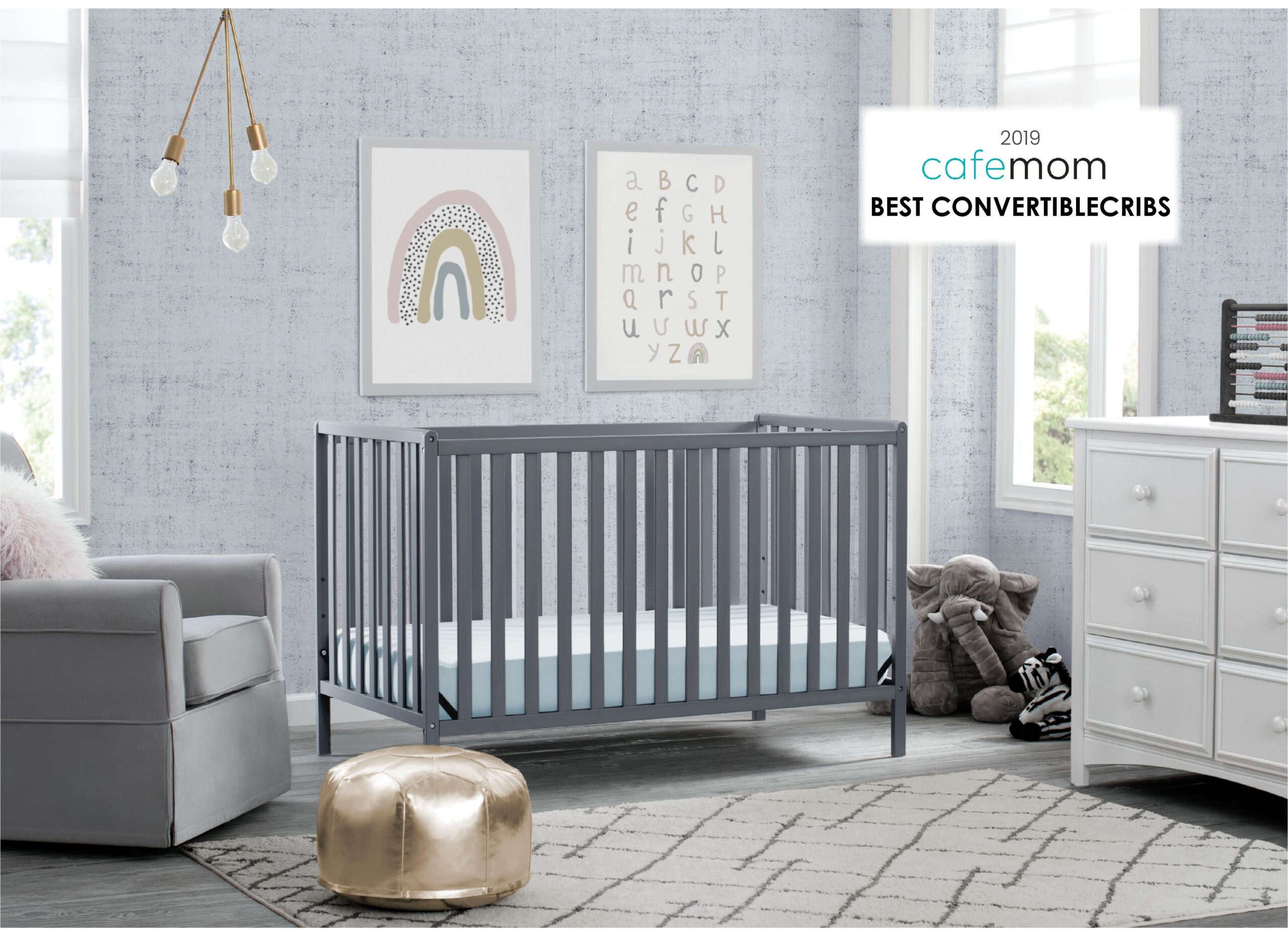 Oxford Baby North Bay 4-in-1 Convertible Crib. Dove Gray. GREENGUARD Gold Certified. Wooden Crib