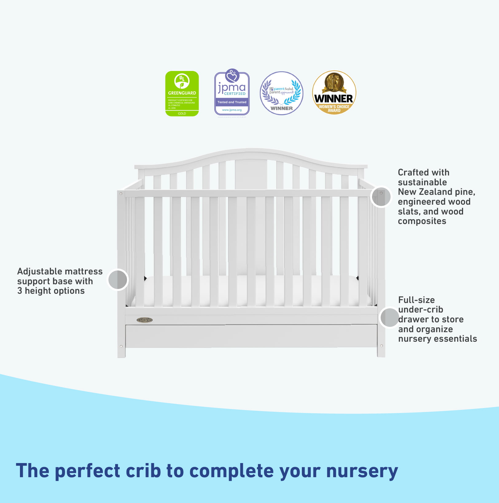 Graco Solano 5-in-1 Convertible Baby Crib with Drawer. White