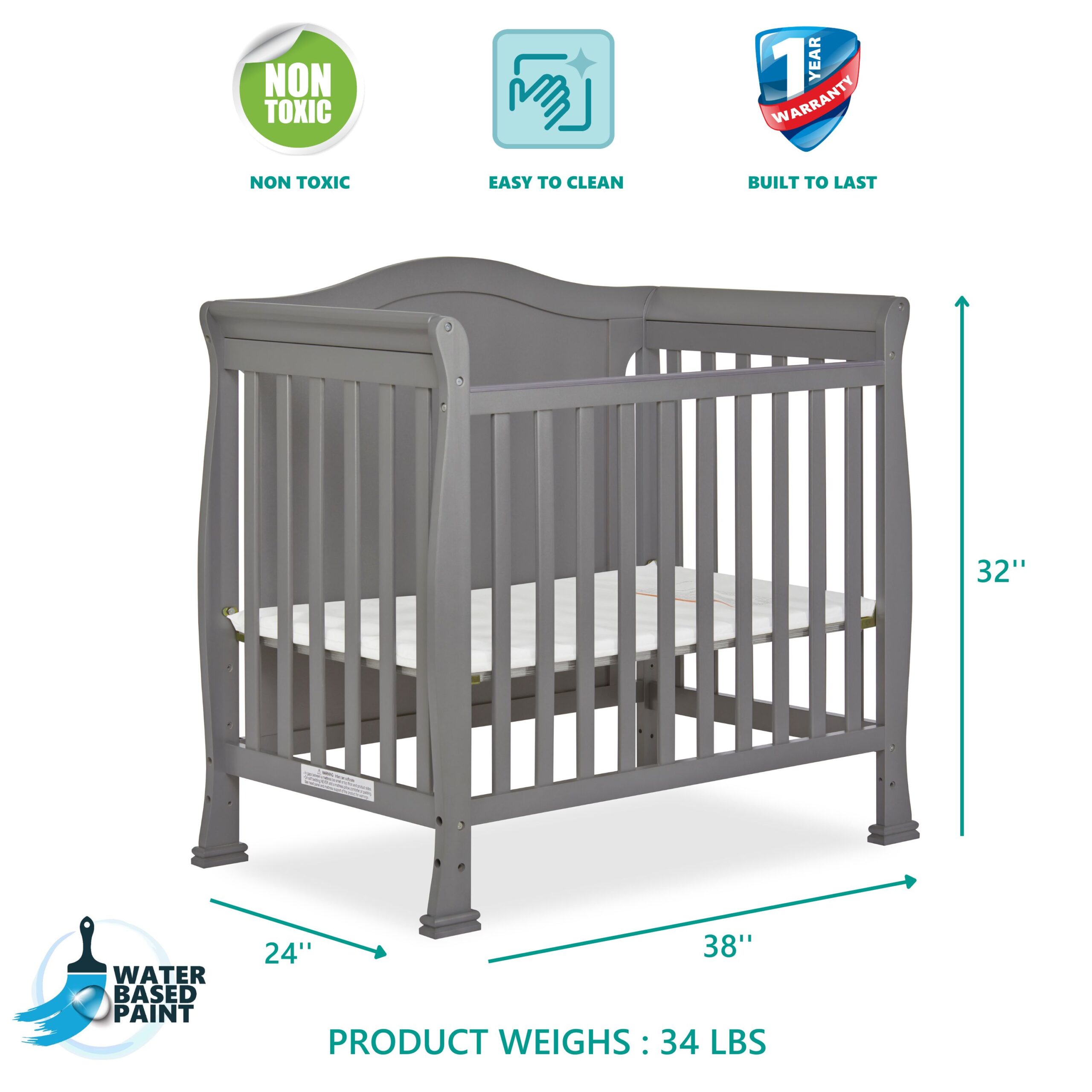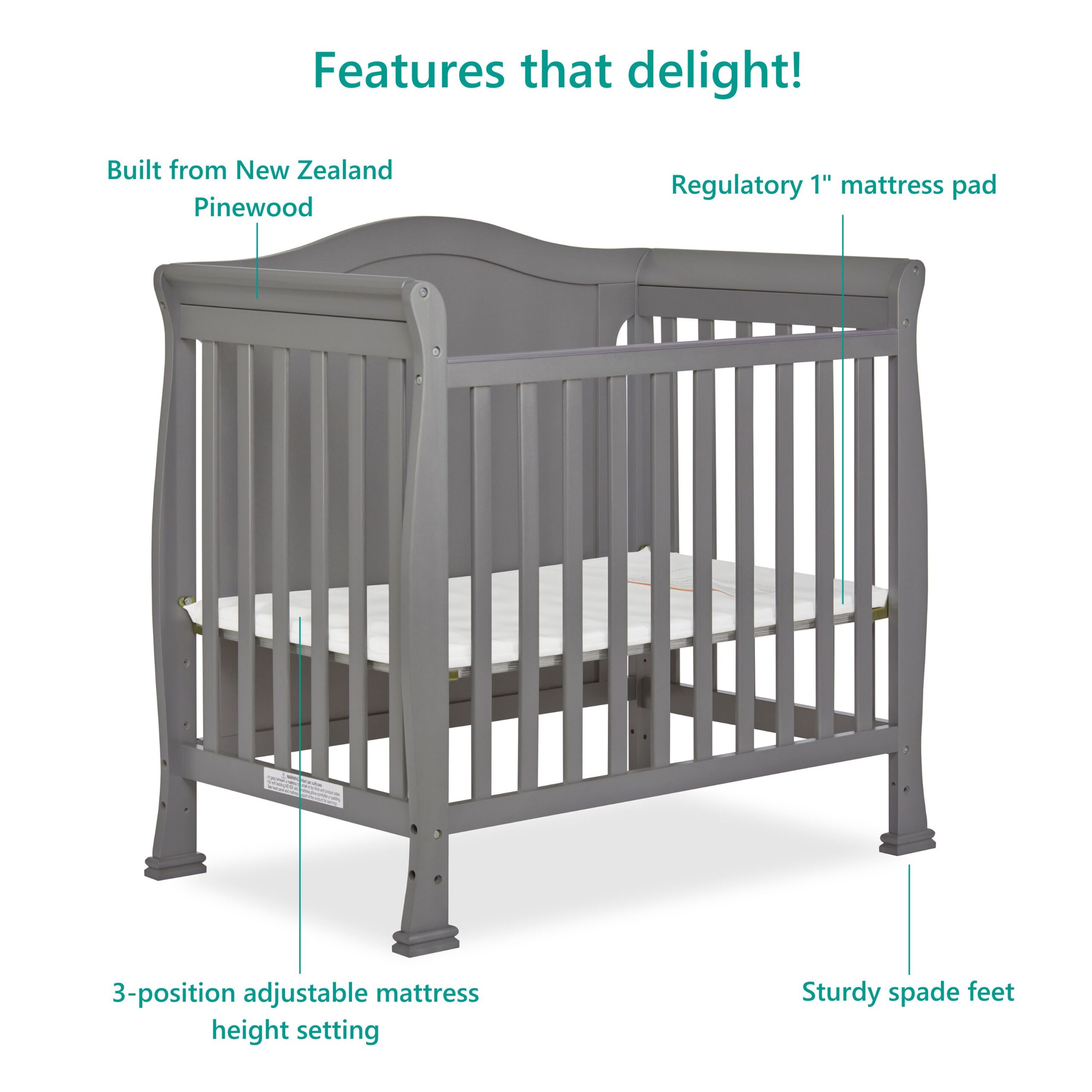 Dream On Me Naples 4-in-1 Convertible Mini Crib. Storm Grey