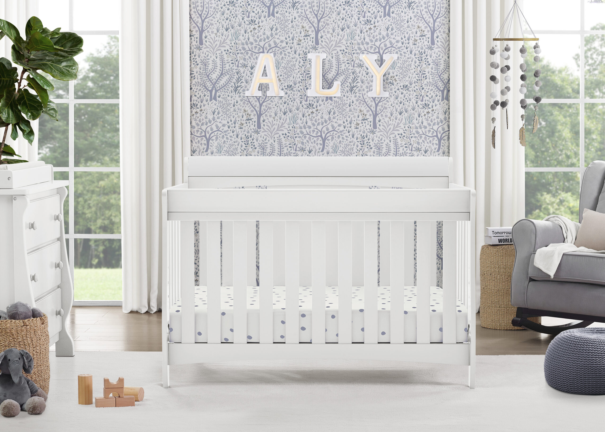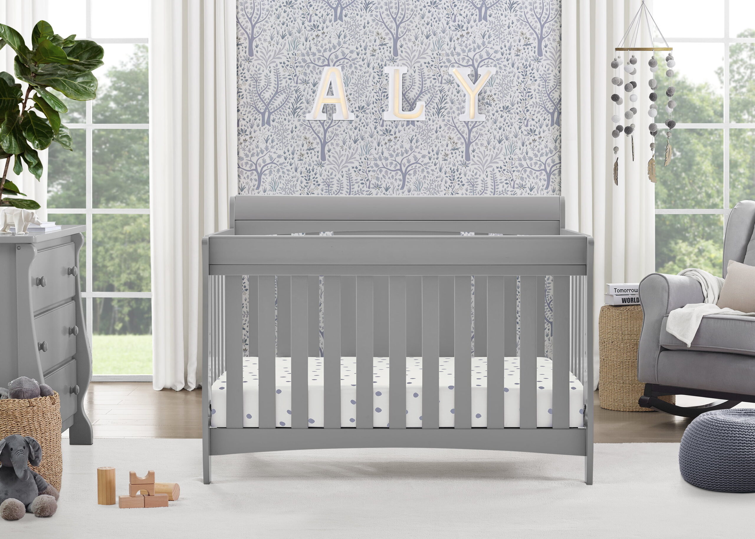 Delta Children Tribeca 4-in-1 Convertible Baby Crib. Greenguard Gold Certified. White/Grey