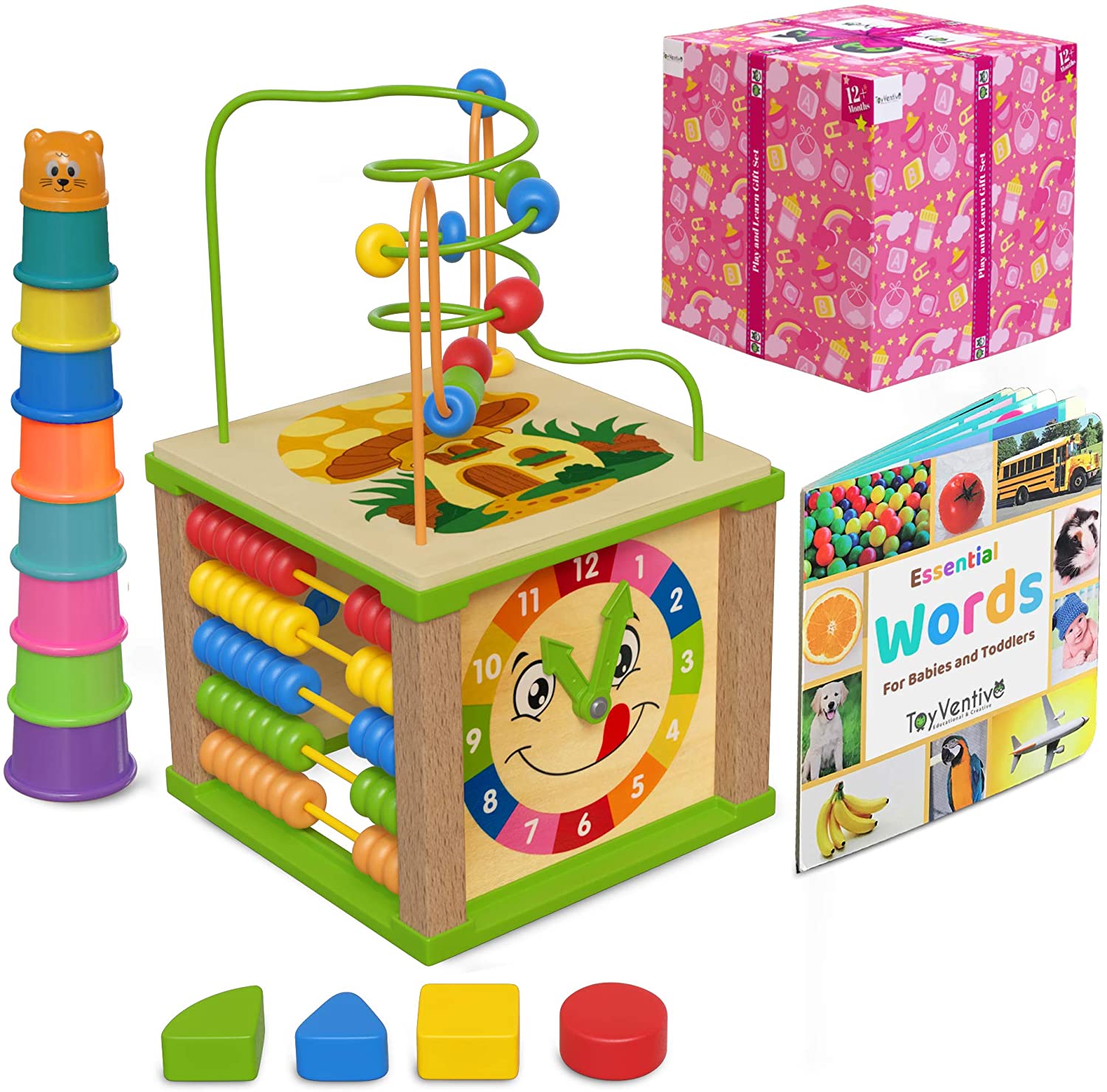 TOYVENTIVE Wooden Kids Baby Activity Cube. Toddler Educational. Toys 12-18 Months