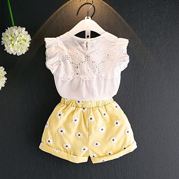 Brilliantme Toddler Kids Summer 2Pcs Baby Girl Off Shoulder Lace Flower
