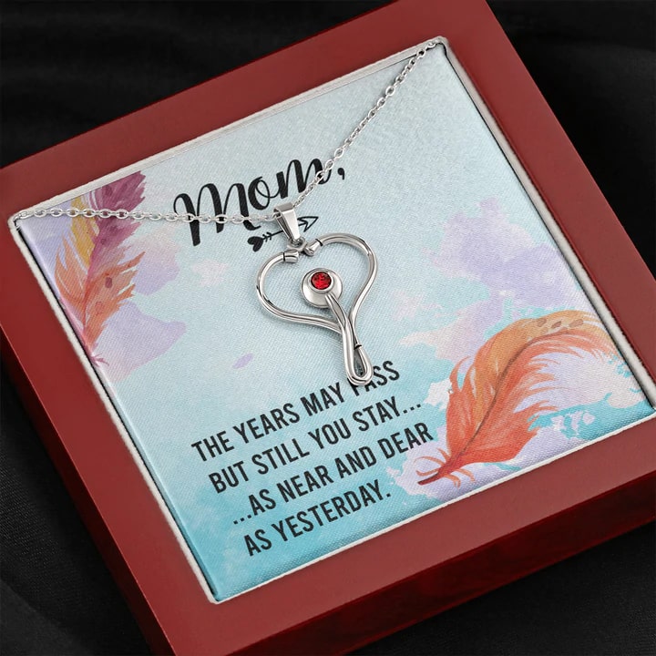 Mom Necklace – Necklace Embellished with Red Swarovski Crystal. Mother's Day Gifts