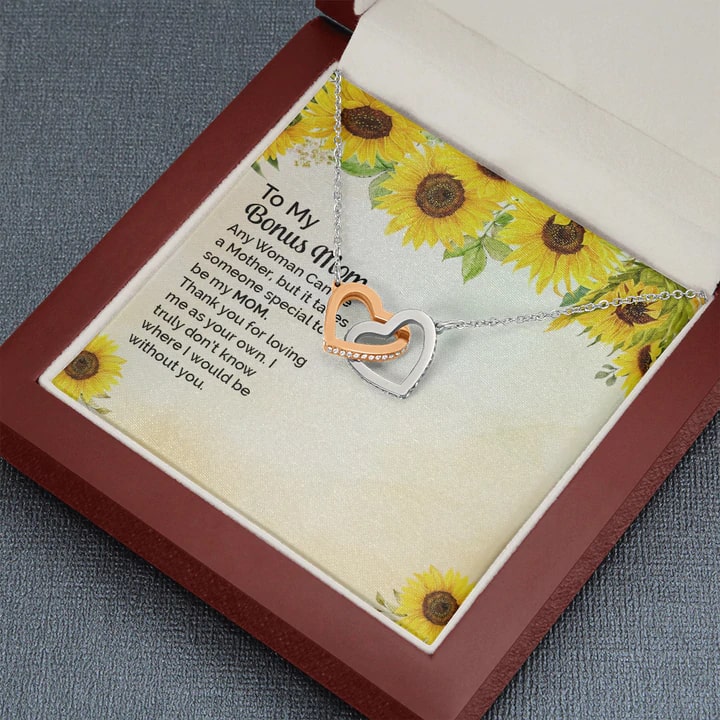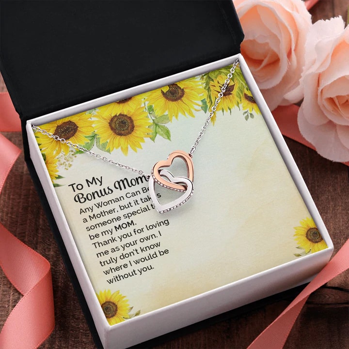 To My Bonus Mom – Interlocking Hearts Necklace. Mother's Day Gifts