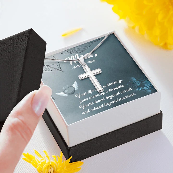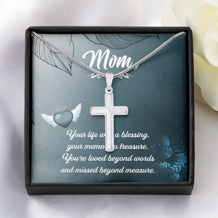 Mom Necklace – White Gold Cross Necklace. Mother's Day Gifts
