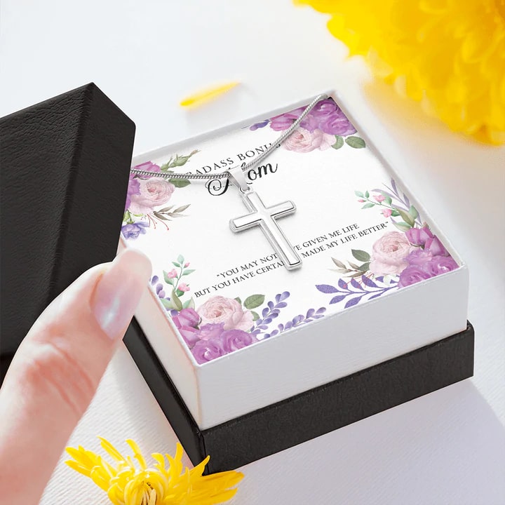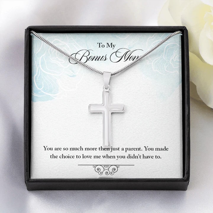 To My Bonus Mom – White Gold Cross Necklace. Mother's Day Gifts