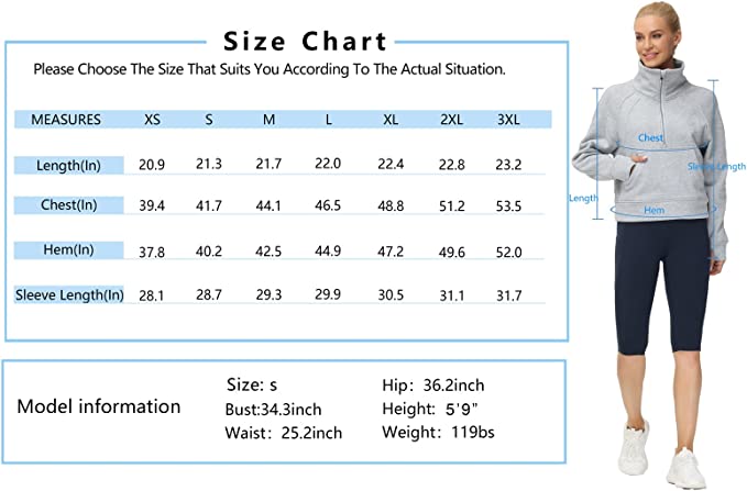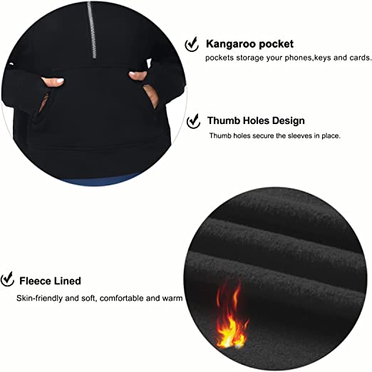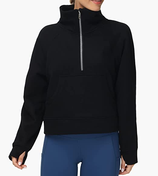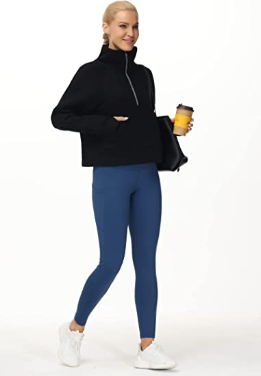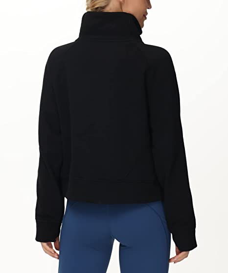Women's Half Zip Pullover Sweatshirt Fleece Stand Collar Crop Sweatshirt with Pockets Thumb Hole. Black
