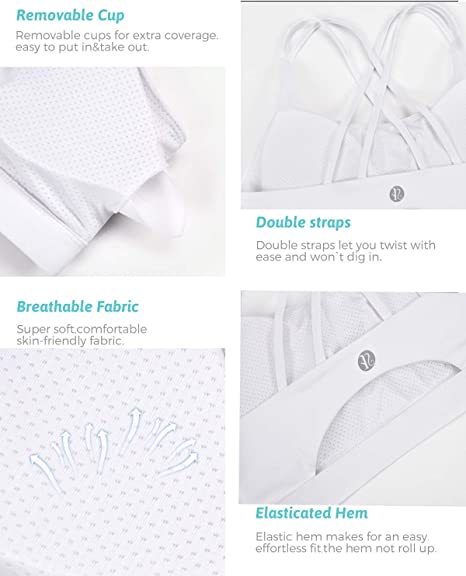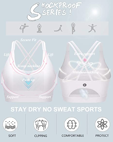 RUNNING GIRL Strappy Sports Bra for Women. Sexy Crisscross Back Medium Support Yoga Bra with Removable Cups. White