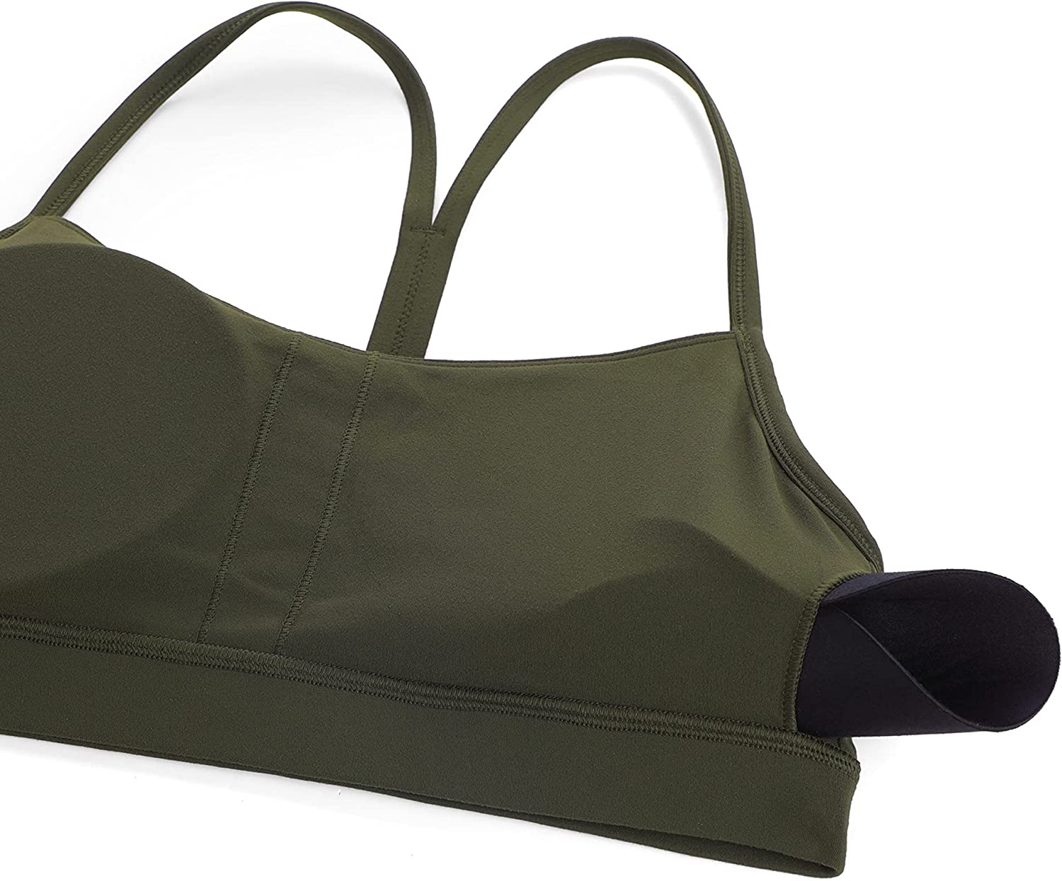 CRZ YOGA Womens Butterluxe Y Back Sports Bra – Padded Racerback Low Impact Spaghetti Thin Strap Backless Workout Yoga Bra. Olive Green